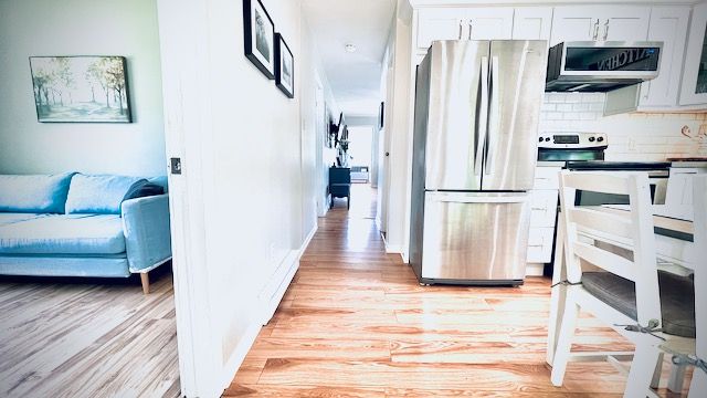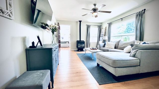 Charming 3 bedroom, 1 bathroom renovated bungalow home with Shiplap feature wall. Newly renovated eat-in kitchen and new SS appliances, stone counter-tops and back-splash, ceiling fan, and LED POT lighting. This entertaining kitchen walks out to a fully fenced relaxing backyard with new patio deck and storage, fire pit ,and storage shed. Steps to the Lake, public transit and local amenities. Only 18 minutes to the highway 404 extension. An ideal home for a couple or small family, downsizes or investors. Private 4 car driveway. A+++ Inspection report. This one-of-a-kind home is a once-in-a-lifetime opportunity, looking for an oasis outside of the city. [refer to the upgrades and renovations]New Stainless steel Fridge, Stove, Dishwasher, Microwave. Front-end Washer, & Dryer, Garden Shed, TV Wall Bracket. Hot Water Tank and water softener [rental], All window coverings, All Electrical light fixtures,