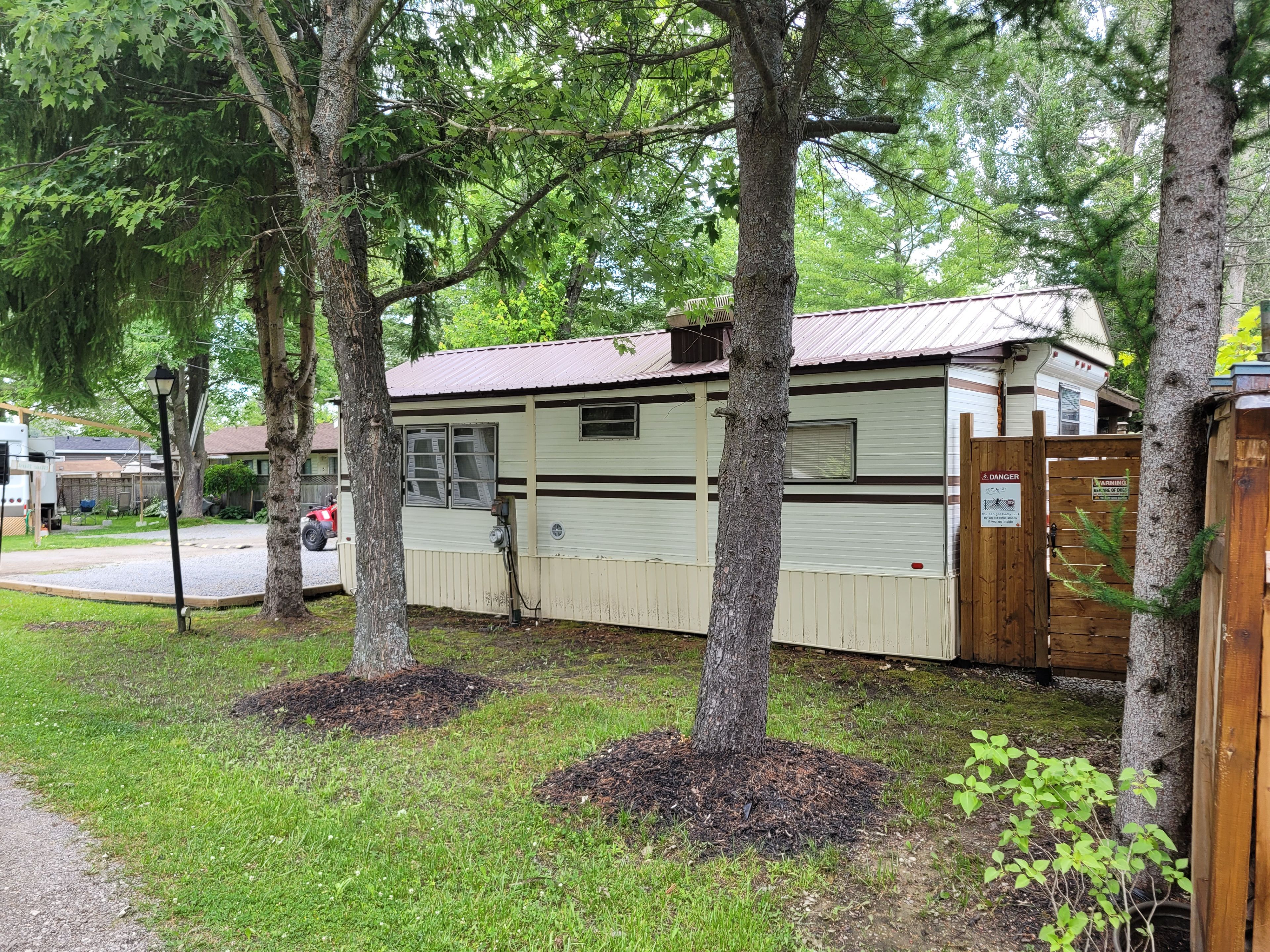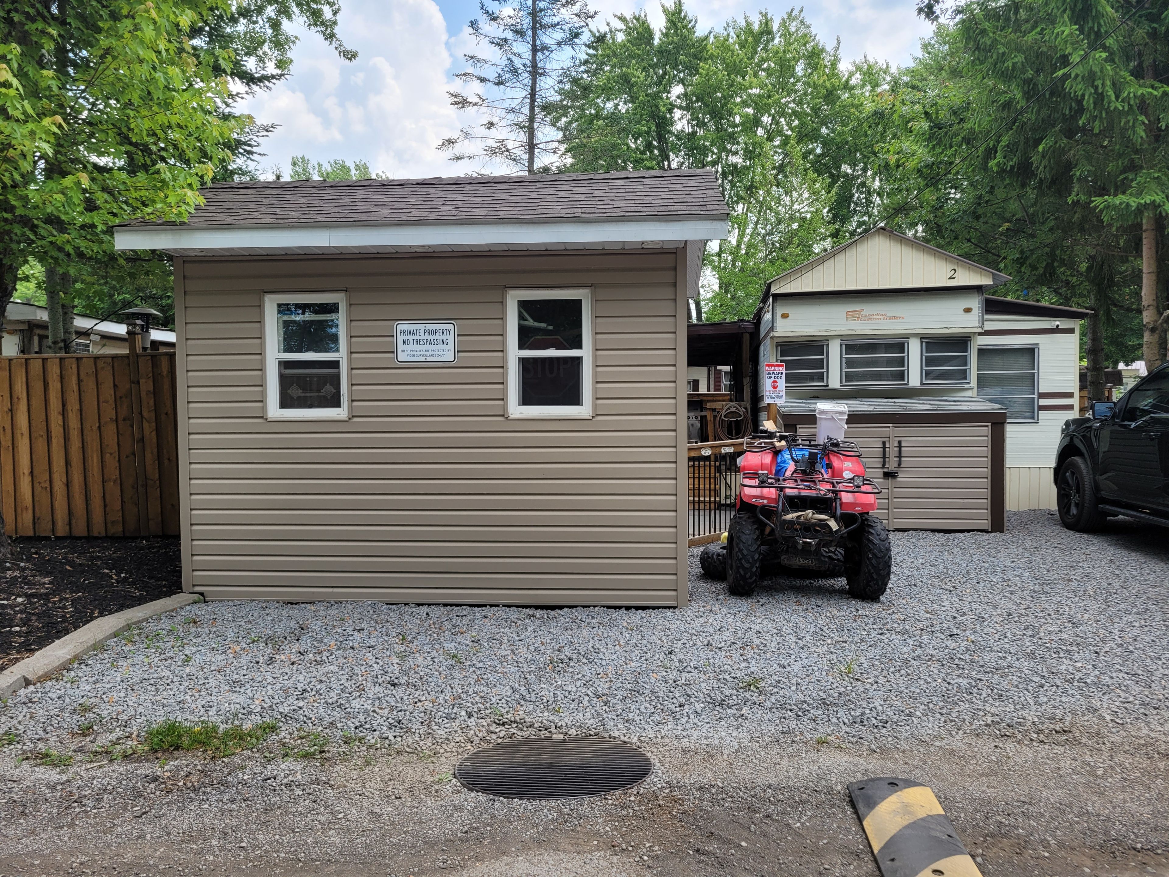 一居室移动房屋位于安大略省Pefferlaw的Green Acres Campers Group Park(季节性拖车公园)。公园地理位置优越,距离Aurora仅半小时车程,非常适合追求家庭友好型轻松生活方式的居民,且可轻松前往美丽的Simcoe湖、高尔夫球场、钓鱼场以及适合各年龄段的社区娱乐活动。宠物友好。24/7安全监控,前方设有大型户外游泳池和游乐场,俱乐部会所,广阔的休闲区,以及存储区(现场还提供船只/工具拖车存储服务,费用为每年150加元)。Green Acres Campers Group由业主拥有并运营,年维护费用非常低。开放季节为4月1日至11月1日,冬季允许进入。公园全年开放,但供水仅在4月至11月间提供。在关闭季节,社区洗手间开放,前方俱乐部会所提供用水。该地区还有ATV/雪地摩托小径。访客停车不收取额外费用。该公园的费用是安大略省最低之一,每年仅需1,664加元。这是一个共有制公园,您购买的是公园的股份,意味着公园100%由业主拥有和运营。**额外设施**包括花园棚屋、地块围栏、大露台和有顶棚的甲板。