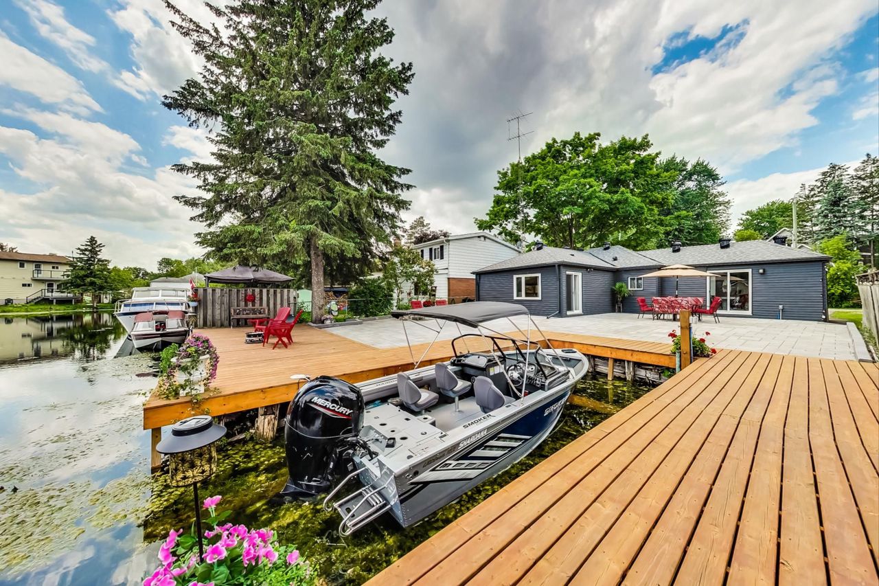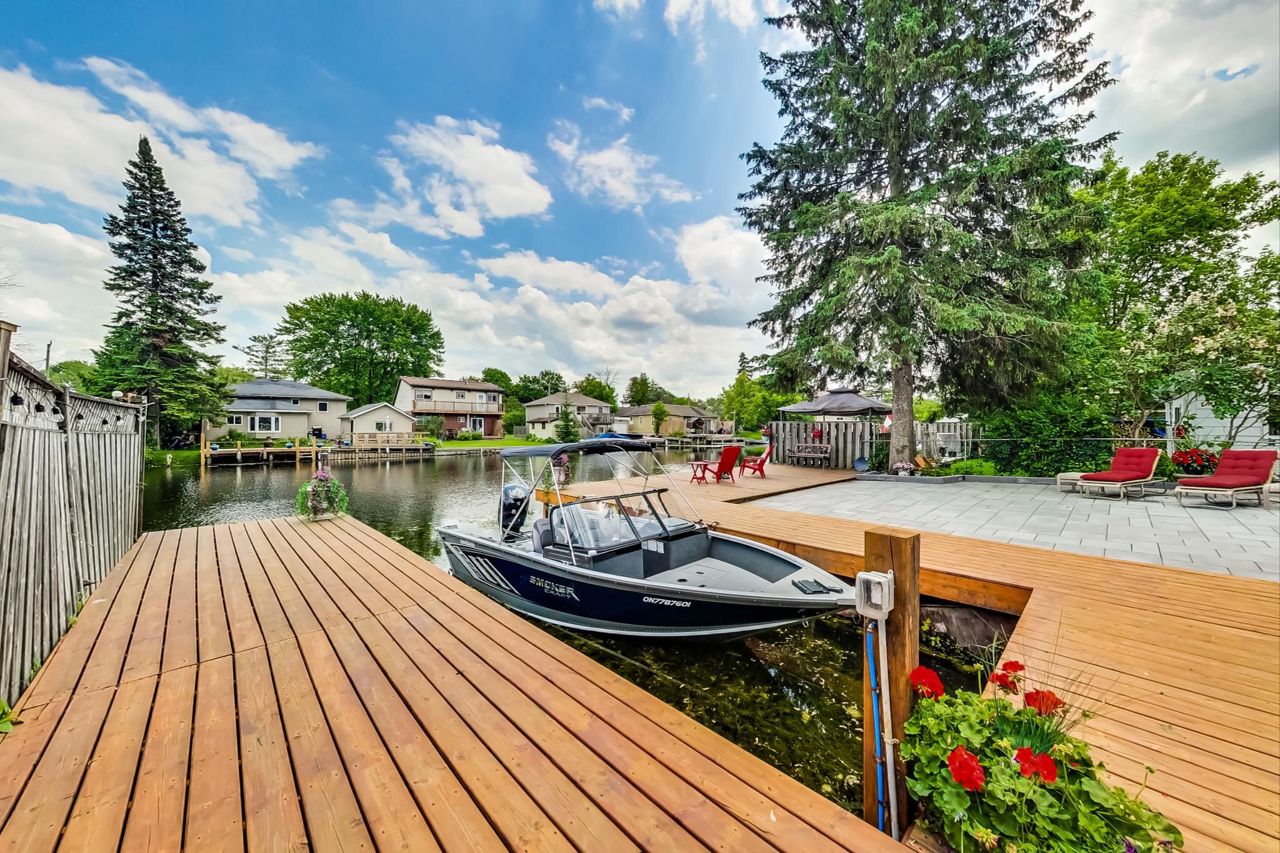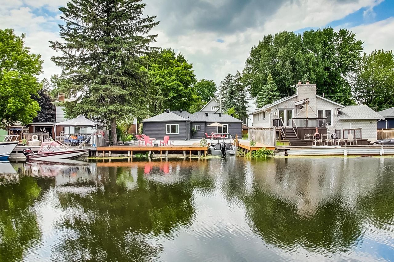 Rarely offered waterfront property! This gorgeous, renovated, 3 bedroom, 2 bathroom bungalow is perfect for family retreats or year round living. Backing on to the canal, just a few meters boat ride into beautiful Lake Simcoe. Park your boat in your backyard! This immaculate bungalow boasts an open concept floor plan with coffered ceilings and luxury vinyl plank throughout! Modern kitchen with custom cabinetry, high end stainless steel appliances, quartz counters and built-in pantry. Spacious primary retreat with a 3-piece en-suite bath and walk out to fabulous maintenance-free patio and deck with plenty of space for entertaining! Located on a quiet cul-de-sac near excellent schools, parks, shops, marina and restaurants. Just 5 minutes to the 404 and only 1 hour from Toronto! Members of Miami Beach enjoy private beach access just a few minutes walk up the road. Nothing to do, but move in and enjoy!2022 Renovation: Newer exterior siding, roof, HVAC, windows, and doors. Municipal water, sewage, and garbage services.