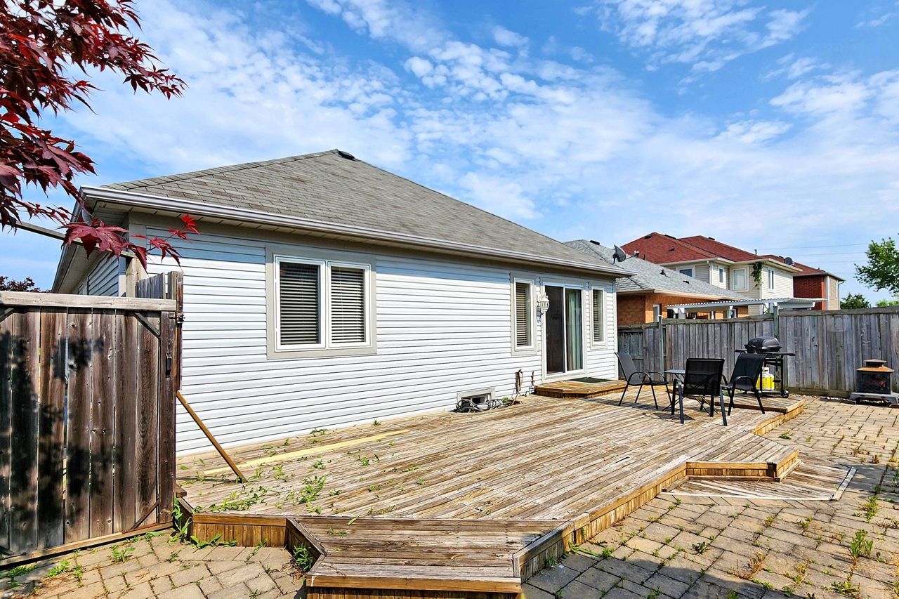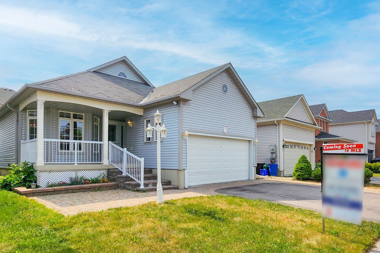 Attention all first time buyers, investors, renovators & empty nesters! Well maintained Remington built 1,220sqft bungalow nestled in Simcoe Landing customized from 3 bedroom to 2 bedroom with enormous en-suite bathroom! The perfect blank canvas awaiting your magic touch featuring spacious main floor living area boasting combined living/dining room, large bedrooms, big eat-in kitchen with breakfast bar that walks out to interlocked maintenance-free fully fenced private backyard. Large covered front porch w/garage access, Huge unfinished basement w/high ceilings (R/I) offers potential for separate entry from oversized double garage. Extended interlocked driveway, freshly painted, tucked away on the perfect lot just steps to trails, schools, The Queensway S shops, Restaurants, HWY 404, marinas, top rated beaches & everything this incredible community has to offer.Fridge, Stove, Dishwasher, Laundry washer & dryer. Existing electrical light fixtures, window coverings, GDO w/ remote, backyard BBQ gas line