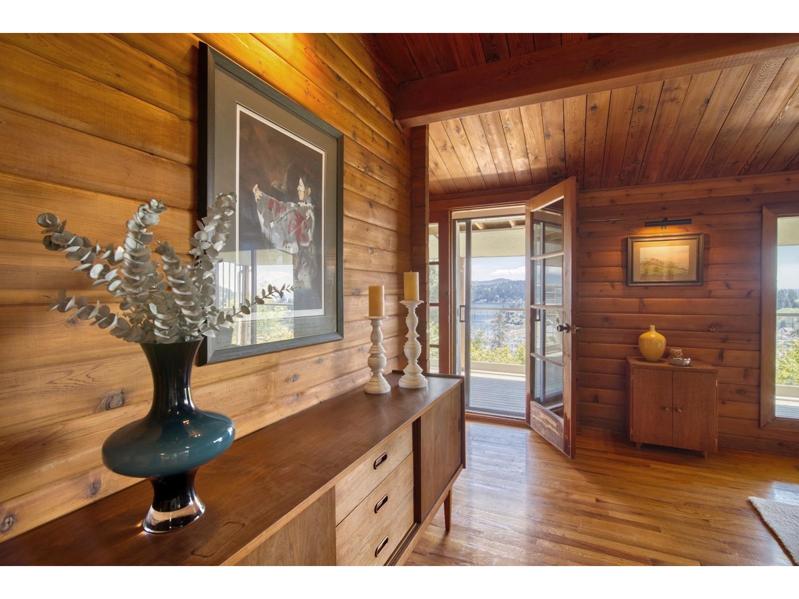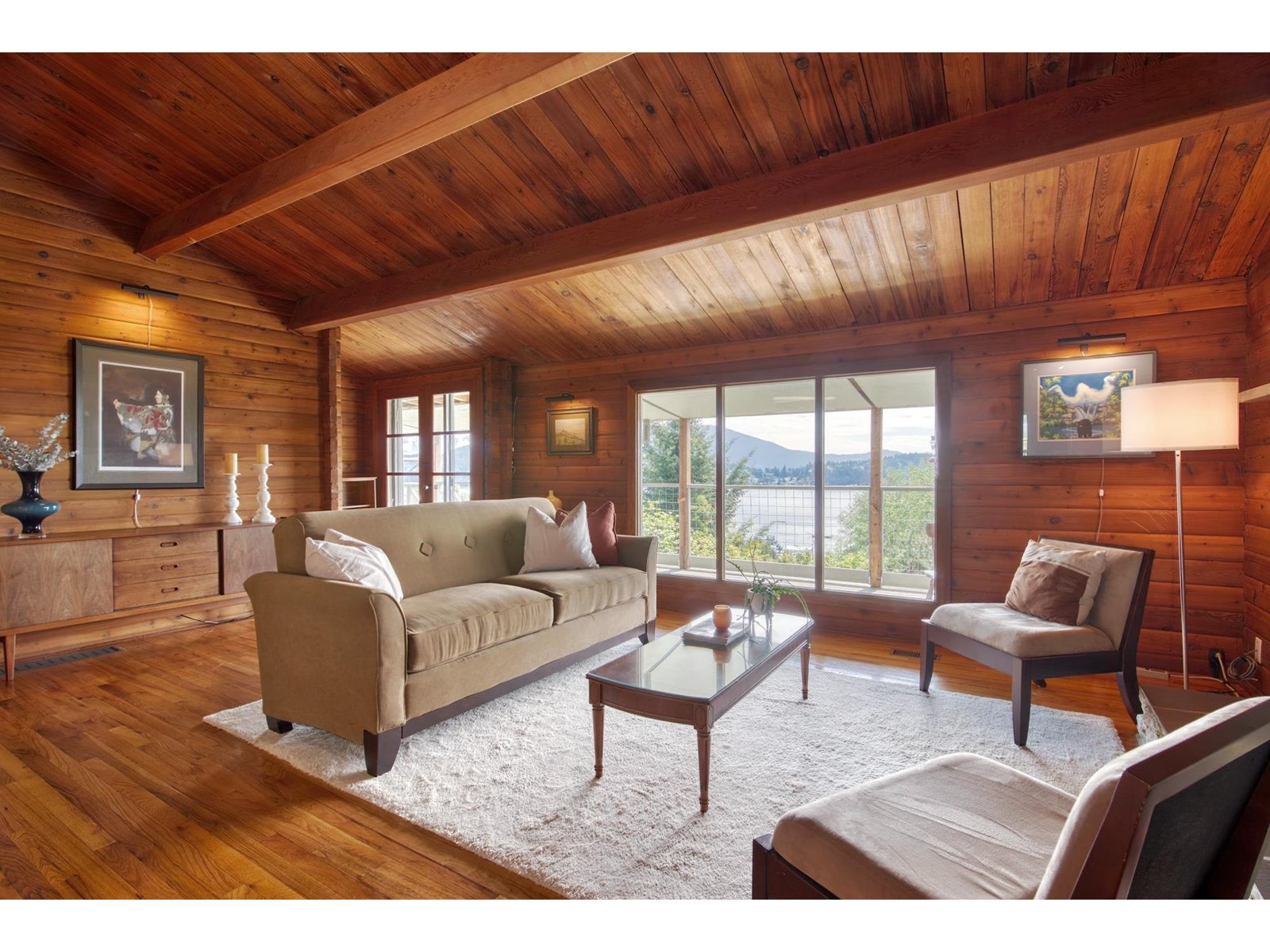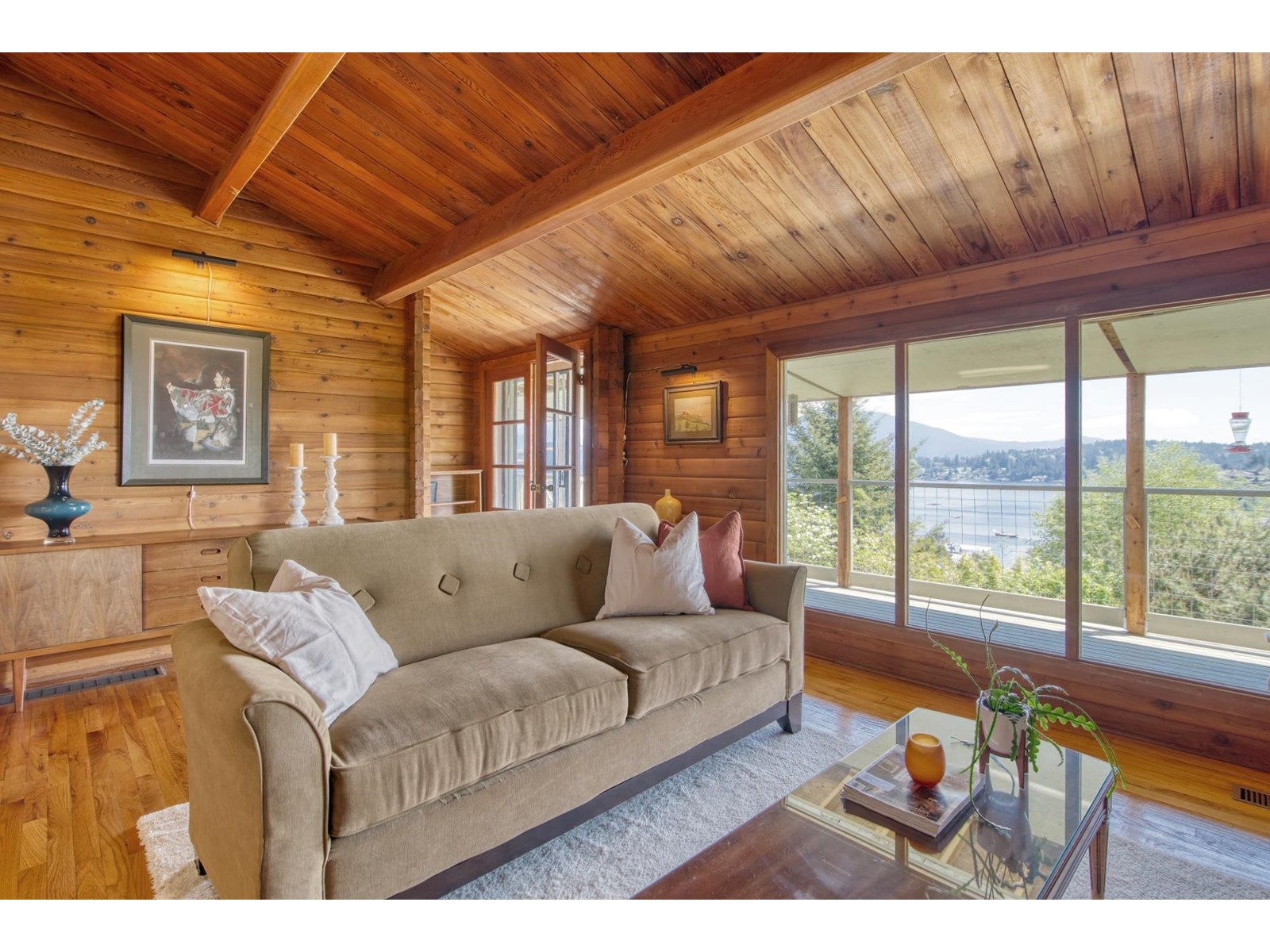 Stunning year round ocean and mountain views over the town of Gibsons towards Keats Island, including the North Shore Mountains to the Strait of Georgia. This panabode echoes mid-century modern with vaulted ceilings and lovely cedar interior, lots of natural light and a large south facing deck. The exterior wood has been protected by vinyl. Guest suite on walkout main floor. Located in one of the best neighbourhoods just two blocks from the town of lower Gibsons' quaint shops, trendy restaurants, marina and seawall walk, parks and walking trails, and beaches. Sit at the one of the waterfront restaurants and then amble back up to your house on the hillside. Large city lot of over 8000 sq.ft. and on Gibsons water. Lot has fruit trees, clean soil with no pesticide use. Come for the weekend, stay forever! (id:22211)
