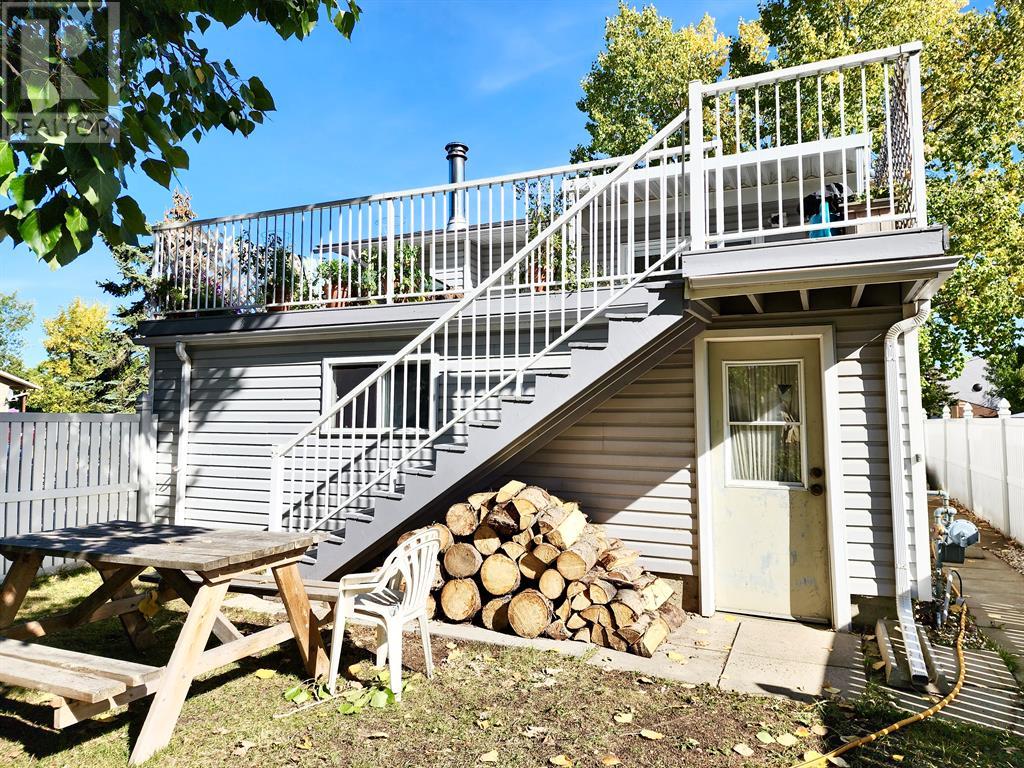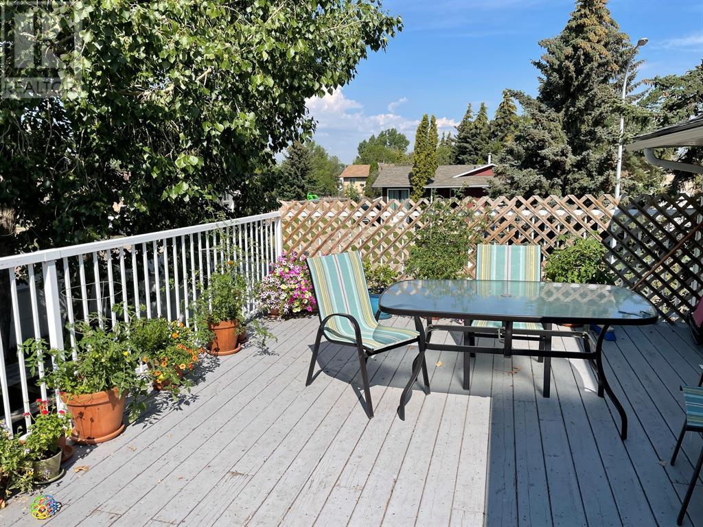 This home has such a unique charm to it, and I can’t wait for you to see for yourself! As soon as you walk in the front door, you will notice the wood features – hardwood floors, wood doors, and a beautiful artistic wood feature wall. With the natural sunlight streaming in from the bay window, this front entryway / living area will quickly become the gathering place for many a social occasion.The kitchen is simple and modest, with just the necessities tucked against a beautiful brick backdrop. With the breakfast bar looking out into the living room, you will never miss another punch line because you are busy cooking. Up the stairs you will find 3 spacious bedrooms, one of which leads onto your rooftop patio. YUP – a rooftop patio! This patio is 14x24 and sits atop your attached single car garage. You will be able to grow just about anything out there, from potted plants to vegetables and vines. Sit out there late into the evening and watch the stars appear one by one. You will feel like you are in your own little world up here! You will find a 4pc bathroom on the 2nd level that features even more wood elements. Heading down the stairs you will step into a cozy living area with new carpet throughout. For entertaining you will find a brick bar, complete with wooden barstools that will stay with the home. For relaxing, you can cozy up in front of the brick hearth that surrounds your wood stove. There is nothing quite like the heat from a blazing fire to relax the soul. And you can rest easy knowing that annual maintenance has happened like clockwork on the chimney. Right off of this 2nd living space you will find a 3 pc bathroom, so you never have to pause the movie for long. Heading down to the basement you will find a finished 4th bedroom / office space, an unfinished laundry area and some storage space complete with a built-in workbench.Your single car garage is finished with beautiful brick, that extends out to your driveway and the main walkway. Next to th e garage is a fully fenced yard with mature trees that backs onto an easement. Charm aside, there are also tons of UPDATES to mention: 2015 – new furnace2018 – new water heater, indoor chimney for the wood stove, shingles, deck doors, flooring & baseboards. A professional arborist also came for the mature trees on the property. 2019 – new deck entry, garage door opener2020 – new back door, new blinds & curtains2021 – new interior doors incl. closets, chimey, fireplace & duct cleaning complete2022 – new basement flooringThere is not much left to do here other than unpacking – so let’s make this place yours! Just imagine the summer BBQ’s you could host on that rooftop patio….Contact Nikki Demers for all inquiries! 403-894-8392 or nikki@peaceprairie.com (id:22211)