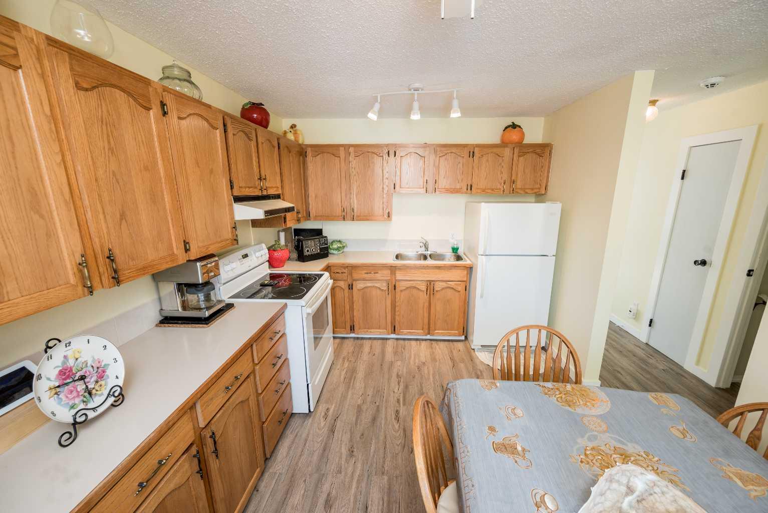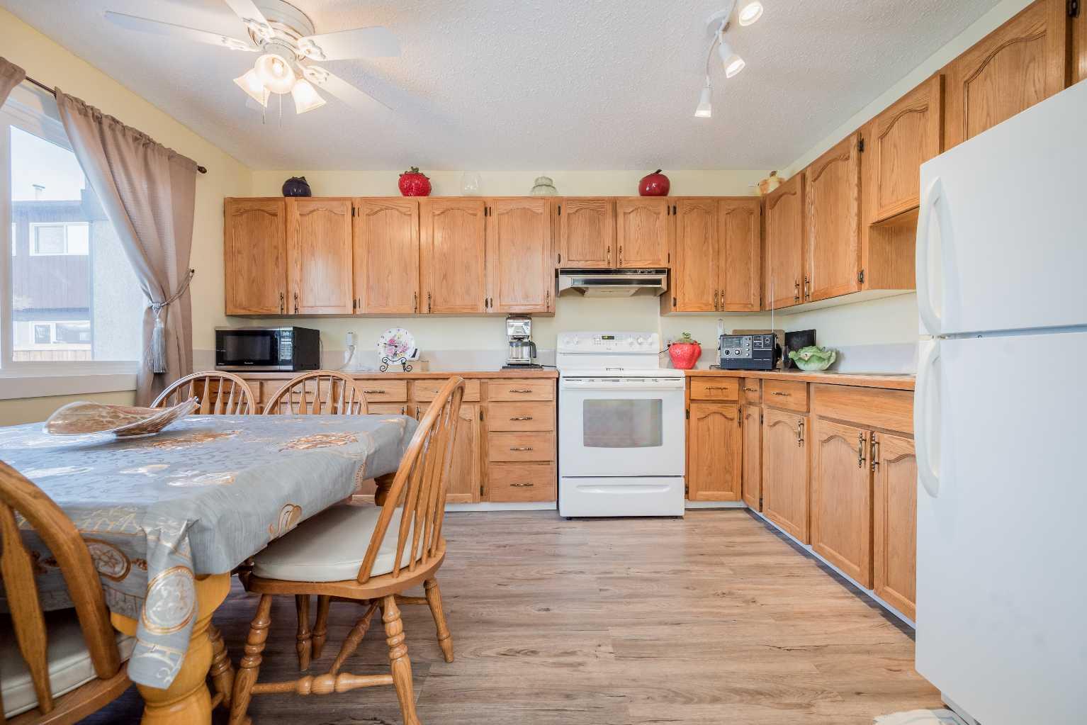 Updated townhouse! This is the perfect home for first time home buyer, all exterior repairs taken care of by the condominium corporation including landscape and gutter cleaning, snow removal etc. This well cared for townhouse features 3 bedrooms, one full 4pc and one 2pc bath with a fully fenced beautiful yard. This great home has had many updates over the years including vinyl windows, architectural shingles, electrical box, flooring, paint and the main floor bathroom. Cedarwood Park is walking distance to many amenities, schools, and walking trails. Condo fee is $360 per month and includes trash, snow removal, reserve fund contributions and all exterior maintenance.