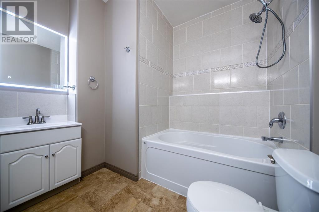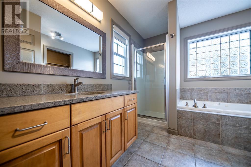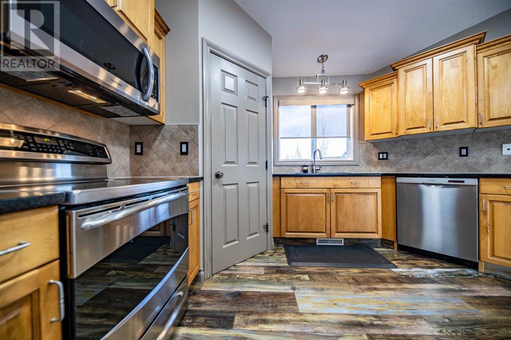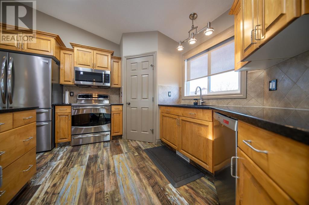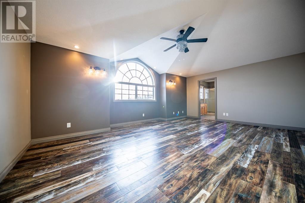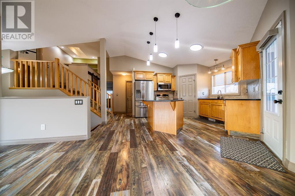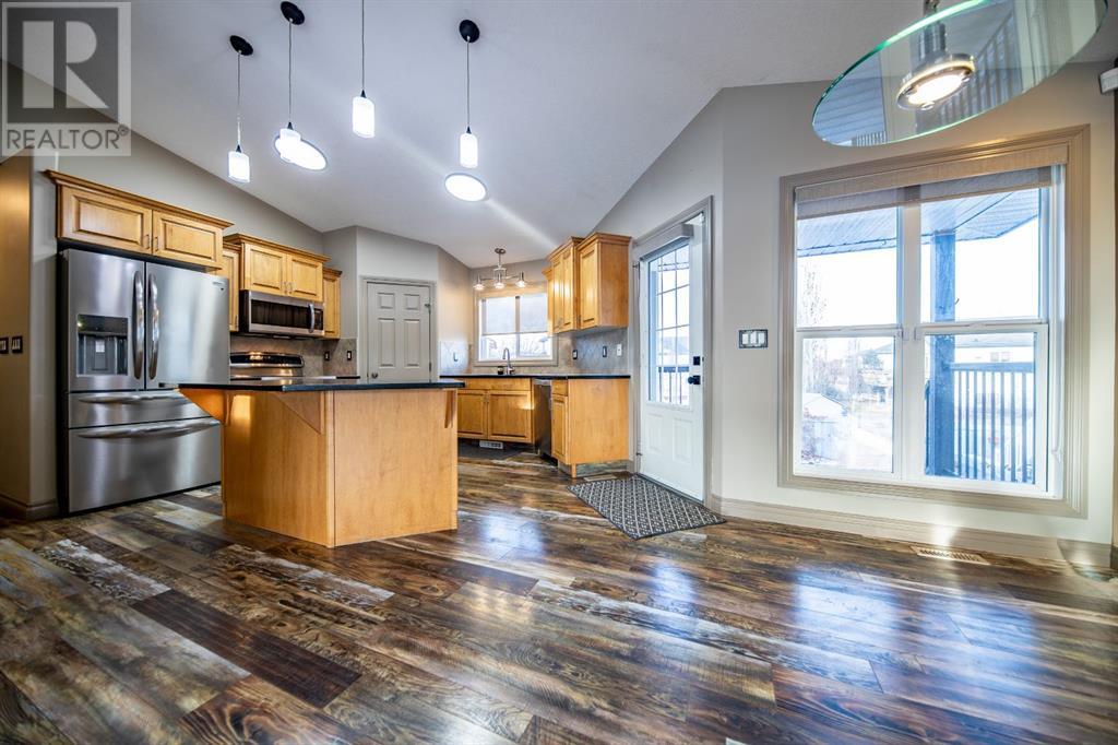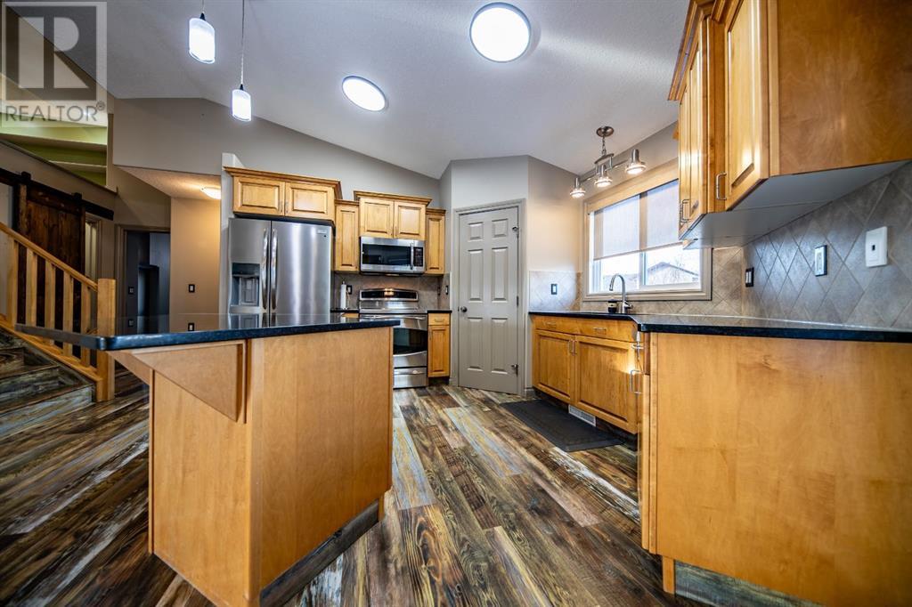 Gorgeous AIR CONDITIONED modified bi-level located on Lakeshore Drive with 1583 sqft above grade. FULLY DEVELOPED home features 4 bedrooms, 2 storage rooms & 3 full bathrooms. This home gives you the feeling of PRIDE OF OWNERSHIP from the first look of the exterior to the inside of this meticulously kept home. Walking in from the front door you are greeted with a large entry, stylish barn doors & luminscent staircase going up to the main floor. As you come up the stairs you are welcomed by a wonderful kitchen equipped with sleek black quartz countertops, brand new stainless steel fridge, Bosch dishwasher, OTR microwave, electric stove, breakfast bar, undermount sink & corner pantry. Living room has vaulted ceilings & showcases a nice window looking out to the front yard & a gas fireplace. Dining room steps out to the rear deck & overlooks the backyard. The whole main level & upstairs features updated laminate flooring that can go with just about any style & gives the home character. Main floor laundry conveniently located by all the bedrooms. One spare room features vaulted ceiling & walk in closet. Master bedroom is on its own private level over the garage & measuring 20ft wide! The ensuite is an oasis of its own with shower & separate soaking tub. Large walk in closet tucked away in the ensuite. Finished basement with 4th bedroom, 2 oversized storage rooms, full bathroom & rec room with wet bar. Triple car heated garage, 6 car concrete driveway plus rv parking. Backyard is one of my favourite spots, so well kept & easy to upkeep, 2 tier deck with all composite boards & stone patio. The backyard garden beds have trees, various shrubs & raspberry bushes. Tons of upgrades have been done to this home over the years, from flooring, fixtures, faucets, countertops, switch cover plates, air conditioning, deck, patio, HWT replaced, added barn doors, x2 sheds, new fans, window coverings & landscaping rock. The owners have the furnace serviced & cleaned once a year. Crystal lake & its paved walking trails are located right across the street from the property. Maude Clifford school is within walking distance. You will not be disappointed with this home shows 10/10. (id:22211)