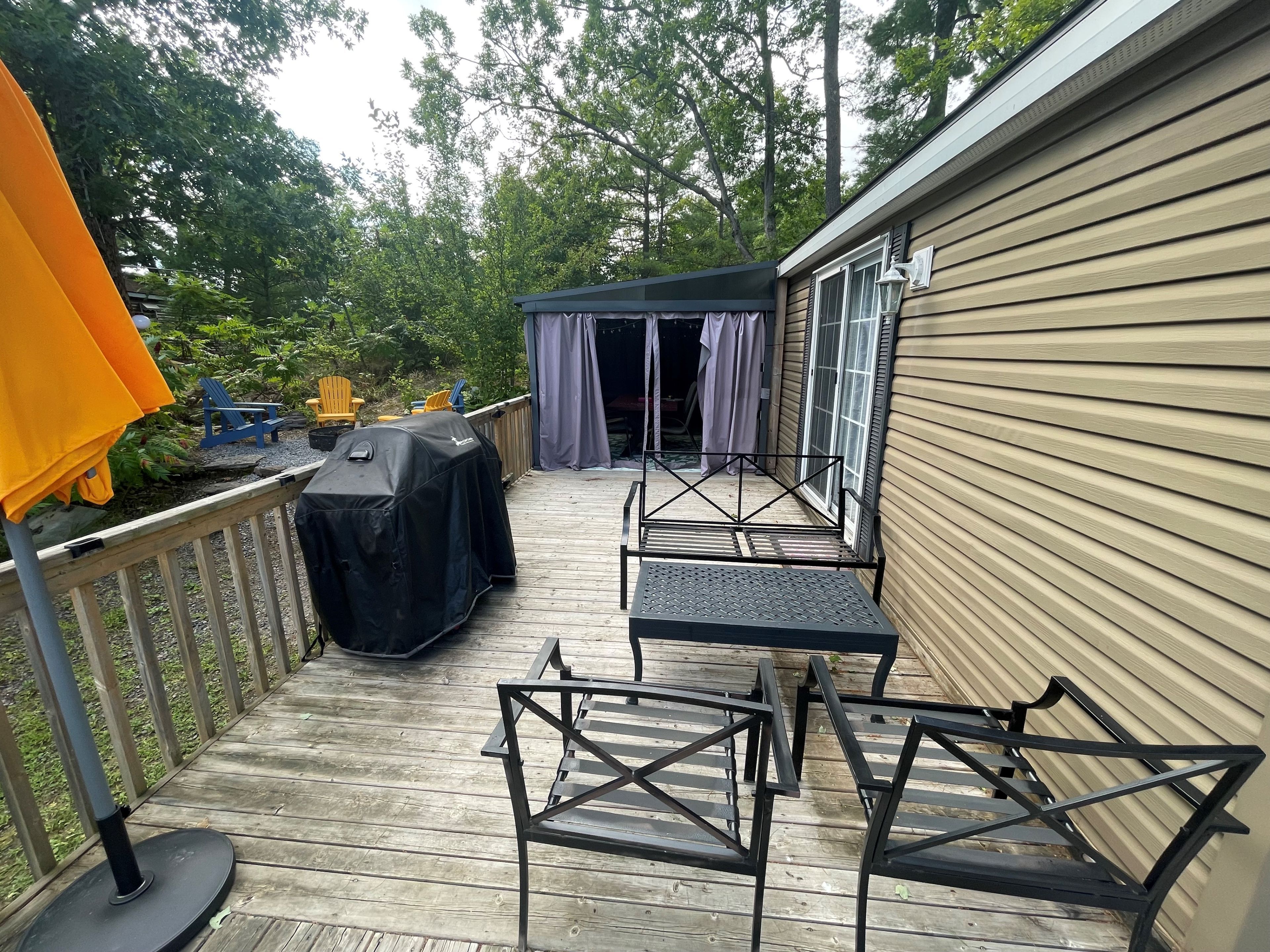 想象一下,在穆斯科卡的中心地带,伴着鸟鸣和树叶轻柔的沙沙声醒来,享受您完美的季节性度假胜地!这个舒适的休憩之所完美融合了舒适与自然,为您提供放松身心所需的一切:3间卧室 - 可舒适容纳5人以上,宽敞的客厅非常适合娱乐或放松,并可直接通往户外,宽敞的厨房配有充足的橱柜和储物空间,满足您所有必需品需求。美丽的户外空间专为创造回忆而设计,无论是露天用餐、烧烤,还是只是放松身心,这个空间都能满足您的需求,还有嵌入穆斯科卡岩石的篝火魔法,是星空下温馨夜晚的绝佳去处。您不仅会爱上这个小屋,还会爱上这个度假胜地提供的一切:划船、钓鱼和游泳,享受水上的无尽乐趣,私人海滩通道,属于您的一片天堂,2个室外游泳池让您消暑和享受阳光,儿童游乐场,风景优美的自然小径和步行道,探索穆斯科卡的美丽,船只下水处,私人码头和租赁服务(带上您的船或现场租一艘),社区俱乐部是活动、娱乐和欢乐的中心,现场洗衣设施,因为便利很重要!这个小屋位于奥里利亚和格雷文赫斯特之间,既足够隐蔽以享受宁静,又足够近以享受穆斯科卡的一切。2025年季节性费用:5月1日至10月31日:10,425加元 + HST,包括水电、水费、污水处理费、地块费、度假村活动、水上设备租赁和地面维护,让您可以专注于创造回忆,而不用担心细节!准备好让这里成为您的夏日避风港了吗?聊聊吧!