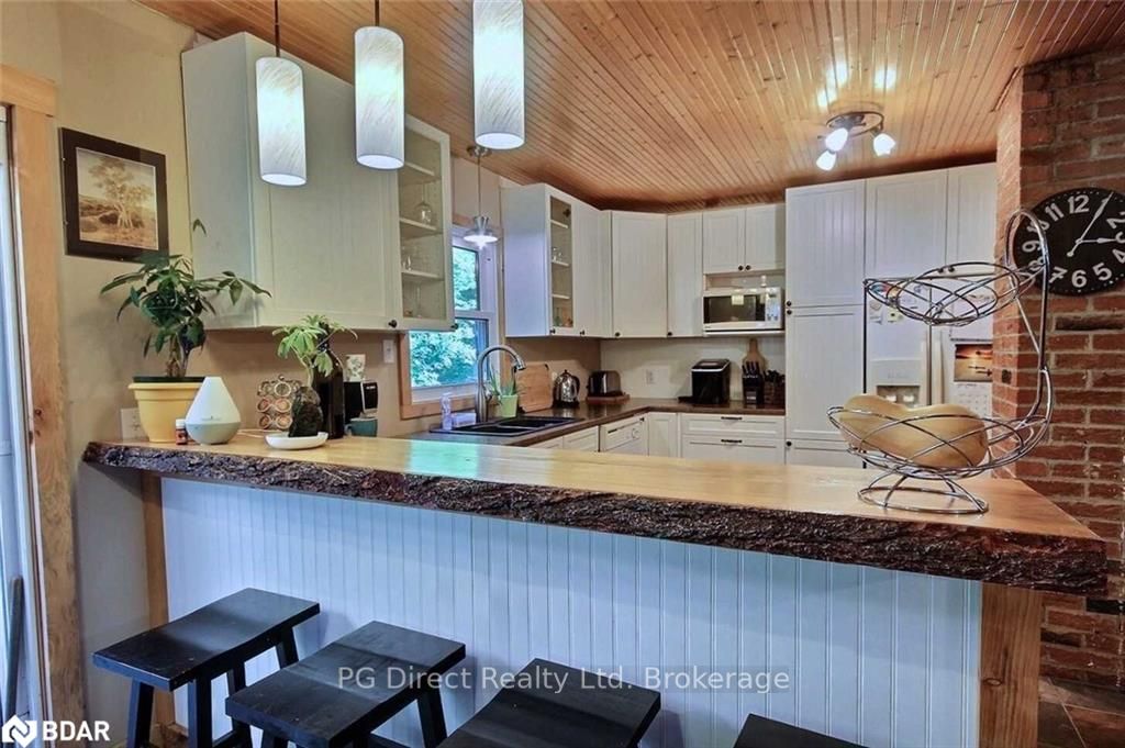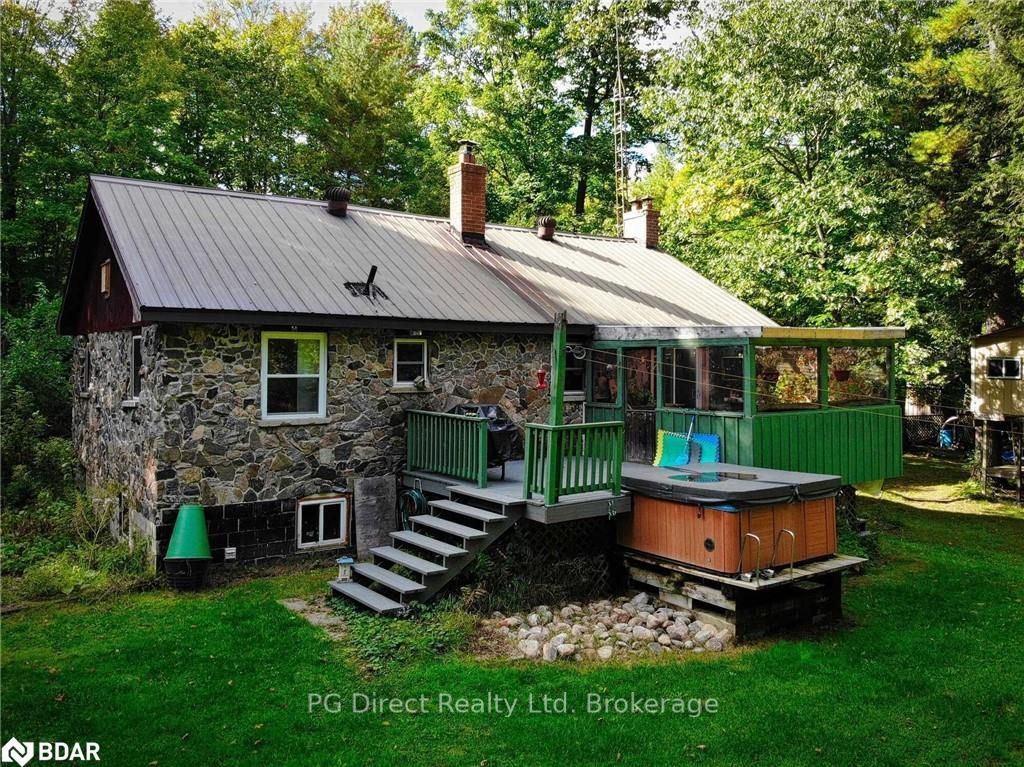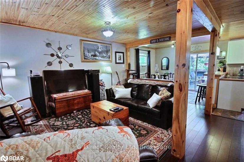 When Viewing This Property On Realtor.Ca Please Click On The 'Multimedia or Virtual Tour' Link For More Property Info. Extremely private Muskoka property with 85.4 acres, beautiful in all 4 seasons, min. to Kahshe Lake, 15 min. to Gravenhurst and Washago. Move in ready home with 3+1 bedrooms, 1 bathroom, open main flr, living rm with wood beams, dining rm, updated kitchen live edge breakfast bar, walkout sunroom, covered porch and partially finished bsmt w/rec. rm. There is a Detached 2 bedroom, 1 bath (compost toilet) guest accommodations with living rm & kitchenette Plus a detached heated shop with car port.