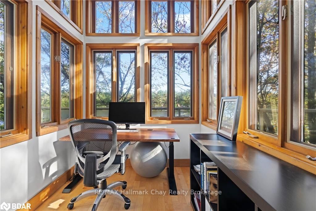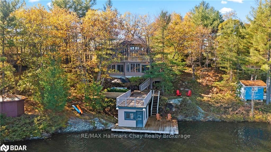 Beautiful four season open concept home/cottage with tons of windows for amazing lake views and natural light*Muskoka room, spacious designer kitchen, exposed ceilings in the open concept great room with walkout to dining deck, on the water bunkie for guests to enjoy and decks galore. Incredible spot for water sports, boating with access to Turtle Lake, swimming and entertaining!*3+ Beds and 2 Baths with numerous luxuries and conveniences*Many renovations completed. Open concept living for inside, outside enjoyment, from spacious kitchen to dining deck and boathouse bunkie sundeck with morning to evening sunsetting skies. WIFI controlled forced air system for heating and cooling, Tannin filter, RO drinking system*3 gas fireplaces for ambience and warmth. Hard wired generator for automatic full house back up. Large main floor master plus ensuite and walkout. Separate den/office with commanding lake views. Two other bedrooms, one with a walkout*Loft for play or overflow sleeping. Lower l