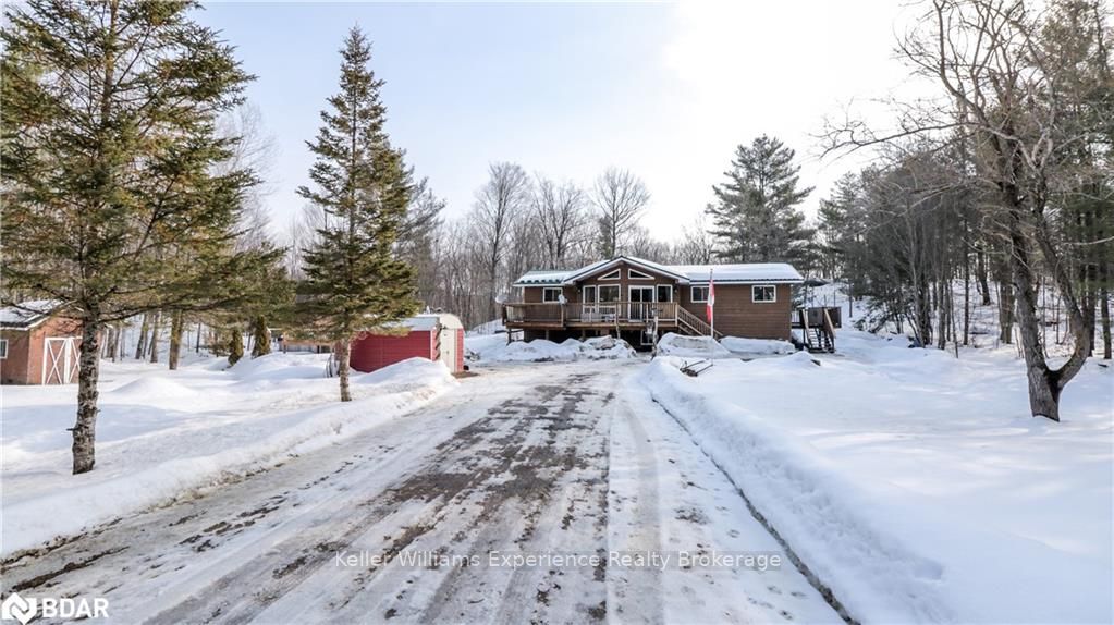 Take a look at this peaceful, 2+ acres scenic nature hideaway. Vaulted ceiling and beam, huge brick fireplace, hardwood floors and a beautiful view of your outdoor surroundings from the many windows and sliding doors. Experience nature at its best, birds and wildlife at your back door! Take a dip in the heat of the summer in the 18x32 above ground pool and sun yourself on the large front deck. The basement has a workshop and pellet stove and is ready for your personal design. There is room for a recreation space and an extra room if needed. Large above ground windows allowing light to pour in. Stainless steel kitchen appliances, marble floor and oak cabinets. Close to highway 11 access. Don't wait, this quiet retreat will not last!