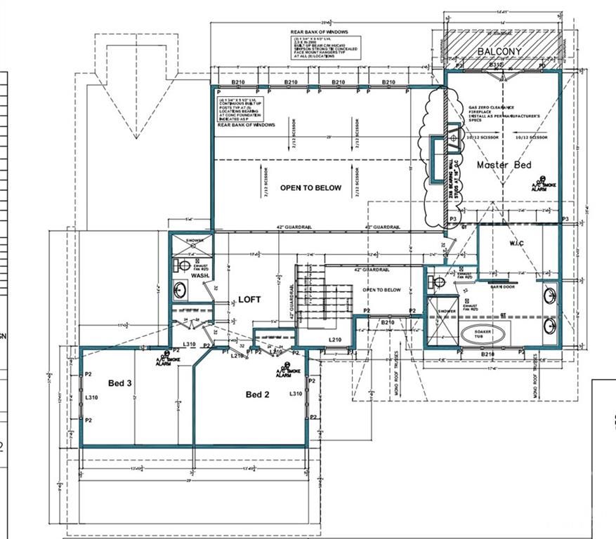 The grand vaulted ceiling in the living room showcases a magnificent floor-to-ceiling fireplace, creating a captivating focal point. The open-concept kitchen is a chef’s dream, equipped with a double fridge/freezer and gas stove, framed by large black windows that bathe the space in natural light.