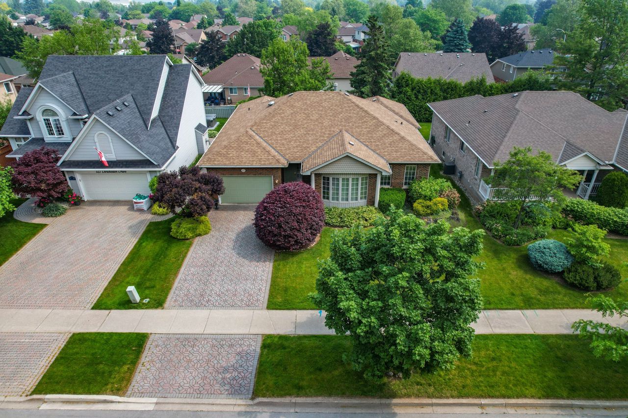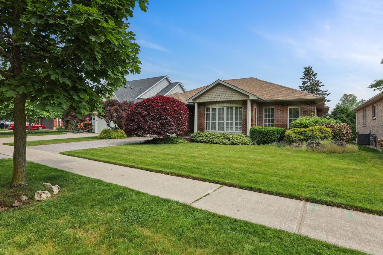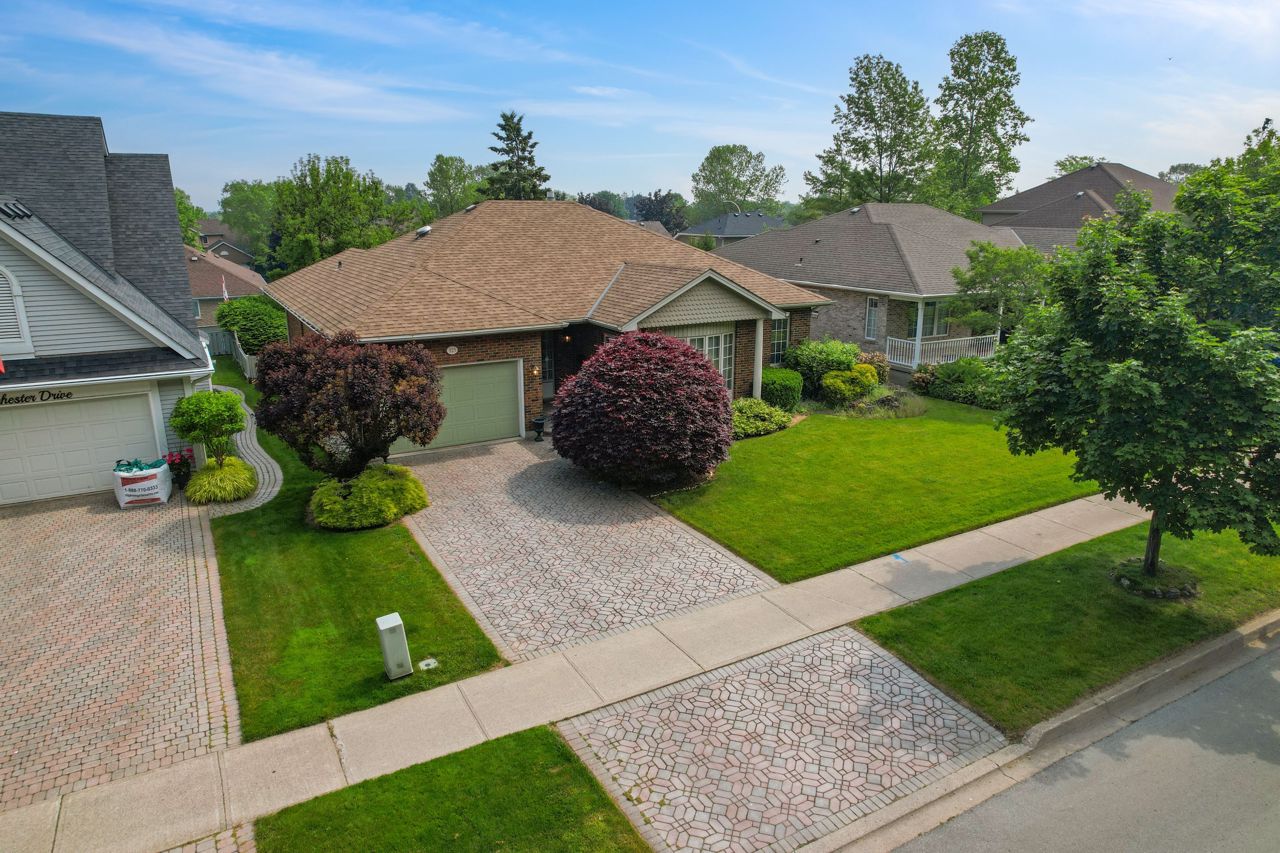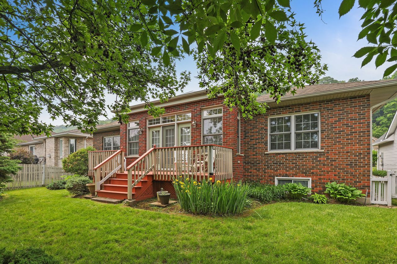SPACIOUS, ALL-BRICK BUNGALOW ... 123 Dorchester Drive delivers the rare blend of R-2000 construction quality, timeless, landscaped curb appeal & resort-style outdoor living all just minutes from West Lincoln Memorial Hospital, downtown Grimsby, YMCA, top-rated schools & QEW access. A professionally patterned brick drive invites you to the 1-car garage (raised floor + inside entry) & covered front porch. Inside, 9-ft ceilings, transom-topped windows, pot-lighting & Hunter Douglas honeycomb blinds create a bright, energy-efficient, 1,949 sq ft main level. Enhancing the open layout is a DOUBLE-SIDED GAS FIREPLACE warming both the formal living room & sun-filled family room. Home chefs will love the eat-in kitchen: upgraded cabinetry w/smart storage, built-in breakfast table, seamless CORIAN counters & double sinks + a hide-away downdraft vent over the stove. HARDWOOD flows through the kitchen, dining room, both living areas & hallway, while main-floor laundry adds day-to-day ease. At the rear, a bright slate-floored SOLARIUM boasts partial radiant heat and an 8-ft square pyramid glass roof SKYLIGHT - your ALL-SEASON RETREAT! Garden doors extend the living space out to a spacious deck w/railing, leading to a fully fenced, professionally landscaped yard framed by mature trees, an 8-ft privacy fence across the back, programmable watering system & charming, hidden wood gazebo. The generous PRIMARY SUITE includes a ceiling fan, W/I closet & 4-pc ensuite, while an inviting second bedroom & upgraded 3-pc bath complete the level. Below, 8-ft basement ceilings & open space awaits your future recreation or guest-suite vision. Mechanical peace of mind rounds out the package: roof 2013; high-efficiency furnace & A/C 2010; owned HWT 2010; PLUS a state-of-the-art SECURITY SYSTEM! Craftsmanship, energy efficiency, and a backyard oasis, just moments from every Grimsby convenience. Virtual staging used to enhance images. CLICK ON MULTIMEDIA for virtual tour, drone photos & more.