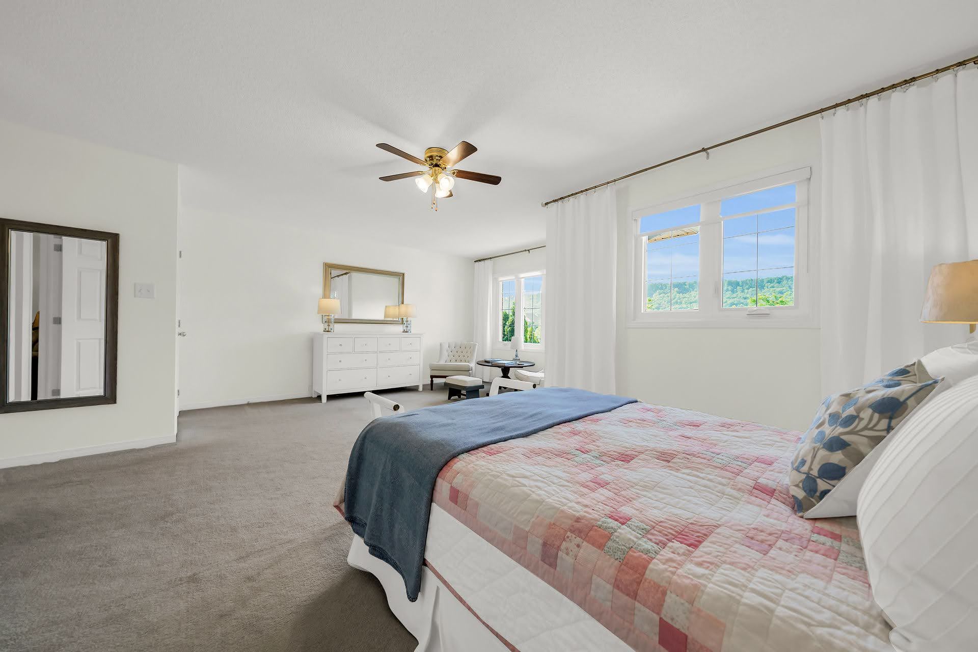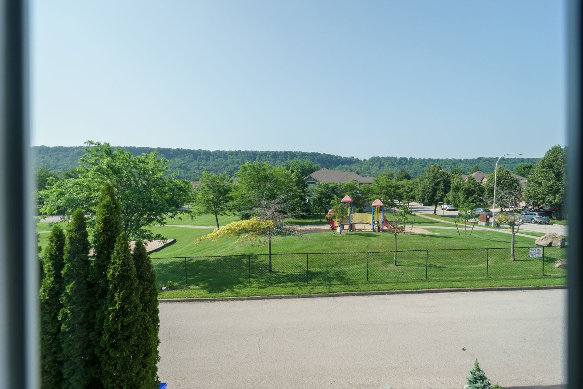 Spacious executive freehold townhome, beautifully updated throughout. Overlooking fabulous Parkland and stunning escarpment views. Fronting on private lane across from park. Newly renovated in 2022, grand eat-in kitchen with abundant cabinetry, quartz countertops, crown moldings, coffee bar, stainless steel appliances. Breakfast seating by the window overlooking organic vegetable garden and fully fenced yard. Main floor family room with crown moldings, main floor laundry. Open staircase to cozy loft. Primary sunlit bedroom overlooks the park and escarpment. Luxurious ensuite bath, two closets with one walk-in. This room is a remarkable retreat for relaxation. 2 ½ updated baths, central air, kitchen appliances, garage door opener, stamped concrete driveway. OTHER FEATURES INCLUDE: new furnace (2018), washer/dryer, custom window treatments. Short stroll to all conveniences. TRULY A HOUSE AND GARDEN HOME INSIDE-OUT!