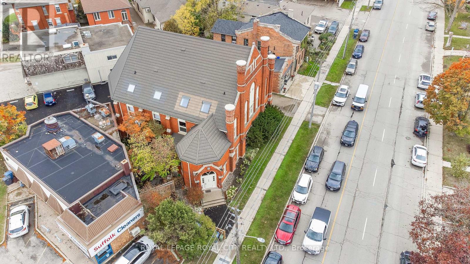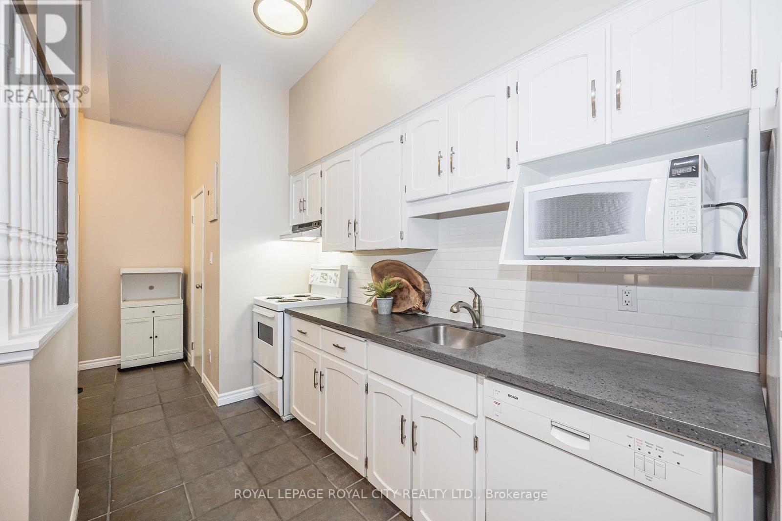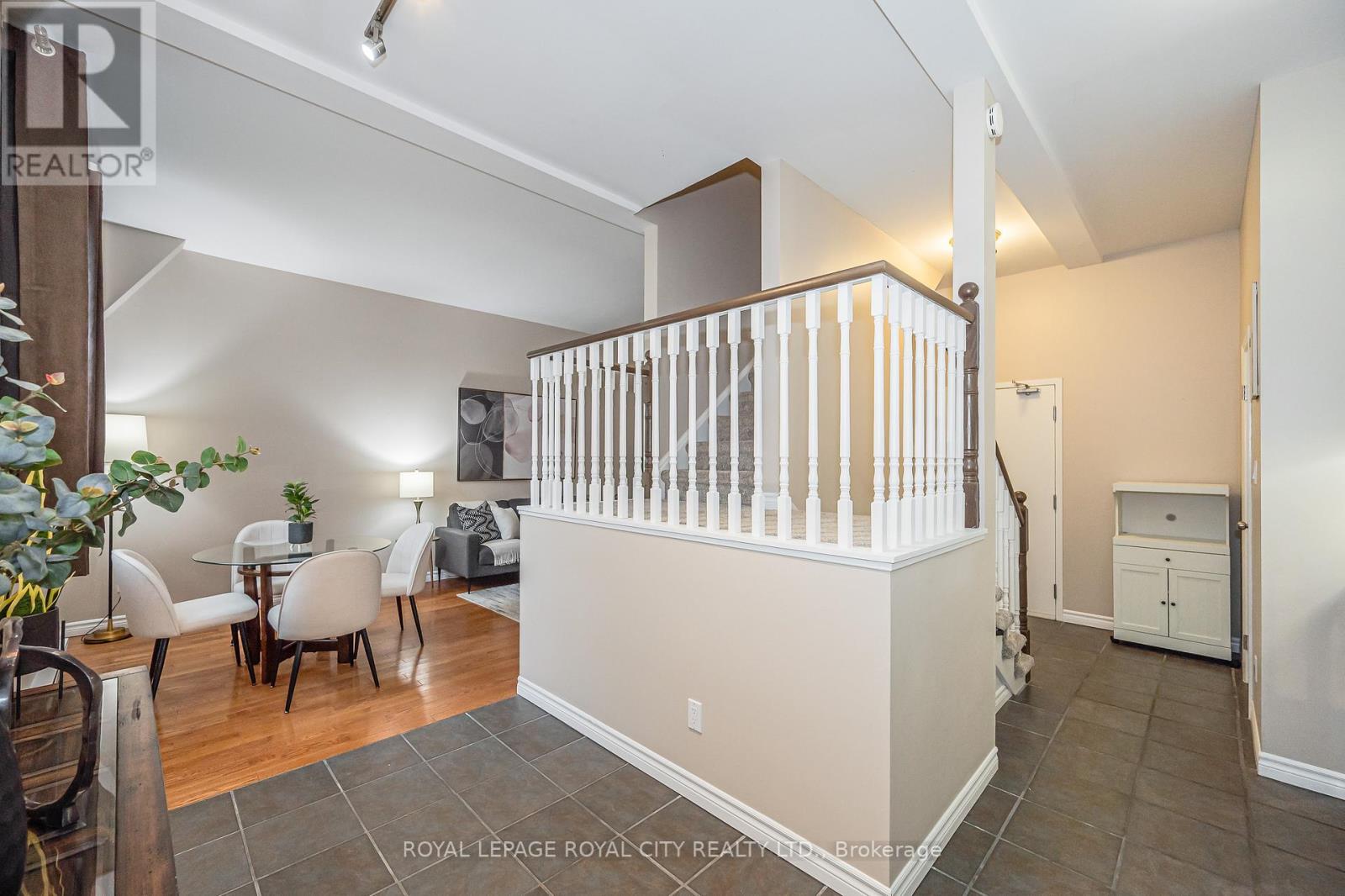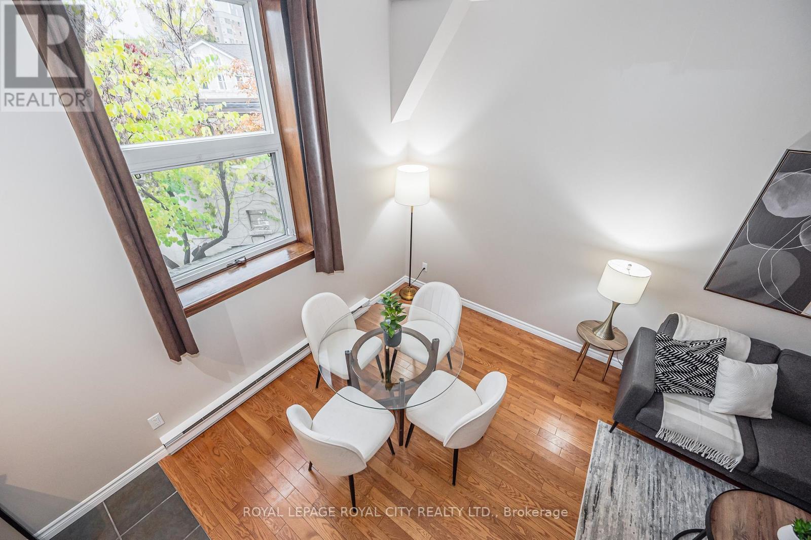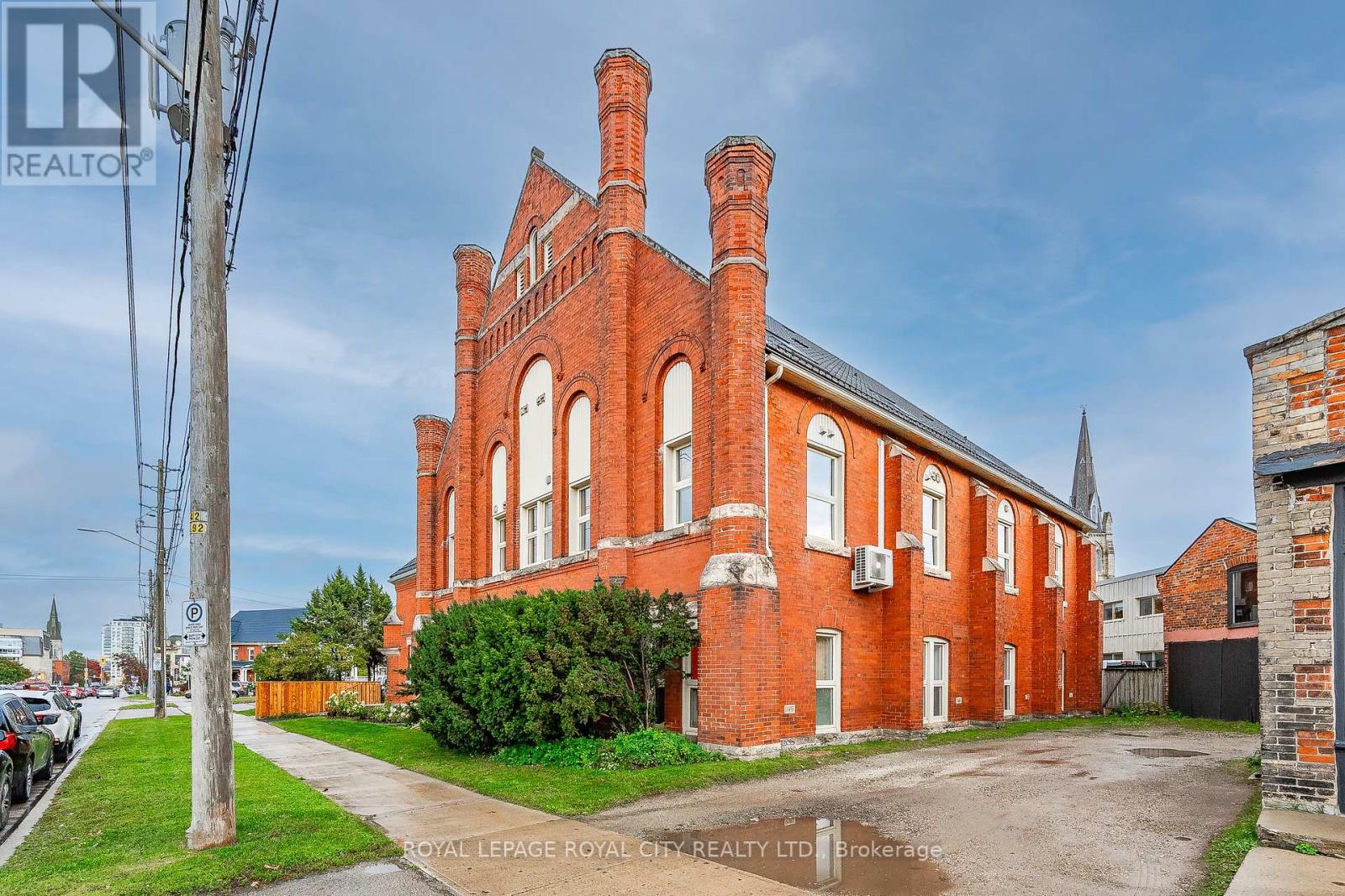 Experience a unique living experience in the heart of Guelph's charming Downtown, surrounded by rich history and picturesque views. The prime location allows for easy access to Guelph's VIA GO Train/Bus Central Transportation Hub, as well as the farmer's market, delectable baked goods, and everything downtown has to offer. Each unit in this stunning, former 100+ year old church boasts a unique architectural identity and high-end features. This two-level, loft-style open concept floor plan with soaring 10+ foot main floor ceiling heights offers a one-of-a-kind living space. The east-facing extra-large windows provide an abundance of morning light, highlighting the huge bedrooms, 2 baths, 2 second-floor skylights, and in-suite laundry with newer washer and dryer. The unit also comes with one exclusive assigned parking spot, controlled entry, freshly painted walls, gleaming oak hardwood and ceramic tiled floors on the main floor, and a private owner access courtyard for BBQs. (id:22211)