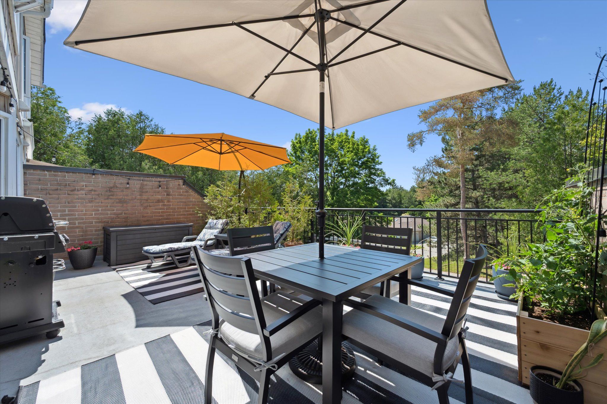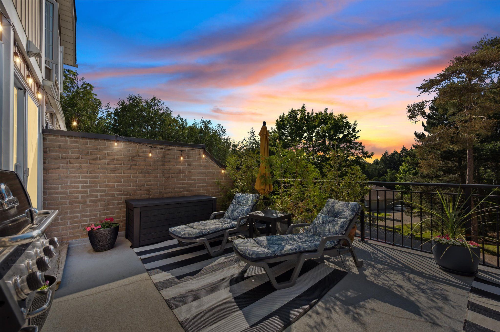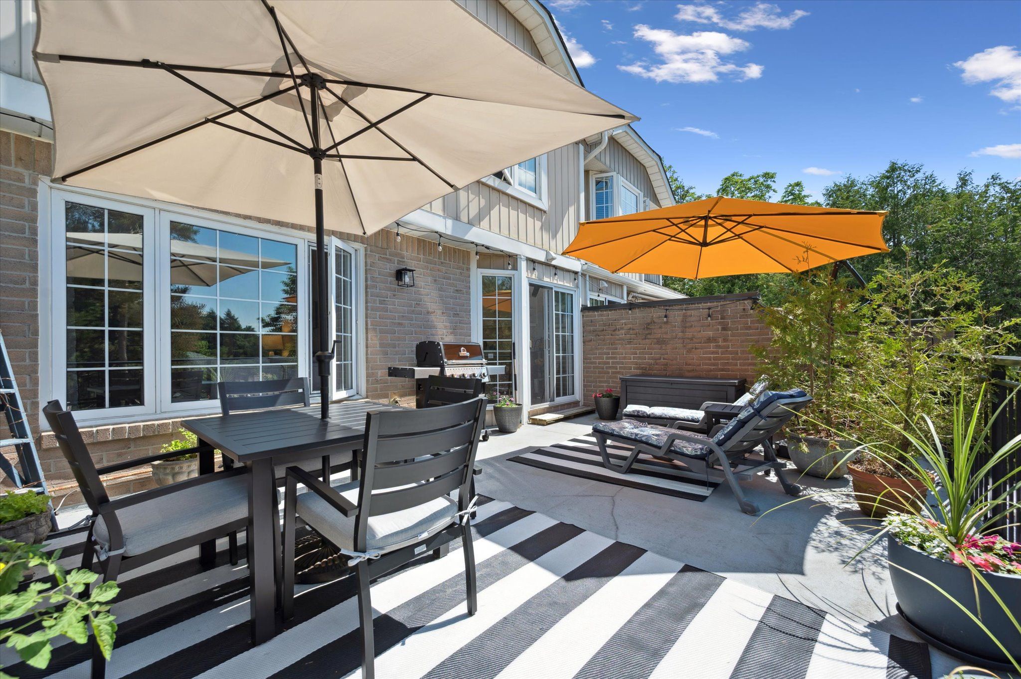 This one is special, tucked away in a serene setting by the river with nature at its doorstep in the sought-after River Ridge community. Welcome to this exceptional two bedroom, four bathroom townhouse nestled in Guelphs desirable north end- surrounded by mature trees and steps to Riverside Park, the Royal Recreation Trail, and Guelph Lake. This rare offering combines natural beauty with high-end living and an active, low-maintenance lifestyle. The sun drenched main floor boasts an excellent layout, filled with upscale finishes throughout. The bright living room comes complete with a beautifully redone gas fireplace and leads to a gorgeous newly renovated kitchen featuring maple wood cabinetry, quartz counters, heated floors, high-end appliances, and a seamless walkout to a massive west facing terrace- perfect for entertaining or enjoying breathtaking sunset views. Upstairs, the primary suite is a true retreat (created by combining 2 bedrooms into one which could be converted back), complete with a walk-in closet, cozy gas fireplace seating area, and a spa-like ensuite featuring a steam shower, granite counters and heated floors. The versatile lower level offers garage access, tons of storage, laundry, bathroom and a bonus space ideal for a home office, extra bedroom, or recreation room. This sought-after community is located around the corner from shopping, groceries, and restaurants and includes top notch amenities: a beautifully maintained outdoor pool, community garden, and newly resurfaced tennis/pickleball court. The condo fees cover snow removal, landscaping and all external maintenance including your roof, windows, doors and garage doors, giving you peace of mind. Units in this community rarely become available- don't miss your chance to live in one of Guelphs most peaceful and well-connected communities!