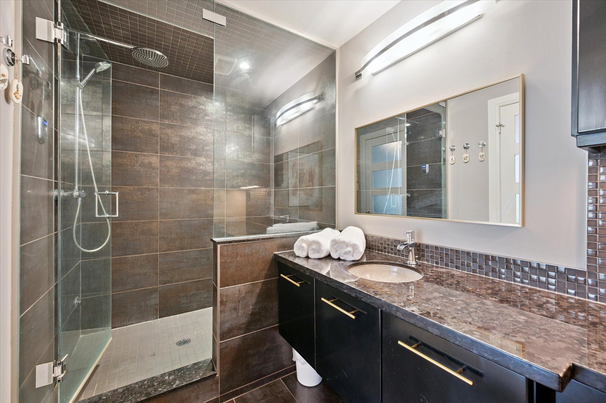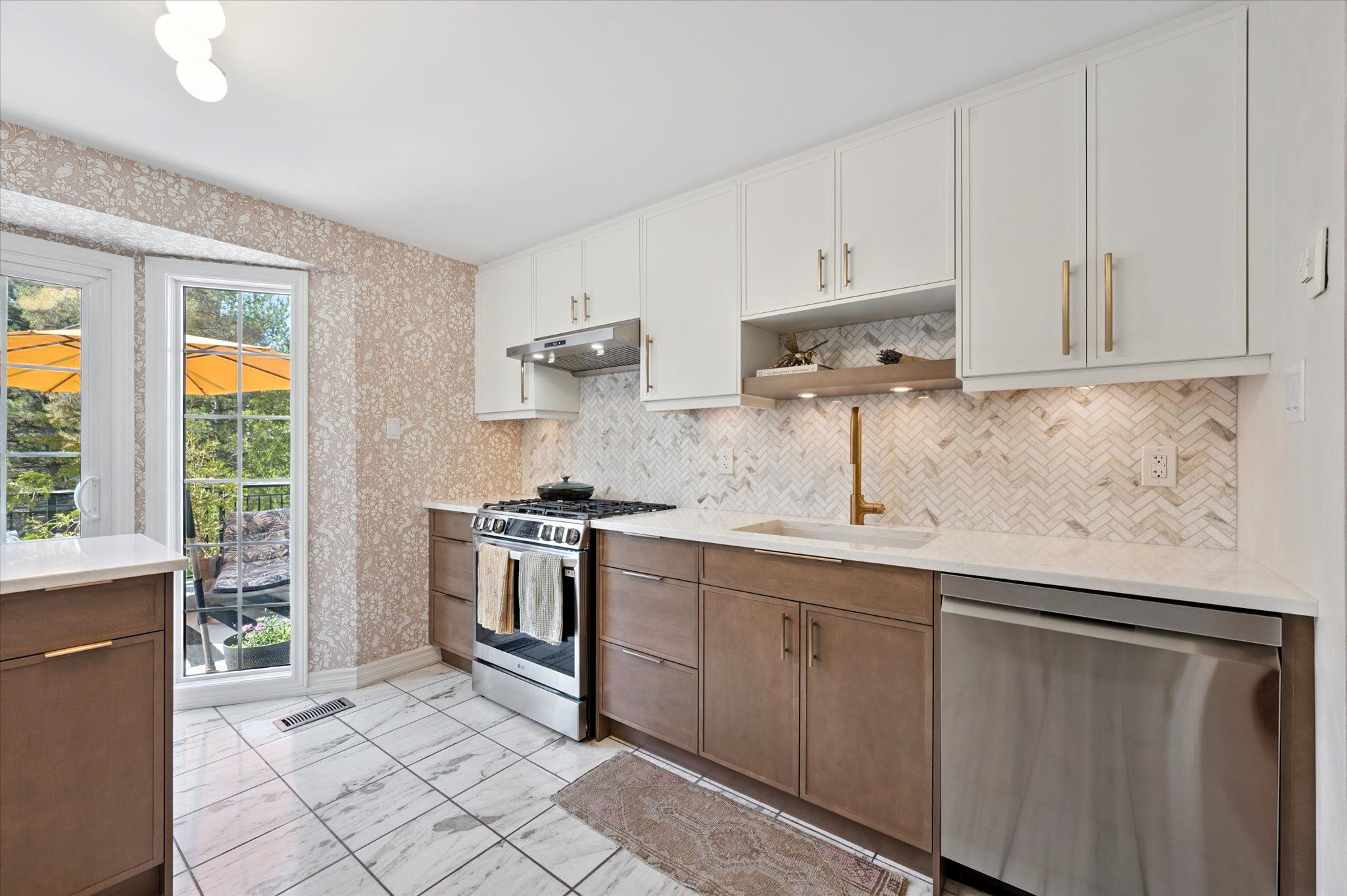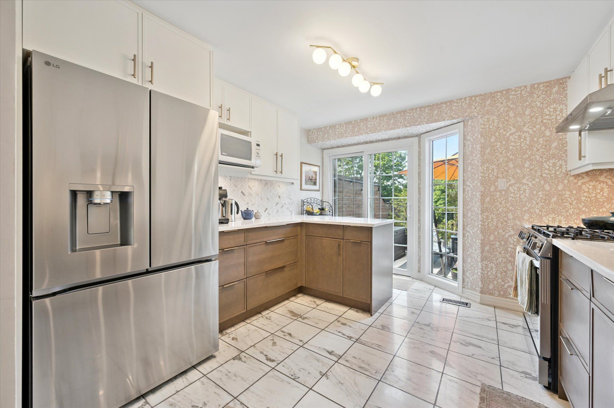 阳光充盈的主楼层布局精妙,处处彰显高端品质。明亮的客厅配有精心改造的燃气壁炉,通向全新装修的华丽厨房——枫木橱柜、石英石台面、地暖系统、高端电器一应俱全,更可无缝衔接通往朝西的宽阔露台,无论是招待宾客还是欣赏醉人日落都堪称完美。楼上,主卧套房堪称真正的休憩圣地(由两间卧室合并而成,可恢复原貌),配备步入式衣帽间、舒适的燃气壁炉休息区,以及水疗风格套间浴室,内含蒸汽淋浴房、花岗岩台面和地暖系统。