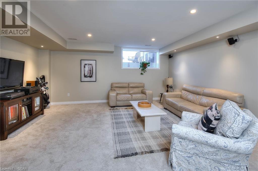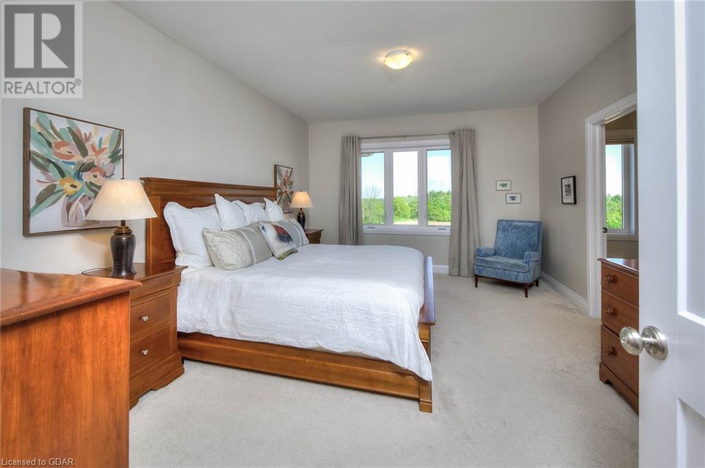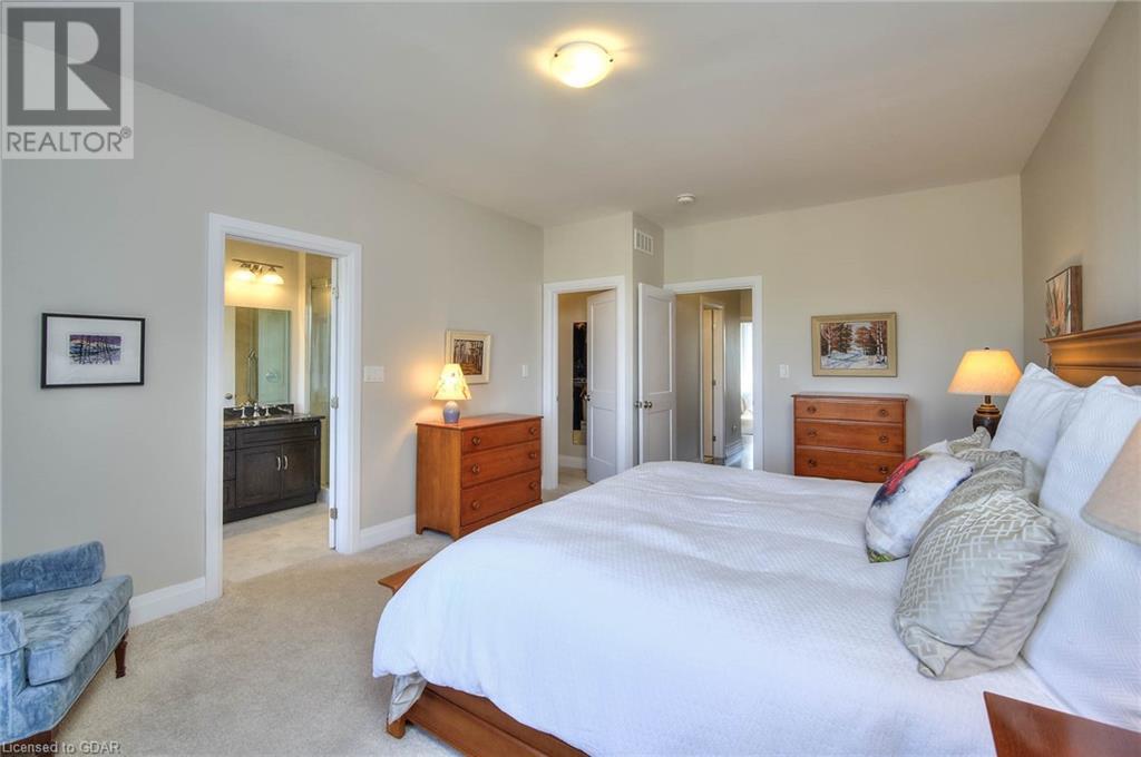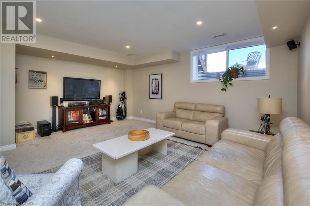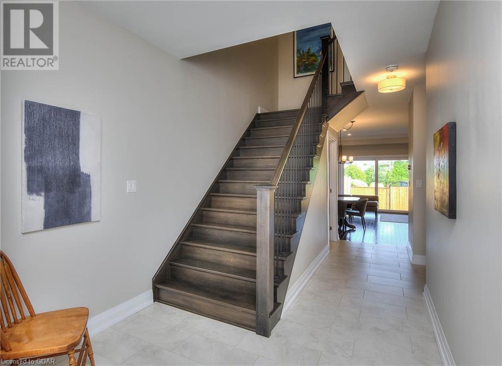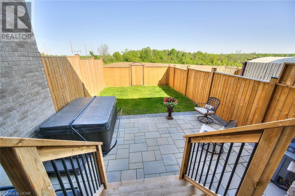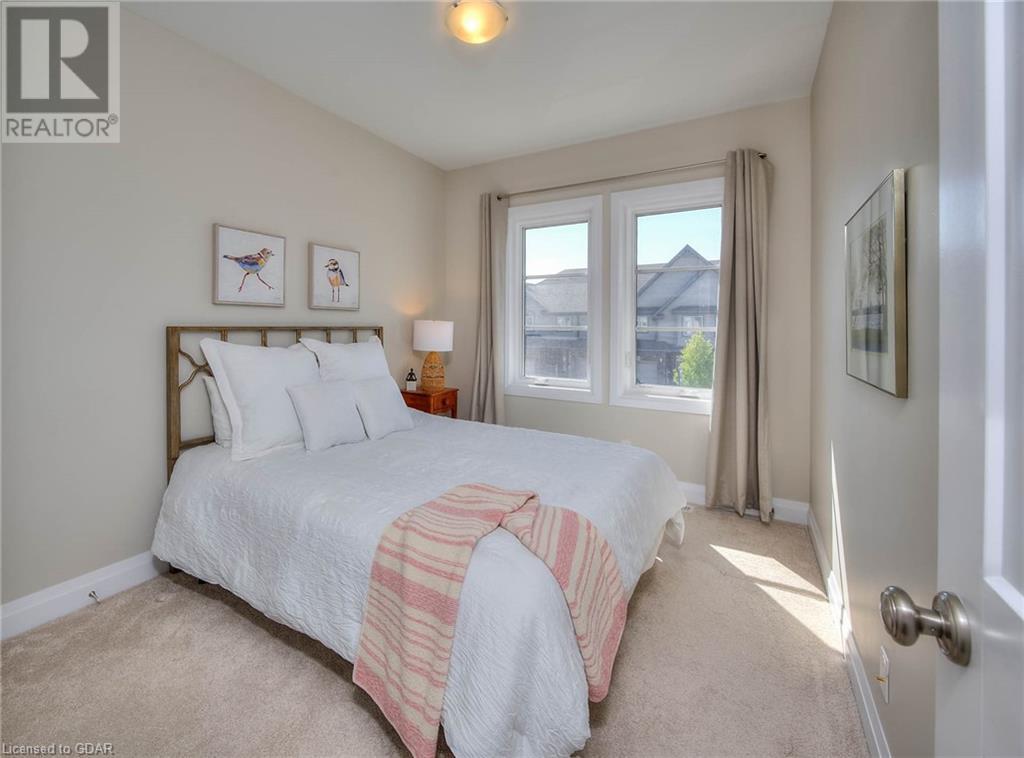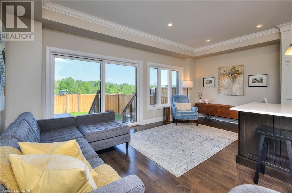 Welcome to one of Guelph's finest freehold townhomes near Guelph Lake! This three-bedroom, two-storey townhome embodies luxury and elegance. The main floor of this home showcases a gourmet kitchen that will inspire your inner chef. Extensive upgrades adorn the kitchen, including luxury stainless steel appliances, and a gas stove/range. The centerpiece of the kitchen is the elegant stone countertop on the centre island with double sink, providing ample space for meal preparation and social gatherings. A quick view of the walk-out to the backyard you will note the fully fenced-in area, which is so very hard to find in a townhouse but allows for your furry companion to have access to much needed outdoor space. The backyard is also finished with a quality hard scaped patio defining your outdoor dining area. Ascending to the second floor, you'll discover the expansive master bedroom, a true sanctuary of comfort, overlooking the tree line of Guelph Lake Conservation Area. This retreat features a spacious walk-in closet, ensuring abundant storage for your wardrobe and personal belongings. The master ensuite is a true masterpiece, with double-sinks, and tiled shower and an upgraded sliding glass door, adding a touch of sophistication to your daily routine. Bathed in natural light streaming through an oversized glass window, the finished basement is perfect for hosting family gatherings, creating a home theater, or designing a personal fitness area. Beyond the quality interiors, the exterior of this property is equally impressive. The stone facade on the front exterior exudes a timeless elegance, enhancing the curb appeal of this townhome. Completing the picture is the contemporary garage door, adding a touch of modernity to the overall aesthetic. Situated in Guelph's north end, you'll immerse yourself in the natural beauty of the surroundings, with superior access to hiking trails, fishing, boating, and managed mountain bike trails at Guelph Lake Conservation Area. (id:22211)