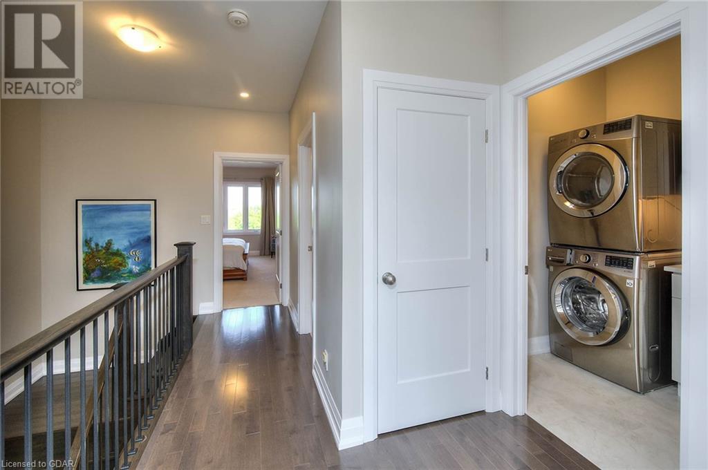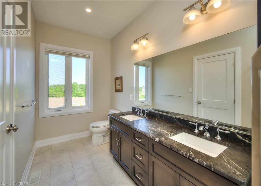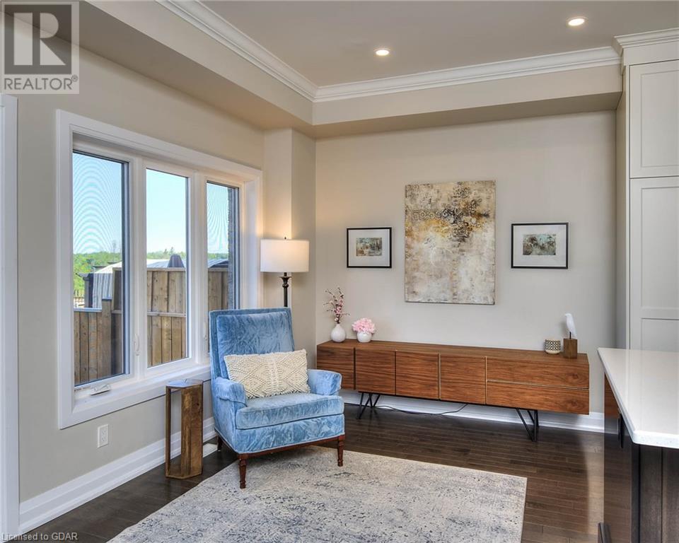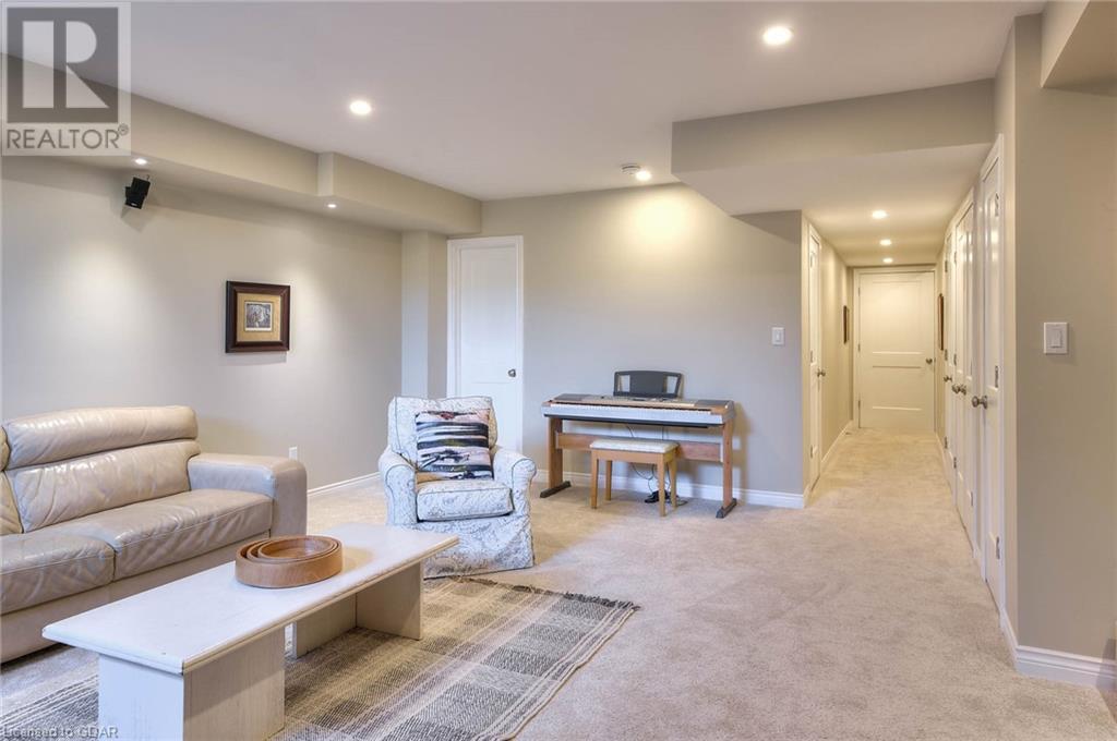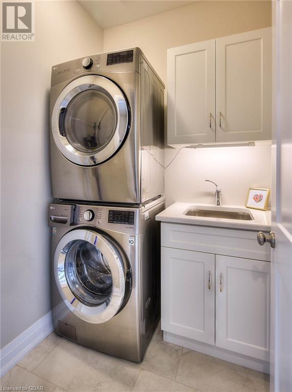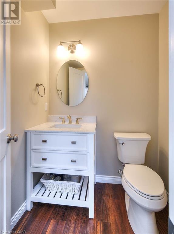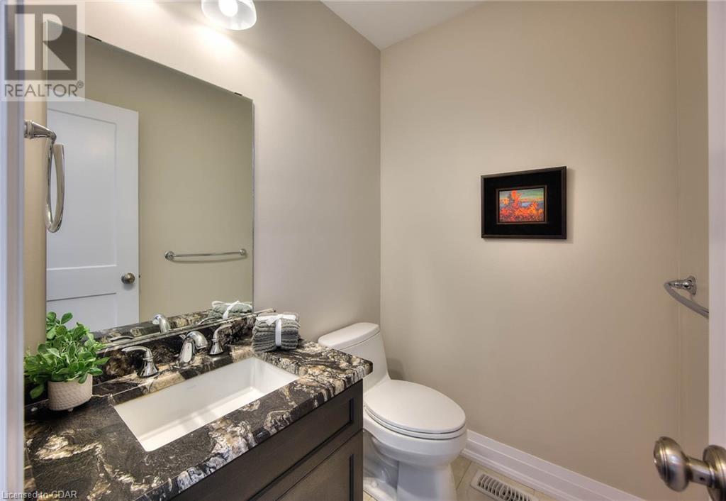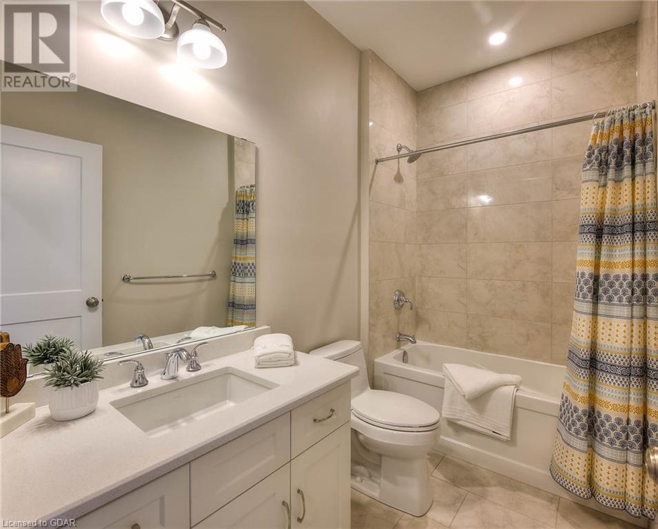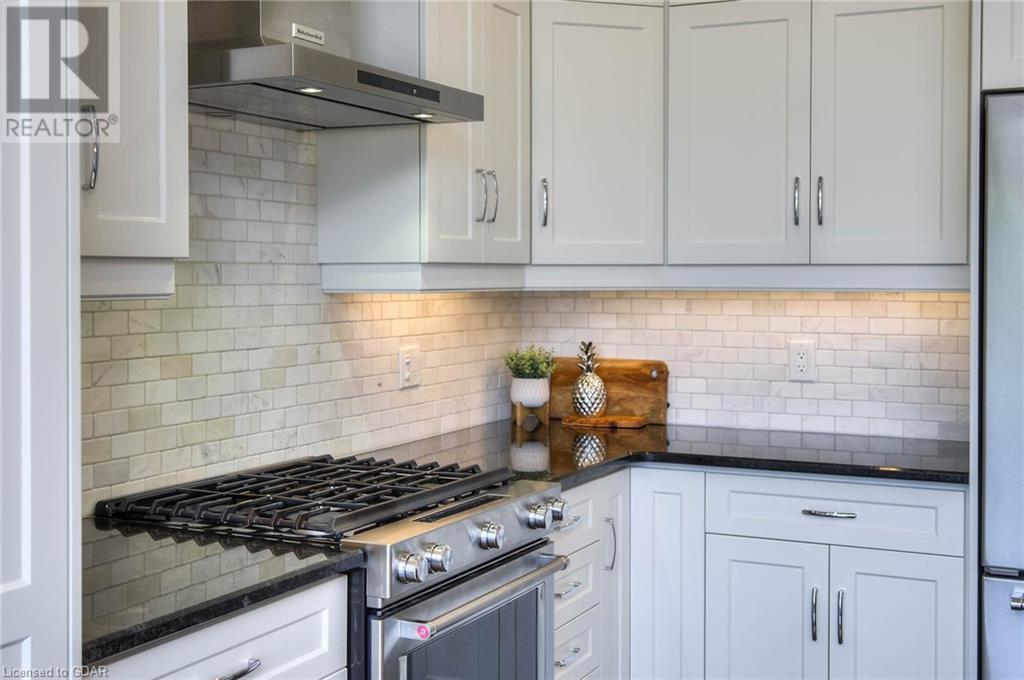 Welcome to one of Guelph's finest freehold townhomes near Guelph Lake! This three-bedroom, two-storey townhome embodies luxury and elegance. The main floor of this home showcases a gourmet kitchen that will inspire your inner chef. Extensive upgrades adorn the kitchen, including luxury stainless steel appliances, and a gas stove/range. The centerpiece of the kitchen is the elegant stone countertop on the centre island with double sink, providing ample space for meal preparation and social gatherings. A quick view of the walk-out to the backyard you will note the fully fenced-in area, which is so very hard to find in a townhouse but allows for your furry companion to have access to much needed outdoor space. The backyard is also finished with a quality hard scaped patio defining your outdoor dining area. Ascending to the second floor, you'll discover the expansive master bedroom, a true sanctuary of comfort, overlooking the tree line of Guelph Lake Conservation Area. This retreat features a spacious walk-in closet, ensuring abundant storage for your wardrobe and personal belongings. The master ensuite is a true masterpiece, with double-sinks, and tiled shower and an upgraded sliding glass door, adding a touch of sophistication to your daily routine. Bathed in natural light streaming through an oversized glass window, the finished basement is perfect for hosting family gatherings, creating a home theater, or designing a personal fitness area. Beyond the quality interiors, the exterior of this property is equally impressive. The stone facade on the front exterior exudes a timeless elegance, enhancing the curb appeal of this townhome. Completing the picture is the contemporary garage door, adding a touch of modernity to the overall aesthetic. Situated in Guelph's north end, you'll immerse yourself in the natural beauty of the surroundings, with superior access to hiking trails, fishing, boating, and managed mountain bike trails at Guelph Lake Conservation Area. (id:22211)