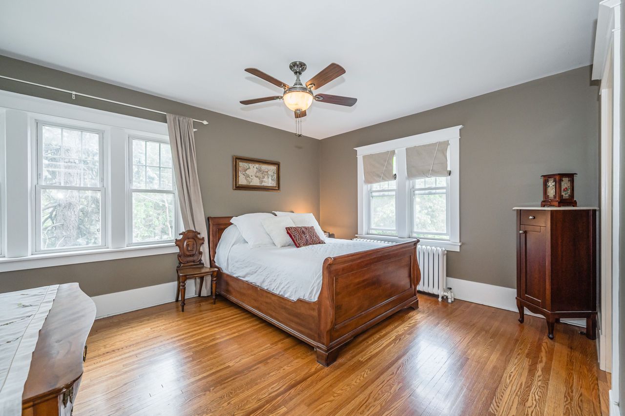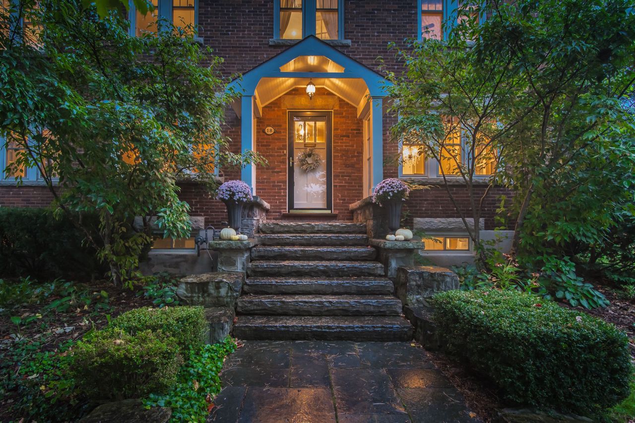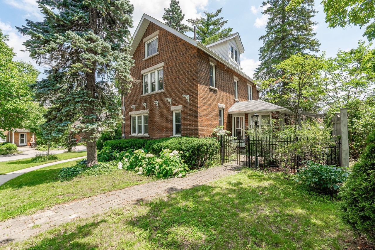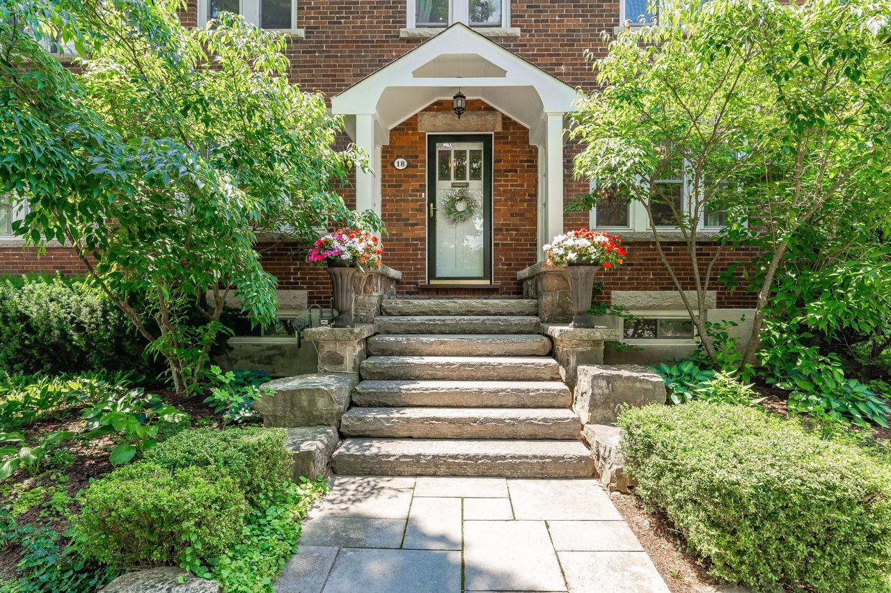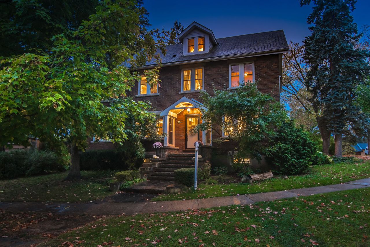 Stone pillars grace the entrance to Barber Avenue. An ideal setting amongst some of the most historic homes in Guelph’s highly sought after Exhibition Park neighbourhood. #18 is a gorgeous Georgian with a stately front entrance of stone steps between 2 dogwood trees. The main floor reflects the original architectural character with its marble entrance, hardwood floors, 10-inch baseboards, large door casings & timeless fixtures, all highlighted by natural light from many windows. This charm & the contemporary open-concept design blend for a perfect setting for entertaining. The updated kitchen features an island with wine rack, breakfast bar & granite countertops flowing to a gracious dining room. The spacious living room with wood burning fireplace, leads to the bright sunroom perfect for a home office/den, & the back porch mudroom or coffee retreat. Upstairs features 4 spacious bedrooms, & 2 baths.Both baths have heated flrs for modern comfort.Rare for this vintage,the large primary bedroom has a W/I closet & ensuite.On to the large 3rd floor attic, completely renovated with new windows,wood floors & gas fireplace,a welcoming retreat