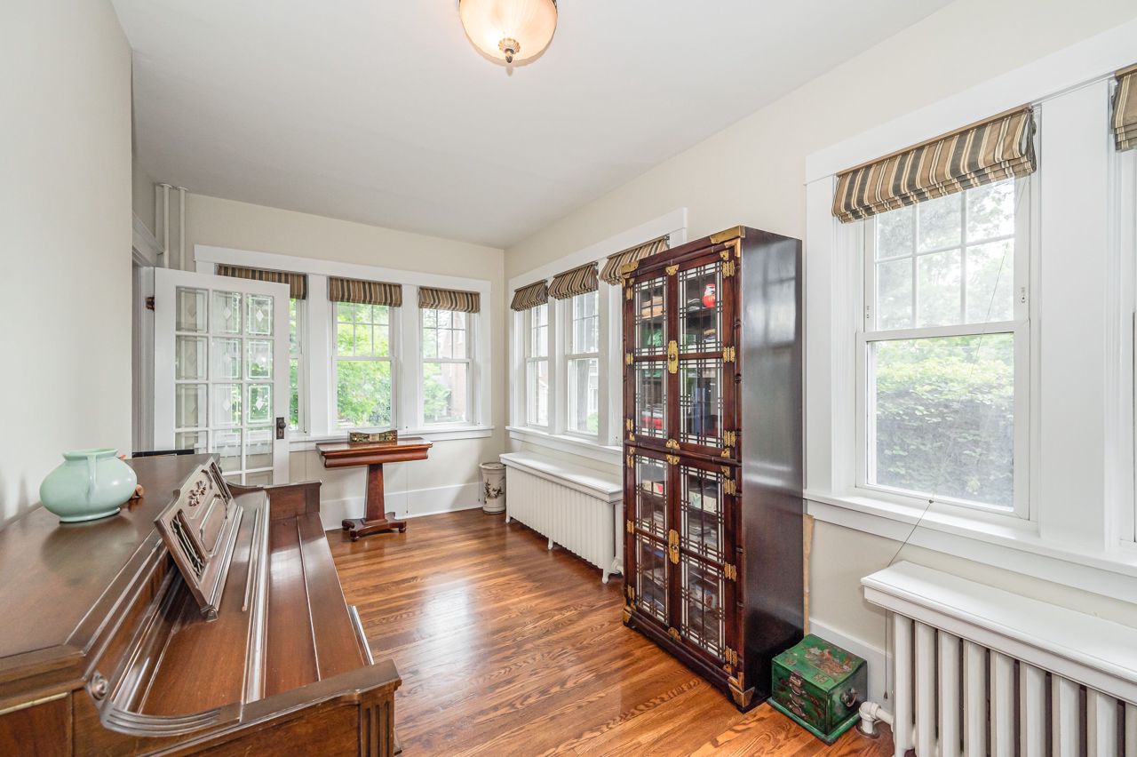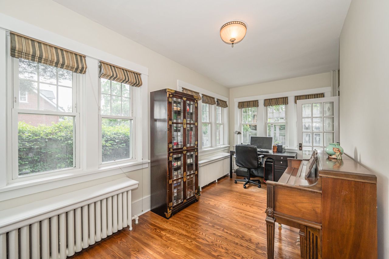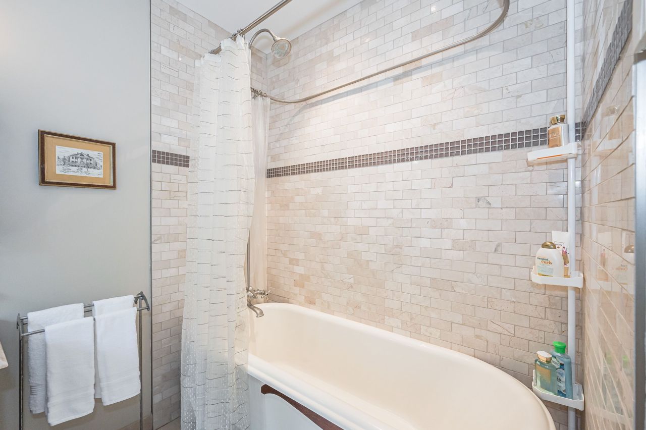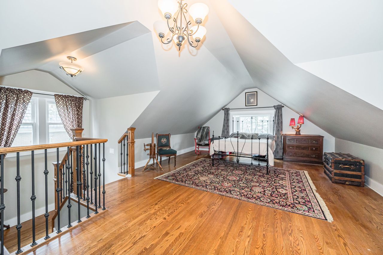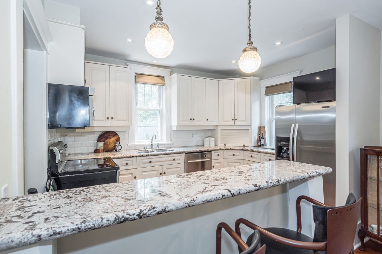 Stone pillars grace the entrance to Barber Avenue. An ideal setting amongst some of the most historic homes in Guelph’s highly sought after Exhibition Park neighbourhood. #18 is a gorgeous Georgian with a stately front entrance of stone steps between 2 dogwood trees. The main floor reflects the original architectural character with its marble entrance, hardwood floors, 10-inch baseboards, large door casings & timeless fixtures, all highlighted by natural light from many windows. This charm & the contemporary open-concept design blend for a perfect setting for entertaining. The updated kitchen features an island with wine rack, breakfast bar & granite countertops flowing to a gracious dining room. The spacious living room with wood burning fireplace, leads to the bright sunroom perfect for a home office/den, & the back porch mudroom or coffee retreat. Upstairs features 4 spacious bedrooms, & 2 baths.Both baths have heated flrs for modern comfort.Rare for this vintage,the large primary bedroom has a W/I closet & ensuite.On to the large 3rd floor attic, completely renovated with new windows,wood floors & gas fireplace,a welcoming retreat