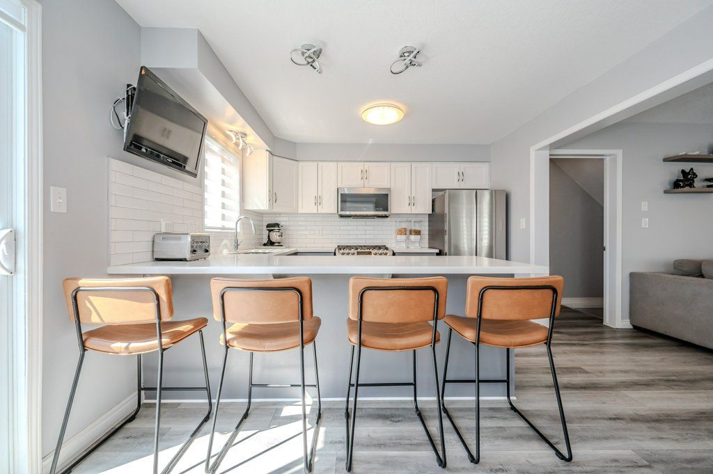 nd unit freehold townhome - Just a breath of fresh air! That's how you will feel as you enter into the foyer of this family home. A Foyer with a double closet and separated from your main living space making it easy to keep all the back packs, shoes and jackets where they need to be. Entering into the expansive 23 foot Living room with gas fireplace, you will appreciate having all the space you need to accommodate not just your family but friends too. The Kitchen offers a dining space and walk out to the bright and inviting deck space which overlooks the yard and hot tub. The Kitchen boasts a gas stove, all stainless appliances and attractive quartz counter and updated lighting. No carpet in this home making it easy to maintain! Upstairs are two nicely sized bedrooms rooms plus a large Primary with walk-in closet and gas fireplace with seating area. There is a semi ensuite family bath with double sinks! Also on this left is an office loft area making working at home easy. The basement is also finished with appropriate permits. Here you have a large 23 ft x 17 ft recreation room. A 3pc bath, and another office space. Finishing off the space is a laundry closet with lots of storage. This home offers you the space and location you have been waiting for. Finished top to bottom, and an outdoor space with inviting deck space, patio space and a spot for your pets. Book your appointment today.