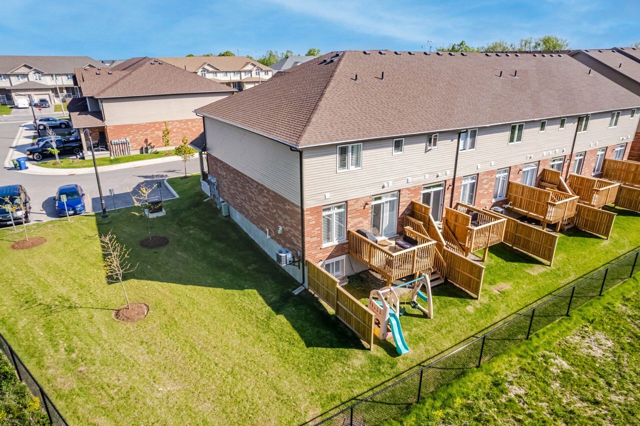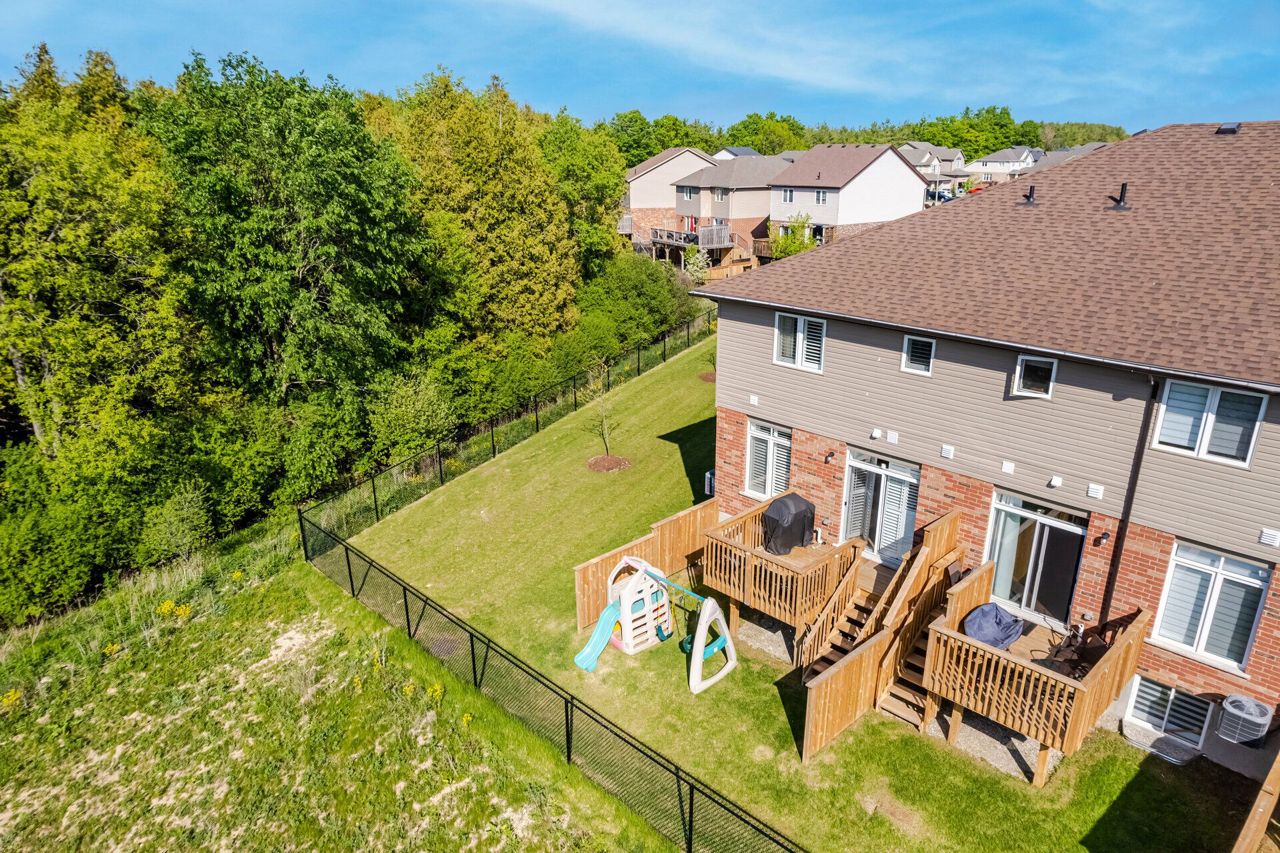 A Gem Within East Guelph. Nestled In A Coveted Location, This Remarkable Corner Executive Townhome Redefines Luxury Living. Prepare To Be Captivated By The Allure Of This Exquisite Residence. Featuring 9Ft Ceilings, Total 4 Bedrooms, 4 Bathrooms, And Approx 2500 Sqft Of Living Space. Beyond The Walls Of This Luxurious Abode Lies A Peaceful Sanctuary With Lush Greenery And Mature Trees. The Exclusive Corner Lot Location Ensures Unparalleled Privacy And Serenity. Step Inside, And Be Greeted By An Ambiance That Exudes Elegance And Sophistication. The Attention To Detail Is Evident In Every Corner, As No Expense Was Spared With 100K Of Carefully Curated Upgrades. Indulge In The Heart Of The Home - The Gourmet Kitchen. A True Masterpiece, Showcasing Top-Of-The-Line Ss Appliances, Custom Extended Cabinetry W/Soft Close Throughout(Also Bathrooms), Exquisite Carerra Quartz Counters On The Massive 8Ft Island W/Storage+Backsplash And European White Oak Hardwood Throughout Main Floor/Upper Hall.The Builder Finished Basement Boasts 1 Bedroom, Fully Upgraded Bathroom, 2 Living Areas Along With Premium Laminate Flooring And Large Windows. Built 2022, It Is Practically New. Nothing Like This Available In Guelph**View 3D/Virtual Tour**