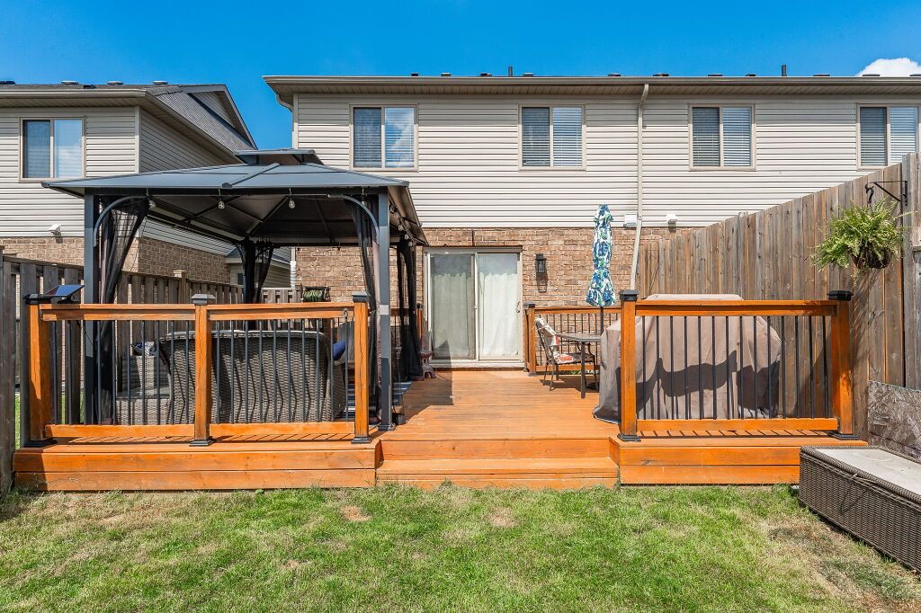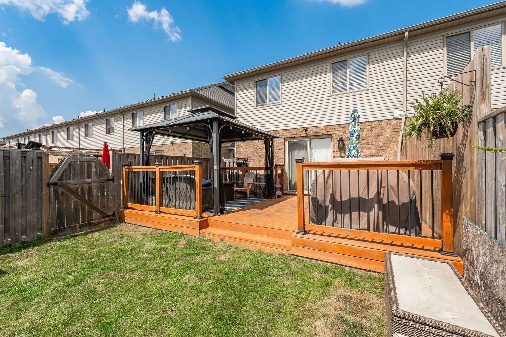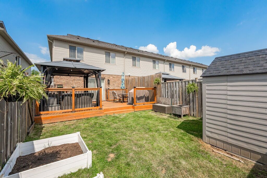 Welcome to one of the most sought after neighborhoods in the beautiful east-end of Guelph. This end-unit freehold townhouse is a perfect fit for first-time home buyer or a young family, as you walk in the front door you are greeted to an open concept layout with lots of natural lighting. The living room features rich hardwood flooring leading out to your own personal oasis, to a fully fenced yard and a beautiful deck. Outside you will find a shed, metal gazebo, and plenty of space for gardening! 3 spacious bedrooms upstairs, including an impressive master suite that features a walk in closet, an expansive bay window, and a spa like bathroom. Convenient second floor laundry makes doing chores a breeze and has a roomy linen closet providing plenty of storage space. Professionally finished basement, with a 3 piece bathroom! This quiet family friendly neighborhood is close to parks, schools. Easy access to the highway, grocery stores, and lots of restaurants!