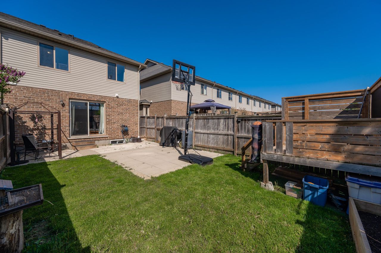 Your Dream Home Awaits! Stunning end unit 3 Bedroom, 2 Bathroom FREEHOLD Townhome in Guelph's East End. With a spacious interior spanning 1569 square feet, this home offers the perfect blend of comfort, style, and convenience. The open-concept layout seamlessly integrates the living, dining, and kitchen areas. Natural light floods the rooms, creating a bright and airy atmosphere that will instantly make you feel at home. The well-appointed kitchen is a chef's delight, featuring modern appliances, a stylish backsplash, ample cabinetry and counter space. Also, there's a 2pc bathroom. On the second floor, the three spacious bedrooms provide peaceful retreats for everyone in the household. The primary bedroom is huge, with cheater access to the five-piece bath. The laundry is also located on this floor. Outside, a charming patio area awaits, offering a delightful spot for outdoor relaxation. You can create a beautiful garden oasis or enjoy the fresh air and serene surroundings.Easy access to many amenities, from excellent schools and parks to walking trails. Take advantage of the opportunity to make this exquisite townhome your own. Contact us today to arrange a viewing.