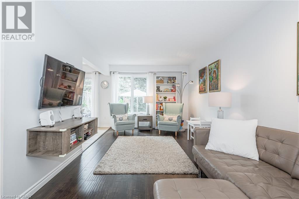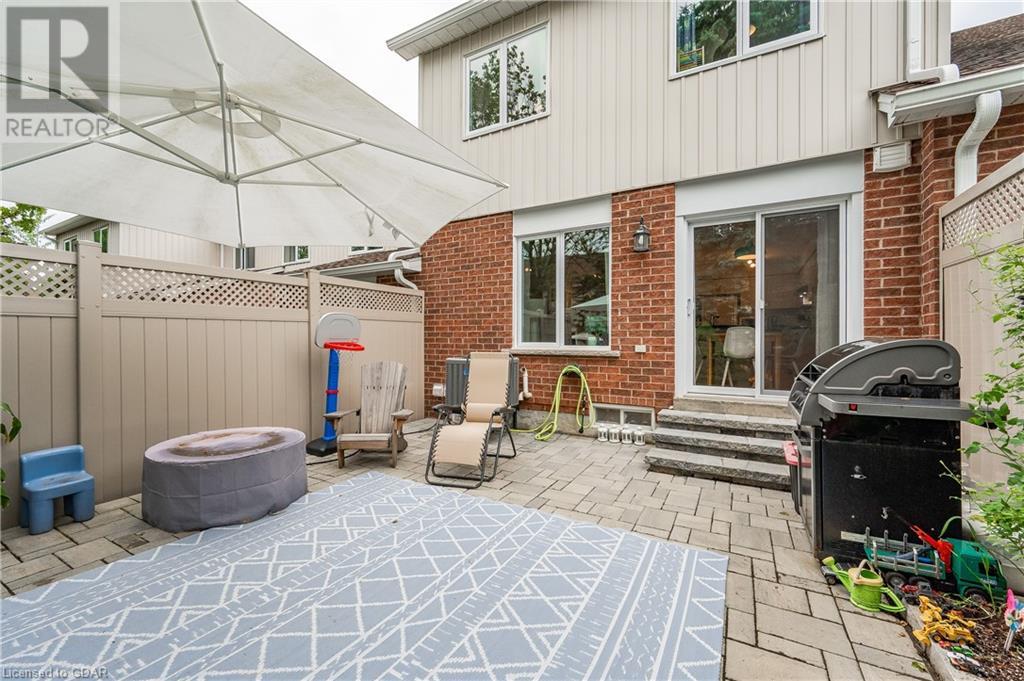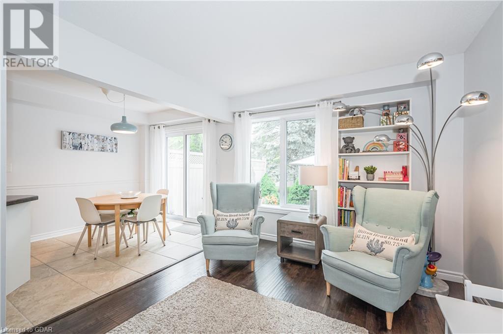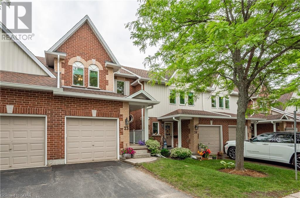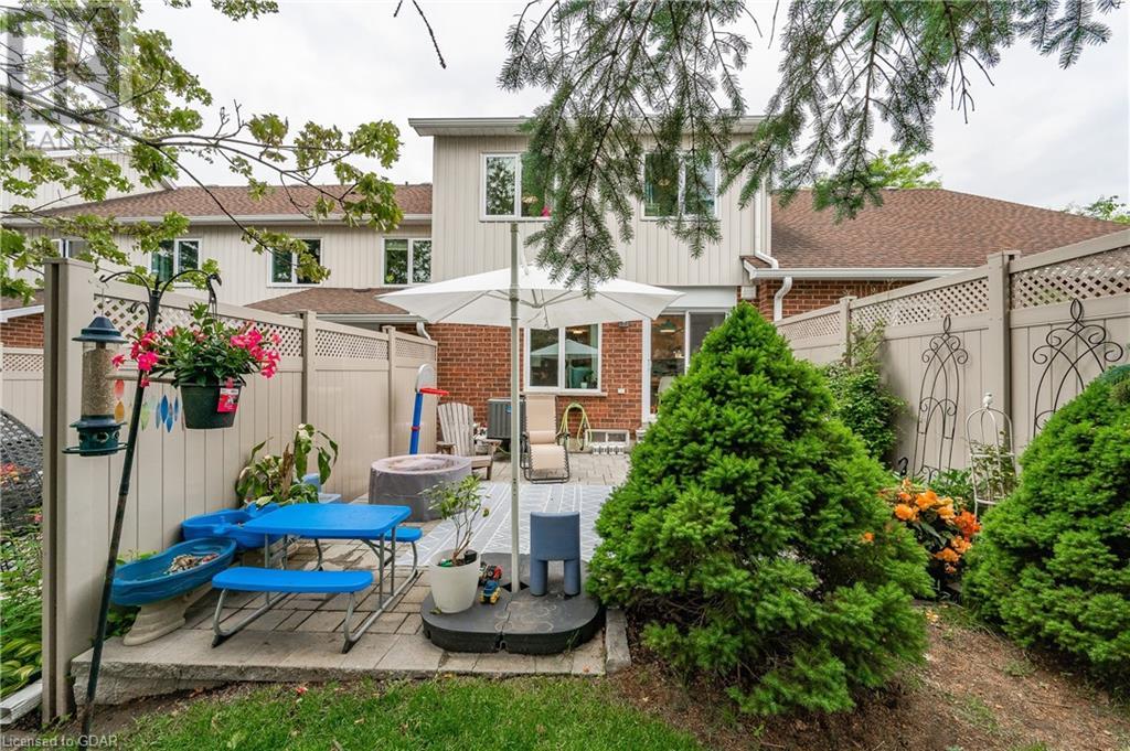 Welcome to this executive condominium townhouse located in the highly sought-after Kortwright Hills area of Guelph. Situated in a mature and desirable neighborhood, this stunning two-story townhouse features three bedrooms and is brimming with numerous upgrades, making it the perfect home for families and individuals alike. Upon entering, you will be captivated by the open concept design, seamlessly blending the dining and living areas to create a spacious and inviting atmosphere. The sliding doors in the dining room lead to a lovely garden patio, providing a serene outdoor space for relaxation and entertaining. Whether it's enjoying a morning coffee or hosting a barbecue with friends and family, this private oasis is a true gem. The location of this townhouse is truly exceptional. Surrounded by parks, reputable schools, and convenient shopping markets, you'll have everything you need right at your doorstep. Imagine taking leisurely walks in the nearby parks, enrolling your children in top-notch schools, and effortlessly accessing all your shopping needs. This home has been meticulously upgraded, ensuring modern comforts and style. The well-appointed bedrooms offer ample space and natural light, providing a cozy retreat at the end of the day. Don't miss the opportunity to make this townhouse your own. With its ideal location, stunning upgrades, and proximity to amenities, it truly embodies the perfect blend of comfort, convenience, and elegance. Experience the charm of this desirable neighborhood and embrace the joys of townhouse living. (id:22211)