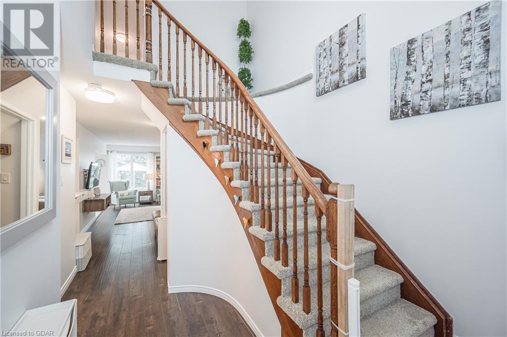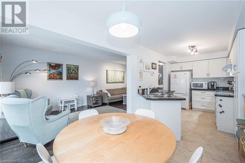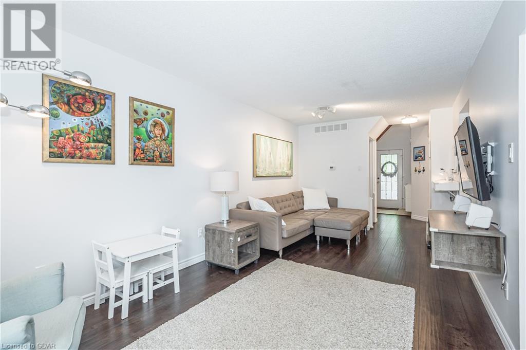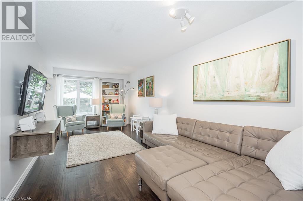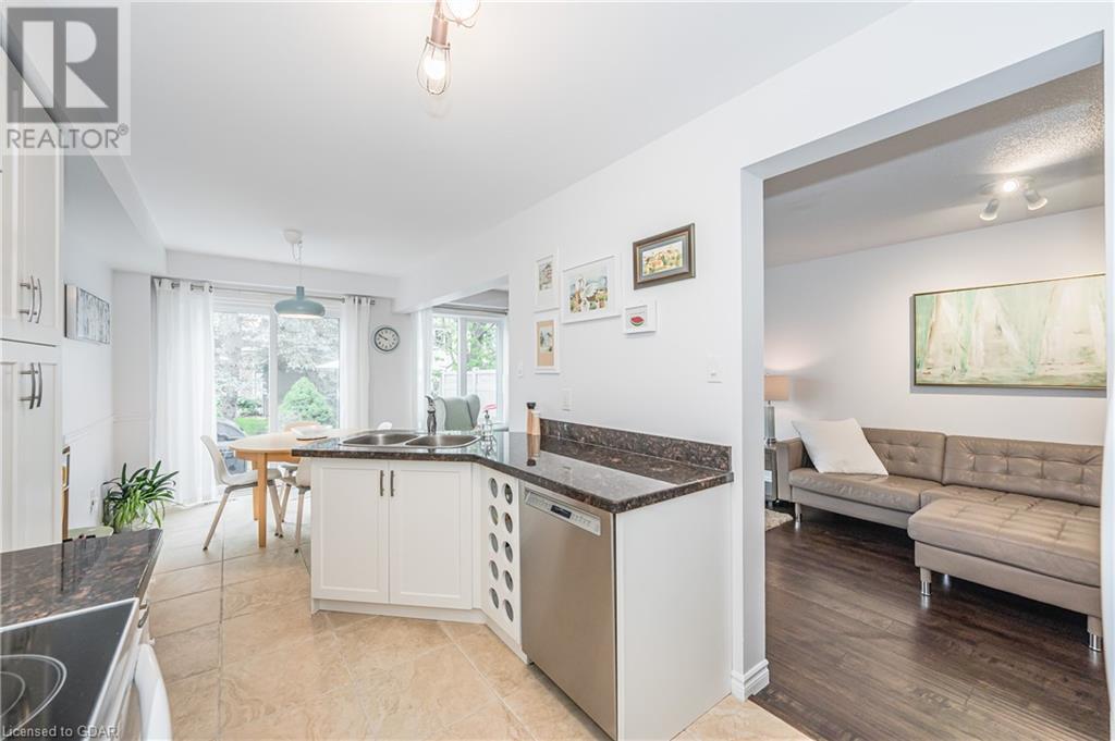 Welcome to this executive condominium townhouse located in the highly sought-after Kortwright Hills area of Guelph. Situated in a mature and desirable neighborhood, this stunning two-story townhouse features three bedrooms and is brimming with numerous upgrades, making it the perfect home for families and individuals alike. Upon entering, you will be captivated by the open concept design, seamlessly blending the dining and living areas to create a spacious and inviting atmosphere. The sliding doors in the dining room lead to a lovely garden patio, providing a serene outdoor space for relaxation and entertaining. Whether it's enjoying a morning coffee or hosting a barbecue with friends and family, this private oasis is a true gem. The location of this townhouse is truly exceptional. Surrounded by parks, reputable schools, and convenient shopping markets, you'll have everything you need right at your doorstep. Imagine taking leisurely walks in the nearby parks, enrolling your children in top-notch schools, and effortlessly accessing all your shopping needs. This home has been meticulously upgraded, ensuring modern comforts and style. The well-appointed bedrooms offer ample space and natural light, providing a cozy retreat at the end of the day. Don't miss the opportunity to make this townhouse your own. With its ideal location, stunning upgrades, and proximity to amenities, it truly embodies the perfect blend of comfort, convenience, and elegance. Experience the charm of this desirable neighborhood and embrace the joys of townhouse living. (id:22211)