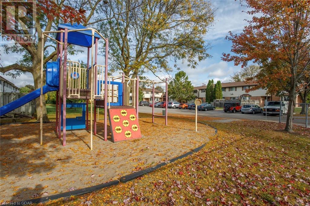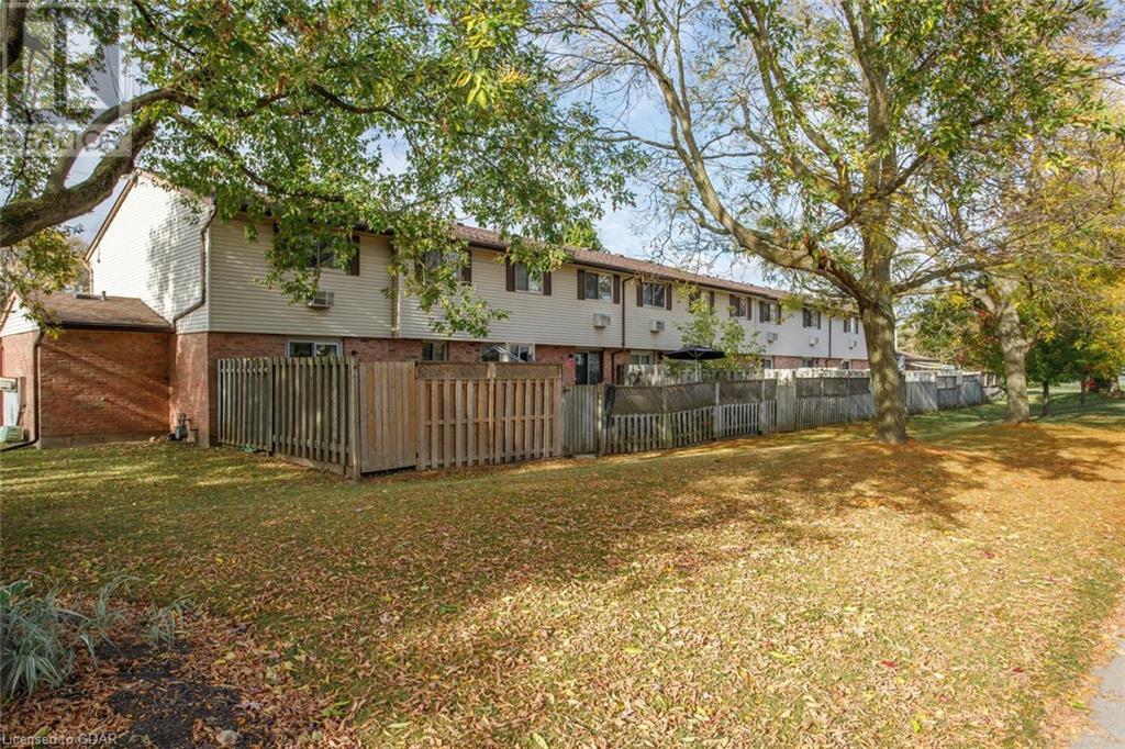 ATTENTION FIRST TIME BUYERS, INVESTORS AND DOWNSIZERS!!!! This wonderful 2 storey townhome awaits a new owner! It's cute and affordable. Boasting 2+1 bedrooms, 2 updated bathrooms and a partially finished basement. Main floor has an eat-in kitchen and a large living room with a gas fireplace. Sliding doors to the backyard which is tastefully landscaped, giving safe outdoor space for your children and pets to play in a fully fenced yard also has a natural gas BBQ. Upgrades include 2 newer windows, newer refrigerator, newer flooring and added insulation in the attic. The complex has a playground for the children. You will enjoy the convenient location for shopping and schools. Easy access from the Hanlon to the 401. TURN YOUR RENT PAYMENT INTO HOME OWNERSHIP!!!!!!. Call and schedule your private viewing today. (id:22211)