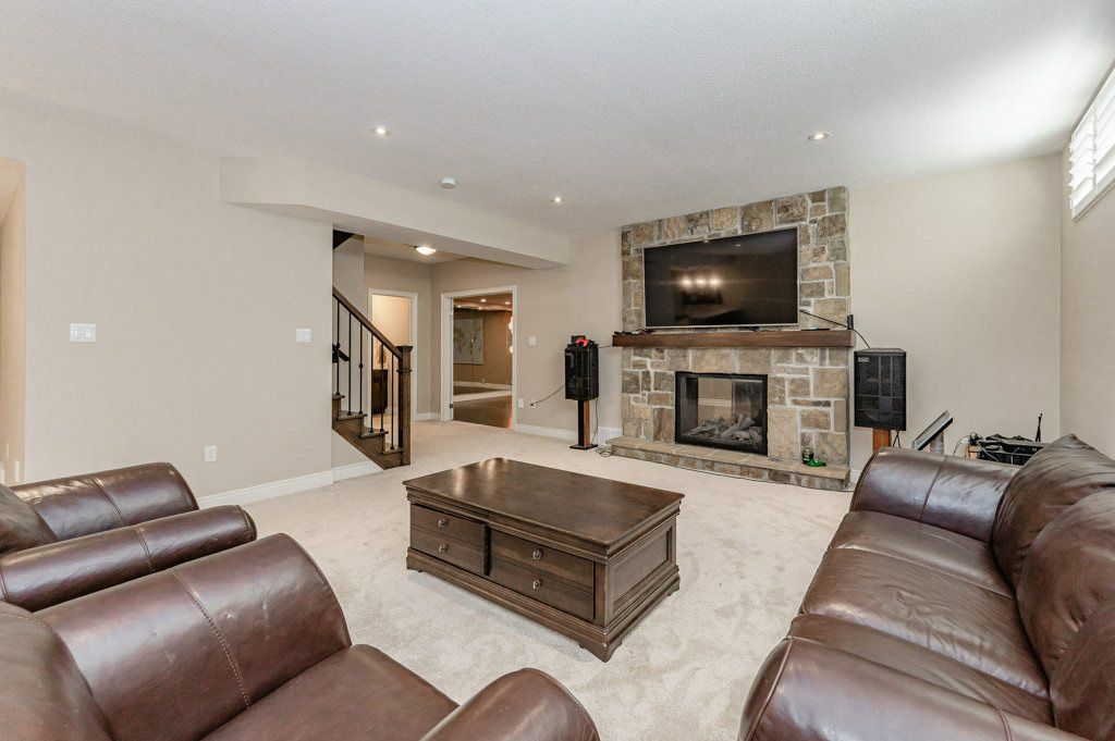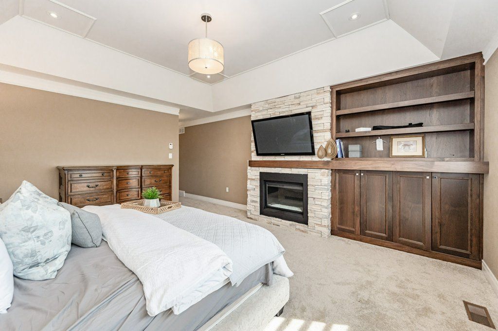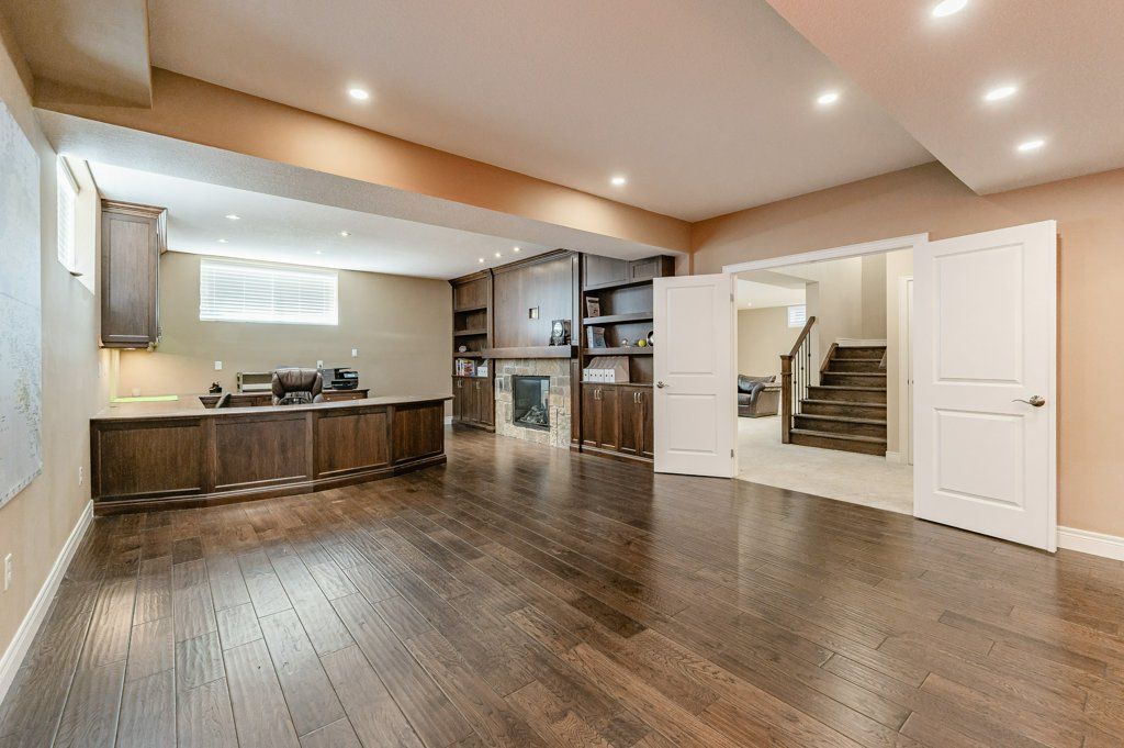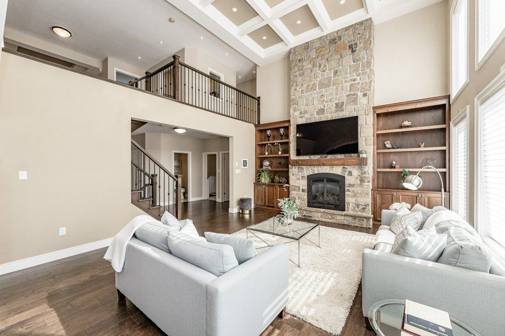 5-bdrm home W/exquisite finishes & meticulous attention to detail! Stone exterior, wooden doors & landscaped grounds creating abundance of curb appeal. Foyer W/stone in-lay & chandelier. Great room W/engineered hardwood, 20ft ceilings & wall of windows W/automatic blinds. Floor-to-ceiling stone fireplace nestled btwn custom B/Is. Kitchen W/granite counters, custom Barzotti cabinetry & top-of-the-line Thermador S/S appliances. Centre island W/pendant lighting & seating for casual dining! Butlers pantry W/add'l sink, B/I wine fridge & W/I pantry. Garden doors off breakfast nook lead to yard. DR W/tray ceilings & window. Mudroom W/dbl closet & B/I bench W/storage. Wood staircase leads up to prim bdrm with W/I closet & fireplace W/barn wood mantel & custom B/I shelving! 5pc ensuite W/tub, W/I glass shower, sep room for toilet & dbl vanity. 3 other bdrms & 2 have custom B/I seating. 1 bdrm has 3pc ensuite. 5pc bath W/dbl vanity, private room for toilet & shower/tub. Granny suit W/3pc bath.Prof finished bsmt W/9 ft ceilings, rec room & pot lighting. 2-way fireplace surrounded by custom B/Is & wet bar W/seating. Office W/engineered hardwood & large windows. Relax on covered deck or lower patio & take in view of landscaped yard