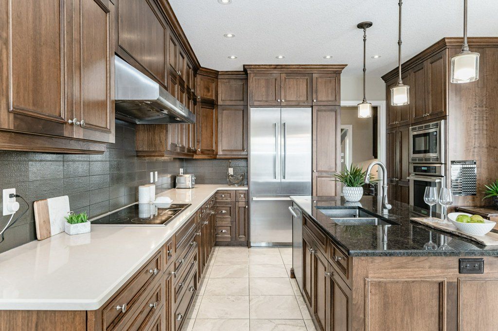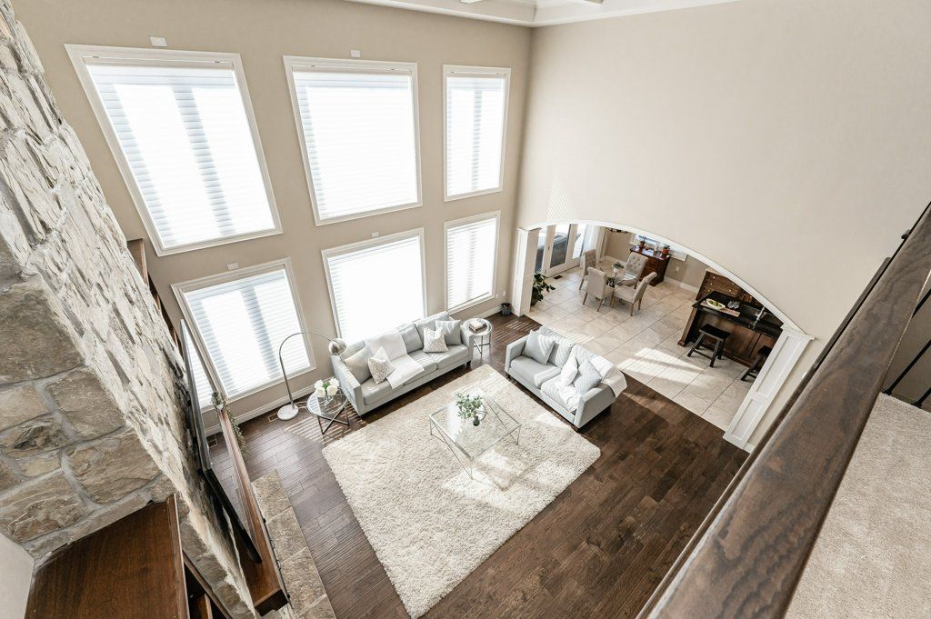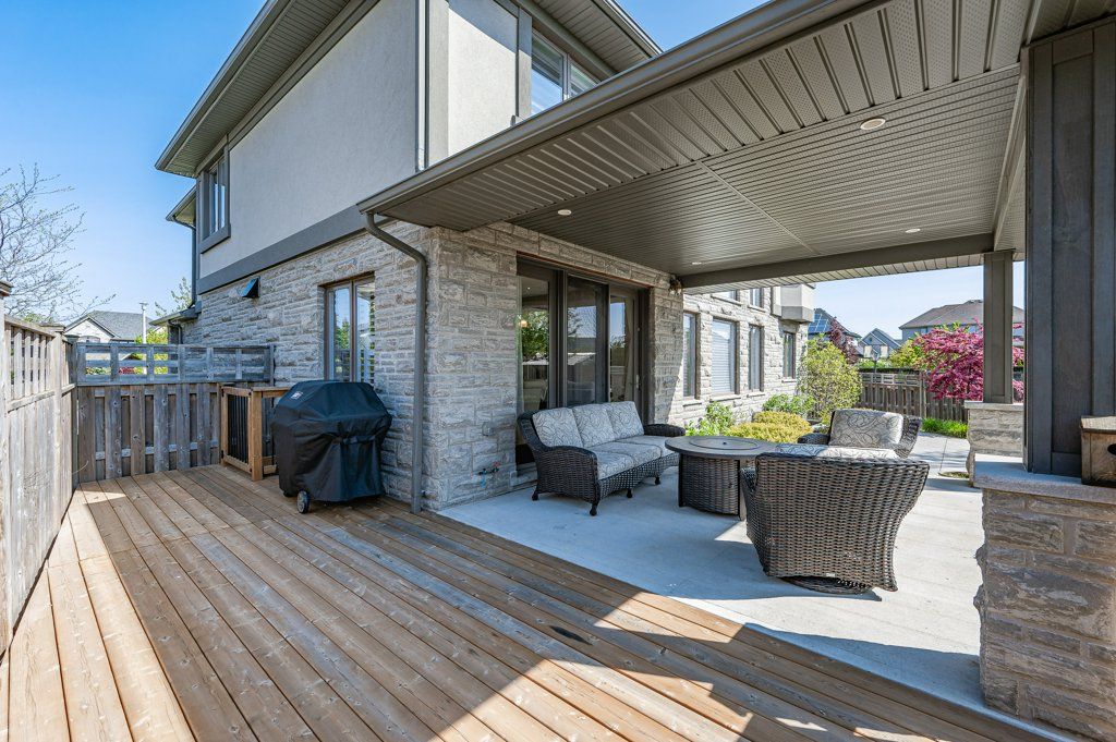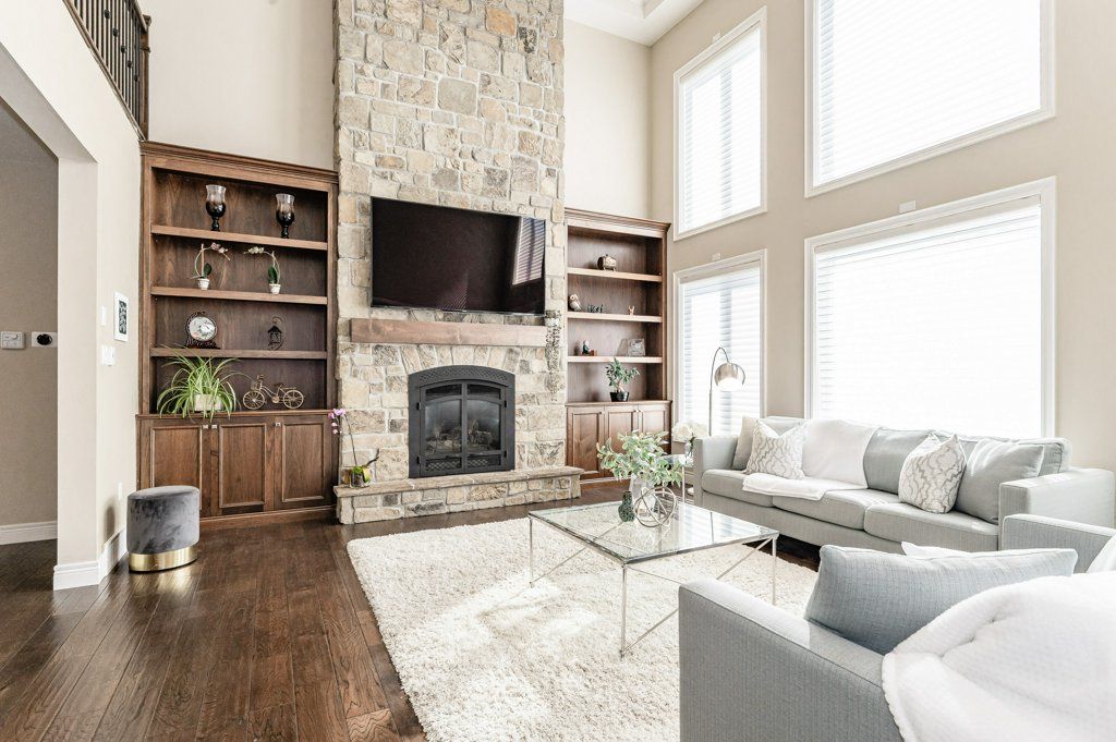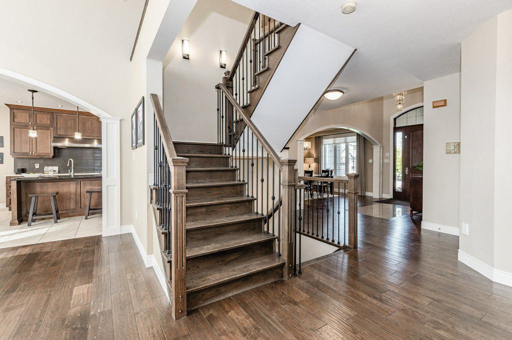 5-bdrm home W/exquisite finishes & meticulous attention to detail! Stone exterior, wooden doors & landscaped grounds creating abundance of curb appeal. Foyer W/stone in-lay & chandelier. Great room W/engineered hardwood, 20ft ceilings & wall of windows W/automatic blinds. Floor-to-ceiling stone fireplace nestled btwn custom B/Is. Kitchen W/granite counters, custom Barzotti cabinetry & top-of-the-line Thermador S/S appliances. Centre island W/pendant lighting & seating for casual dining! Butlers pantry W/add'l sink, B/I wine fridge & W/I pantry. Garden doors off breakfast nook lead to yard. DR W/tray ceilings & window. Mudroom W/dbl closet & B/I bench W/storage. Wood staircase leads up to prim bdrm with W/I closet & fireplace W/barn wood mantel & custom B/I shelving! 5pc ensuite W/tub, W/I glass shower, sep room for toilet & dbl vanity. 3 other bdrms & 2 have custom B/I seating. 1 bdrm has 3pc ensuite. 5pc bath W/dbl vanity, private room for toilet & shower/tub. Granny suit W/3pc bath.Prof finished bsmt W/9 ft ceilings, rec room & pot lighting. 2-way fireplace surrounded by custom B/Is & wet bar W/seating. Office W/engineered hardwood & large windows. Relax on covered deck or lower patio & take in view of landscaped yard