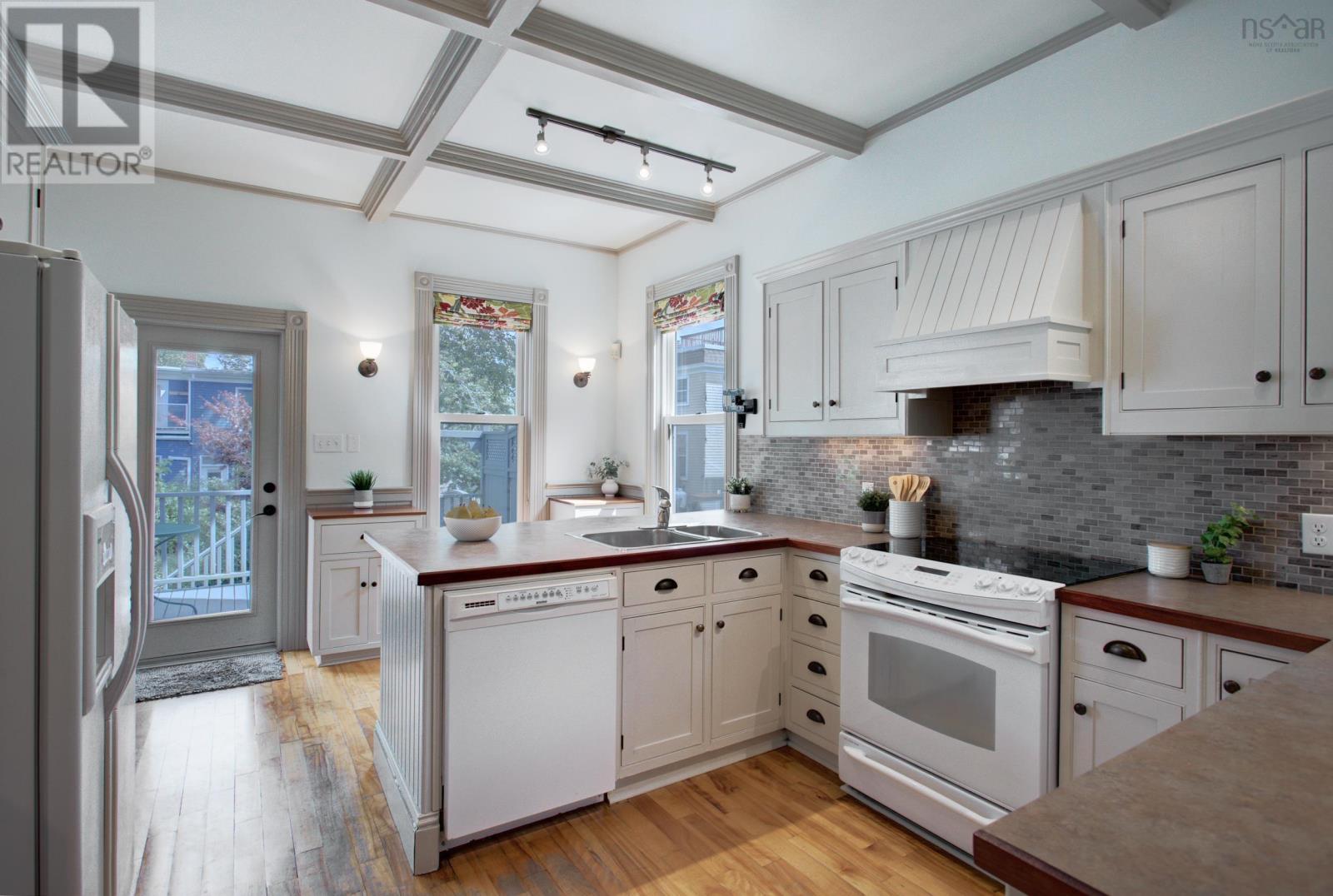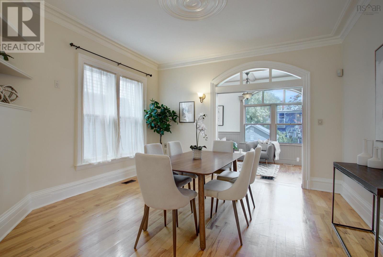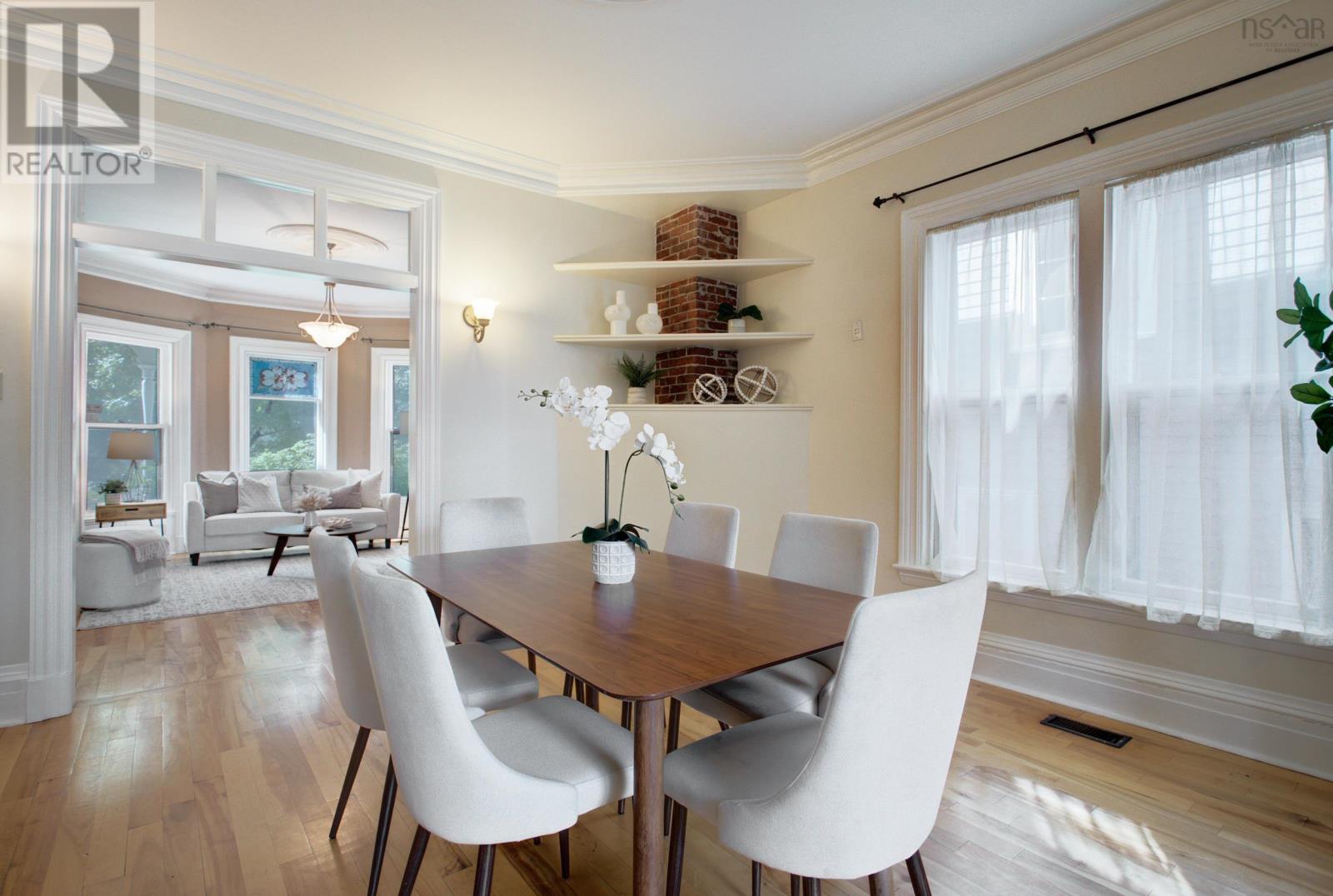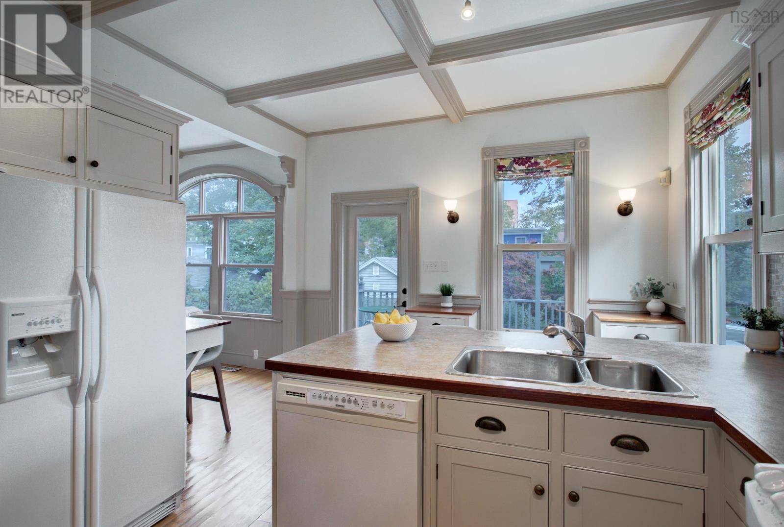 This character filled, truly special home has been thoughtfully updated over the years in keeping with the original historical design. The private, sunny and fully fenced yard/garden is a pleasure to come home to in this South End Halifax neighbourhood. The garage is wired, insulated and heated with excellent potential to renovate as a secondary suite or office space. Living Room with original fireplace, spacious Dining Room with custom archways, 9 1/2 ' ceilings, hardwood floors and pocket doors to Den. Kitchen and Den with architecturally designed coffered ceilings, beautiful windows and patio door overlooking back garden. This sun filled space is so inviting and the Custom designed kitchen is a space any home chef will enjoy! Four Bedrooms on the 2nd level plus 4 piece Bath-ready for a reno. The 3rd floor Attic with skylights is an amazing Bonus which could be used as a rec room, fitness area or 5th bedroom plus an office, study or craft space with a large built in desk. Walk out basement with a Mud Room, Utility room, Storage rooms, 1/2 Bath and Laundry, 200 amp service plus a furnace capable of being converted to a ducted heat pump system. This South End home is a pleasure to show! A hop skip and jump to Dalhousie, English and French Immersion schools, hospitals and a short walk to SMU and Downtown Halifax with all it has to offer including restaurants, pubs, shopping, Public Gardens, Citadel Hill, The Commons/Oval, Halifax Waterfront and Point Pleasant Park. Call your agent and book your viewing today! (id:22211)
