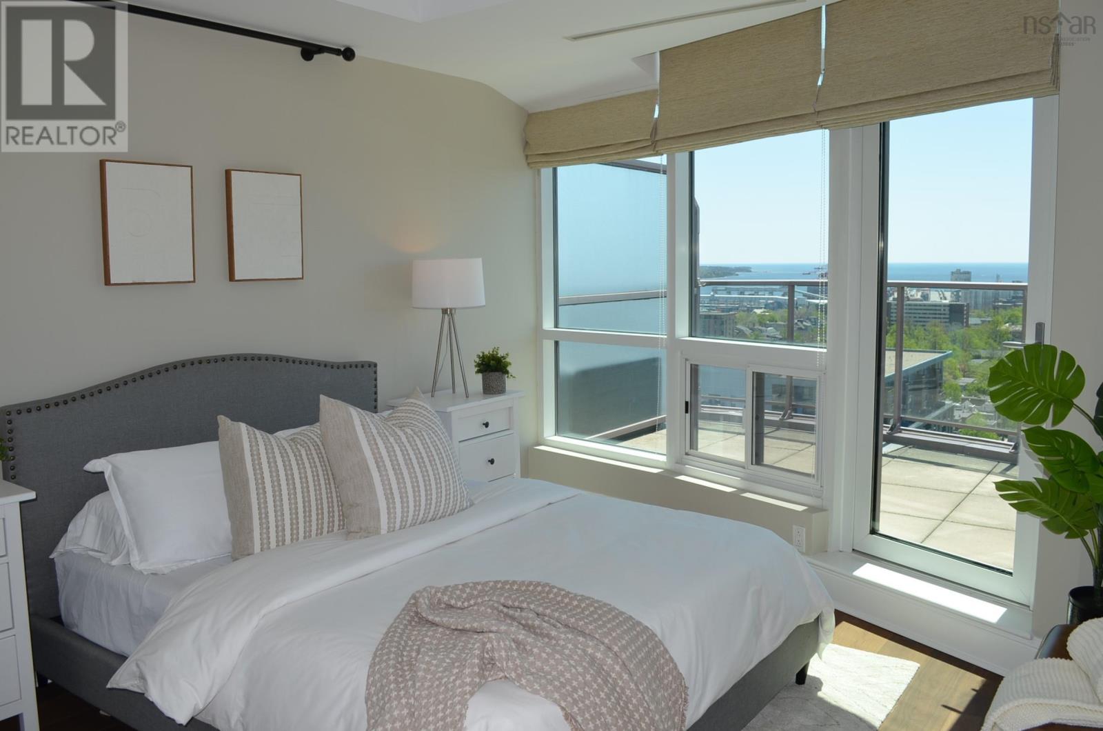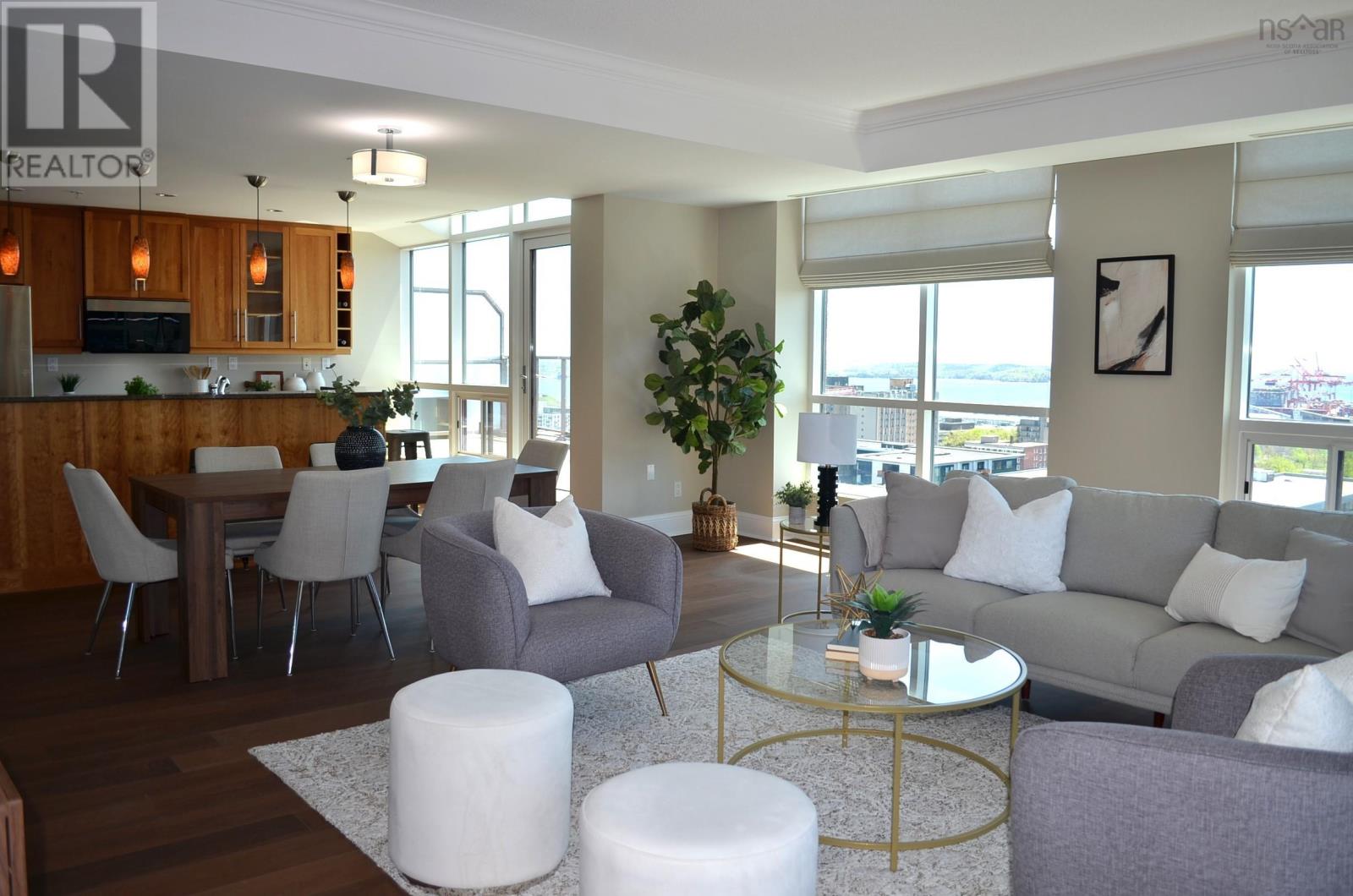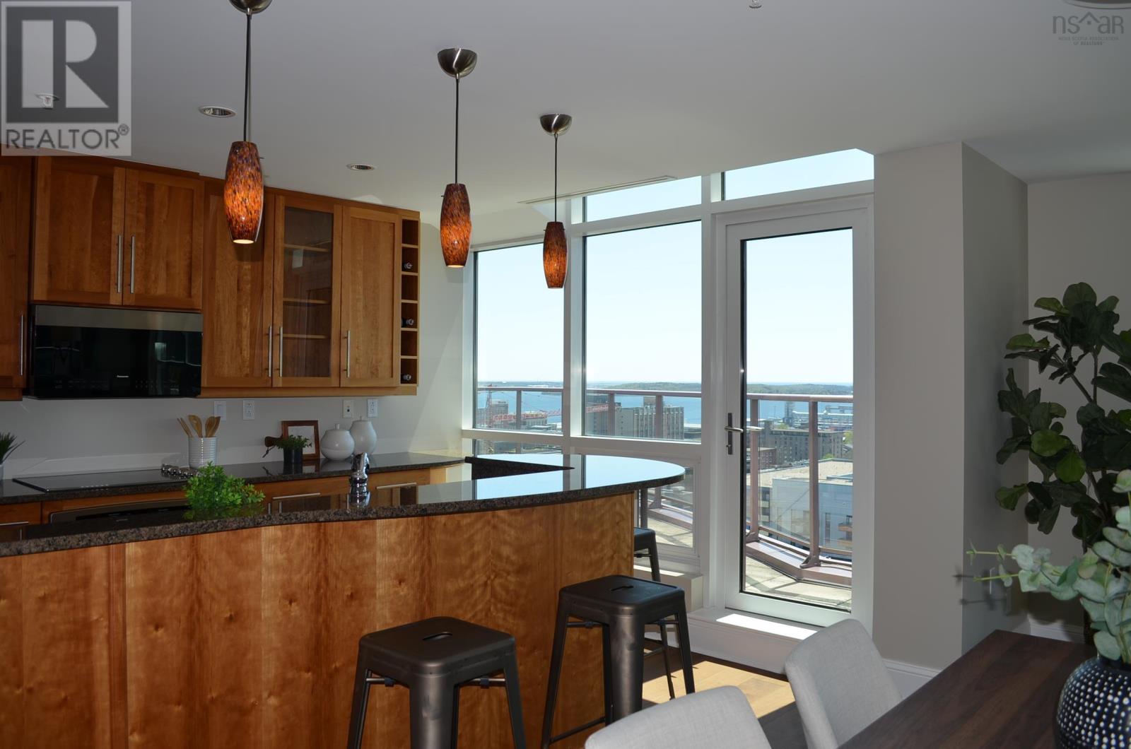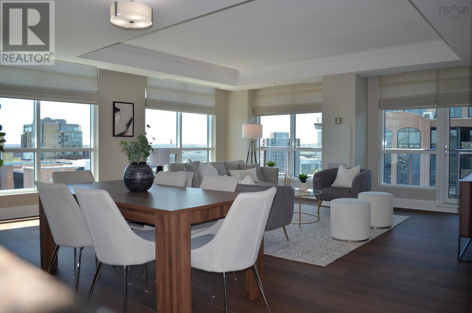 The Martello just steps from Spring Garden Rd. Bright and spacious one of a kind floorplan on the Signature 15th floor. 2-bedroom 2-bath corner Suite with South facing Patio and separate balcony to enjoy the water, city and Citadel views. Wide doors open to a spacious foyer with double closet. The open concept Kitchen, Dining and Living areas are modern, bright and perfect for entertaining inside or on the decks. The two bedrooms are separated for privacy, each with new closet organizers. The ensuite features an oversized jet tub, a bidet and large spa shower with bench. Condo fees include 1 indoor parking space with storage room, heat, hot water, 2 party rooms, billiards, gym with shower, observation decks with BarBQ and sitting areas. Pete?s Frootique is across the street for fresh produce, gourmet groceries and fresh prepared foods. The Martello is in the throws of activity walking to fine dining, shopping, public gardens, universities, hospitals and historic waterfront. Indoor access to Park Lane Mall and theatres. (id:22211)