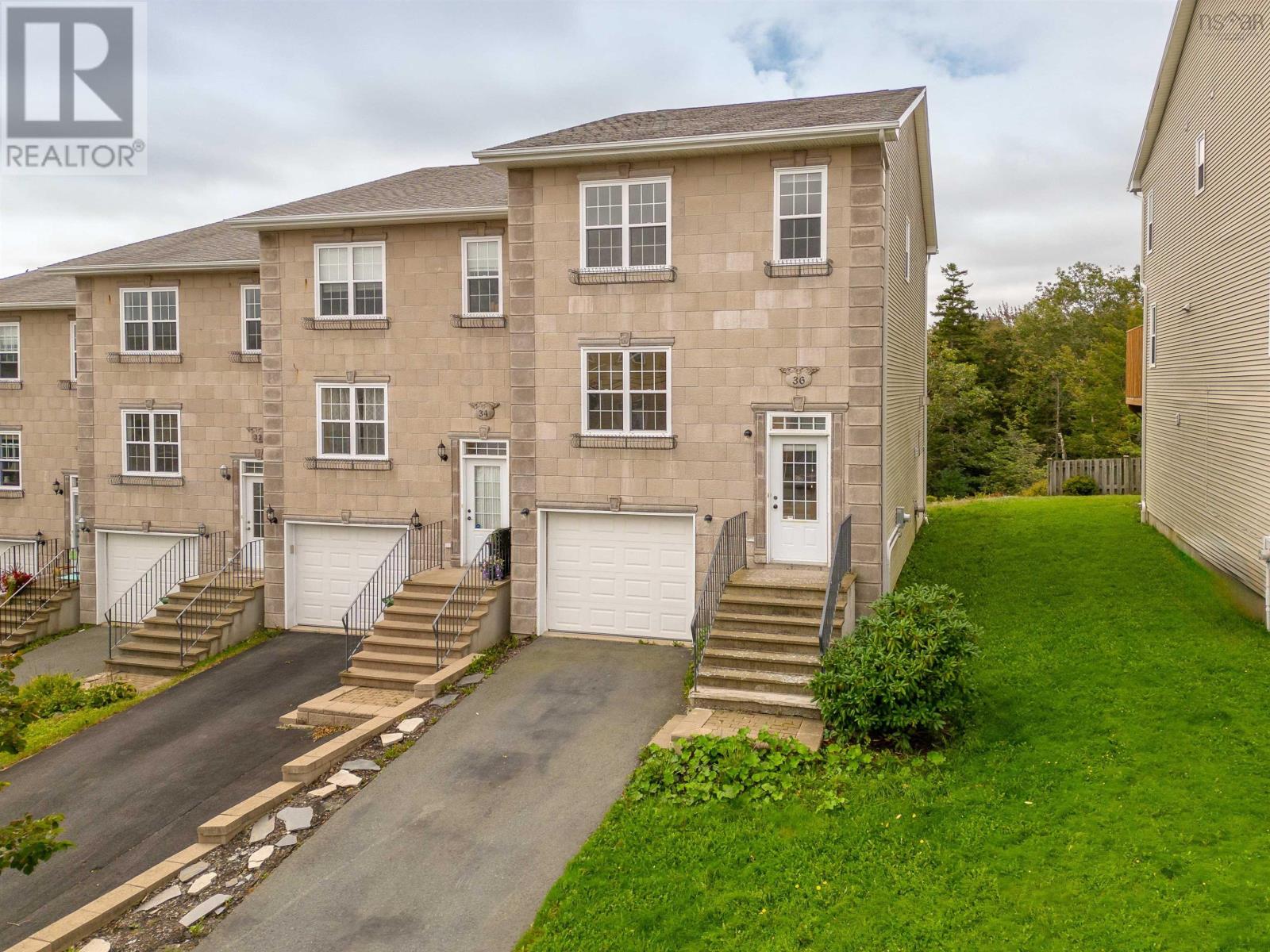 36 Brigadier is exactly where a stellar location collides with an ideal rental property or amazing starter home. This move-in ready 3 bedroom end unit townhome on a cul-de-sac is calling your name. Nestled quite perfectly between Larry Uteck amenities and the all Bedford Highway conveniences (DeWolfe Park, outdoor swimming pool, etc). The spacious main level has more than enough room for your growing family with oodles of additional room for entertaining. Upstairs you'll find 3 bedrooms and conveniently placed laundry. You'll swoon over the primary bedroom with a spacious ensuite. The walk-out basement has a large rec room where toys can live (hide) and an additional bathroom. Forget trekking up a set of stairs to find a bathroom - there's one on every floor. There's surprisingly large amount of storage here to tuck away your belongings. Great schools for your minions in addition to backing onto a serene green space with walking trails nearby. You'll love the recent top to bottom professional paint job. Whether you're looking for a family home or perhaps you're a savvy investor seeking to add to your real estate portfolio, this townhome will certainly speak to you. (id:22211)