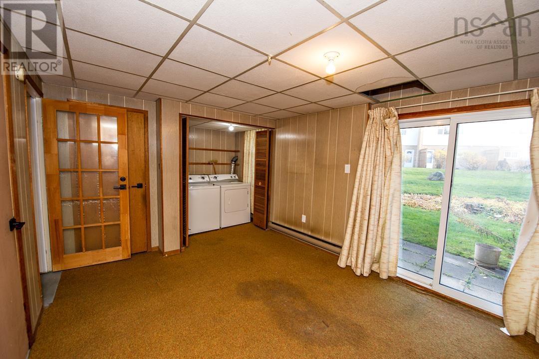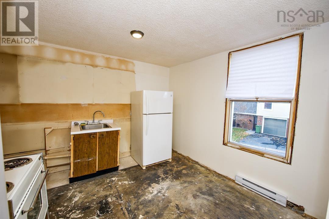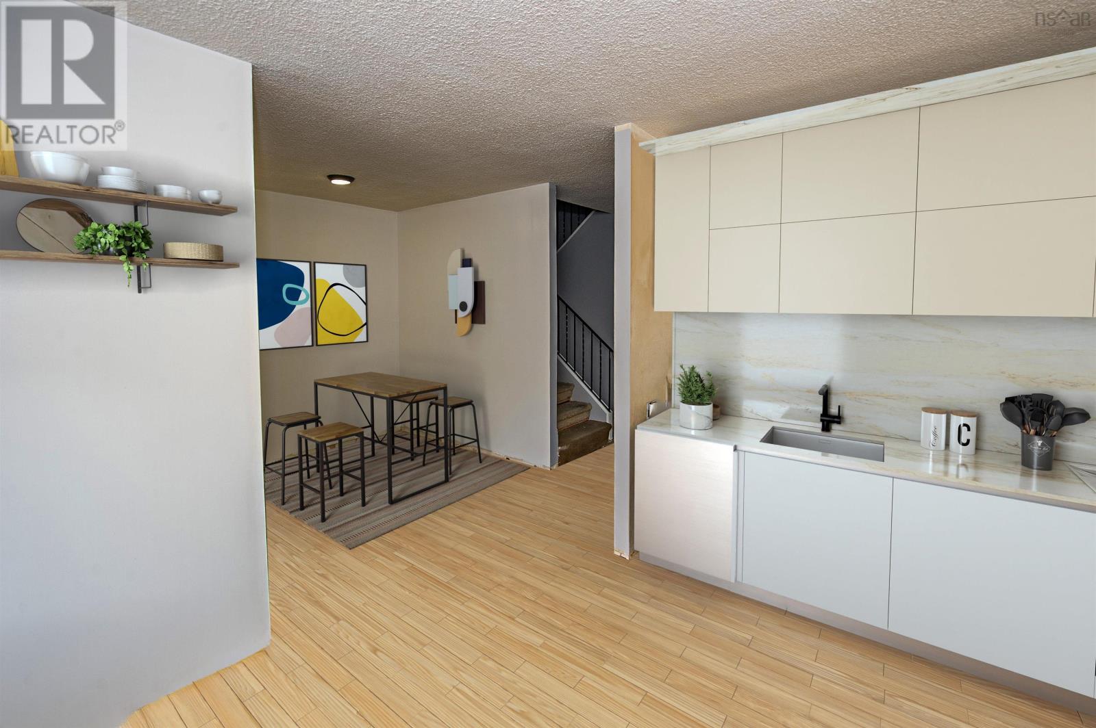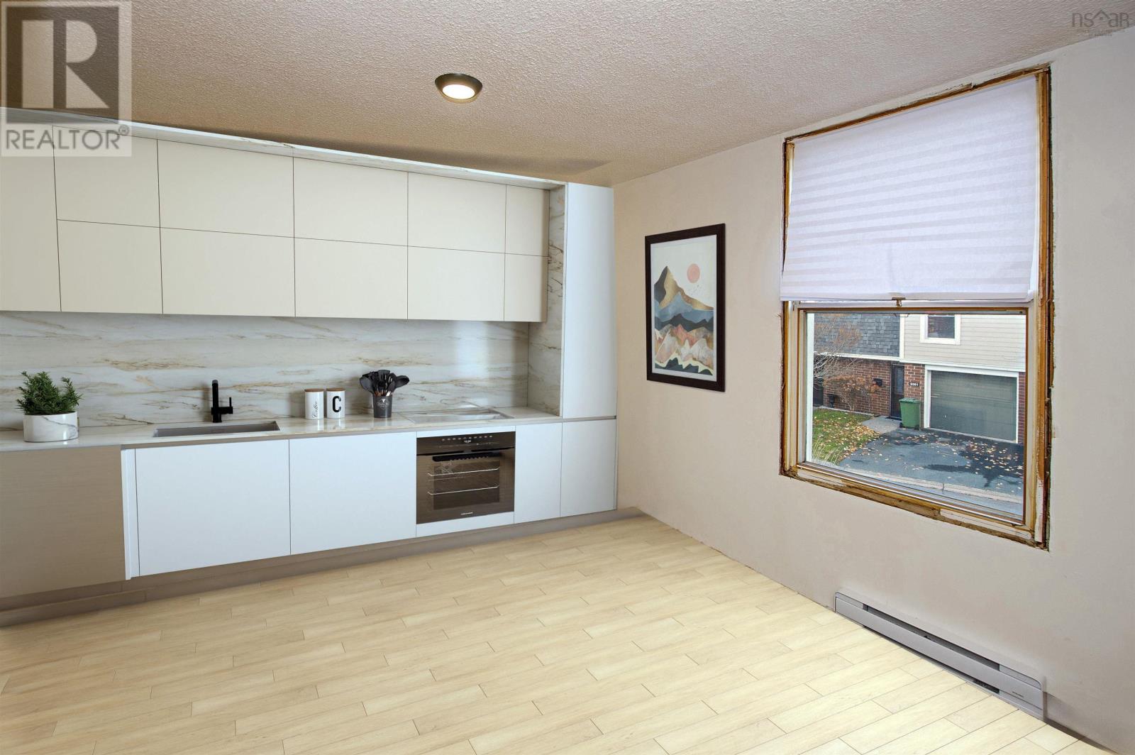 Wow! This well-priced and affordable 3 bedroom townhome is perfect for anyone who wants affordability, wants to stay on the peninsula and is ready, willing and able to make this home perfectly their own. Stoneham Court is a quiet North End Halifax cul-de-sac and these Kaiser built townhomes, in a very healthy condo corporation, were well designed and are well maintained. Main level has large eat-in kitchen, living dining area and a balcony that has you easily stepping outside anytime you want a quick break and a breath of fresh air. Upstairs you will find 3 bedrooms all a decent size with the master boasting a 6 x 7.5 walk-in closet, 4-piece bath and an extra-large linen closet. The lower level has laundry, 2-piece bath, rec room, single garage and a lovely patio area for your exclusive use. Top 2 levels have been freshly painted and have new light fixtures, baseboard heaters and thermostats. The price reflects buyer will need flooring throughout, kitchen appliances and cupboards, probable bathroom upgrade and possible electrical upgrade. This is a gem in the rough waiting for you to make it wonderful. (id:22211)