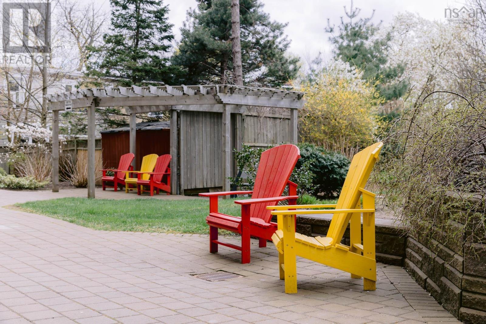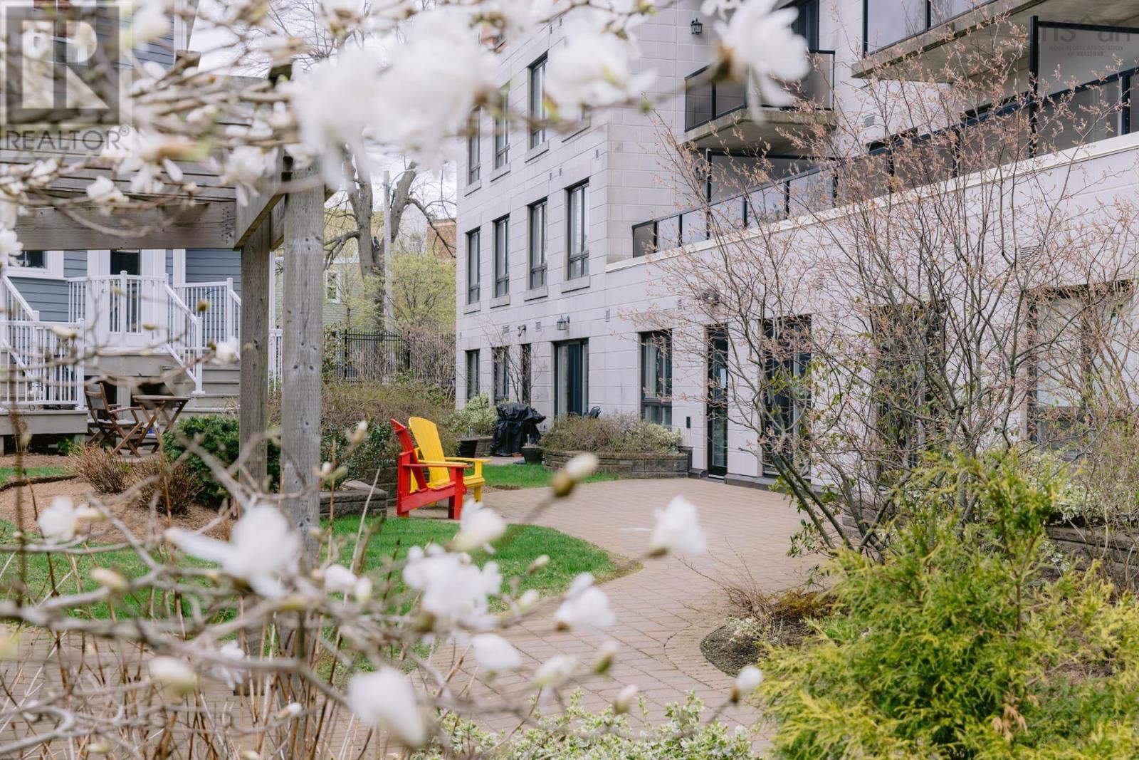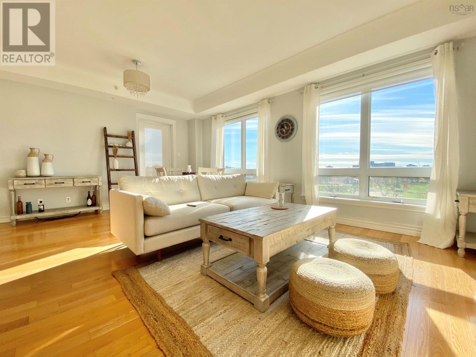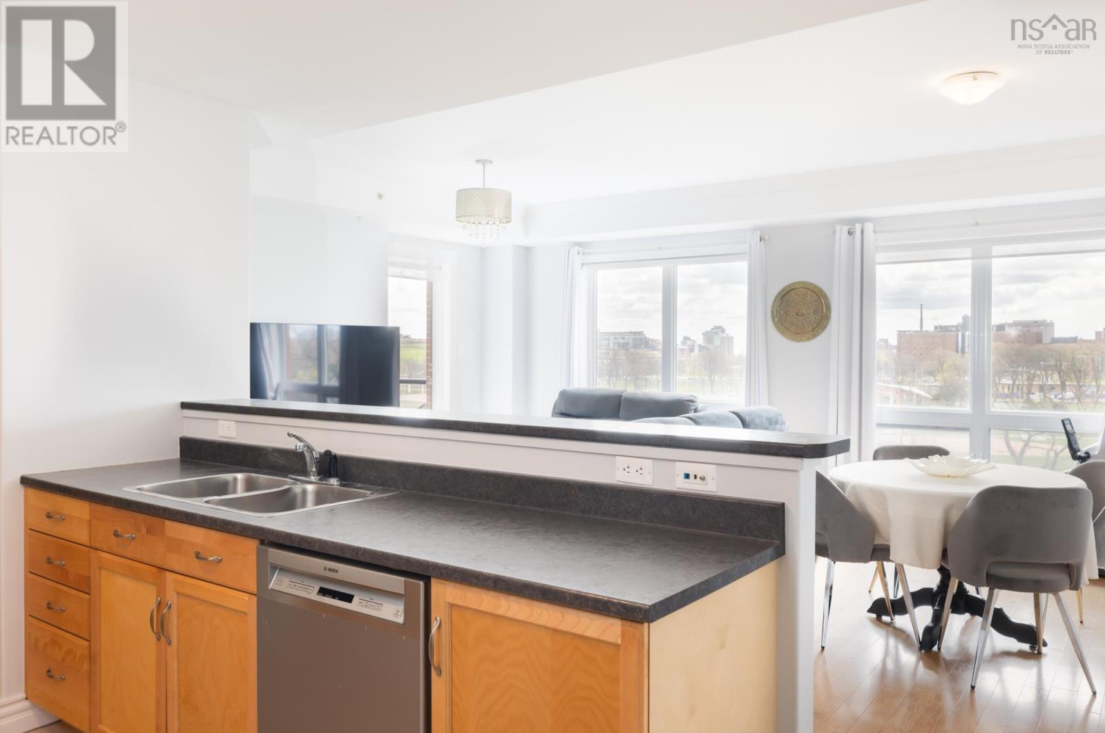 Welcome to a panoramic view of the Halifax Commons and Citadel Hill in this sunny, spacious, 2 bedroom + 2 full bath + den condo at Armoury Square in the heart of the peninsula, at the cusp of downtown Halifax. The unit features 1284 square feet of space, high ceilings, large windows, open-concept living, in-suite laundry, a storage locker, underground parking and a balcony to enjoy Halifax?s vibrant summer. Nestled on the 5th floor above a lush canopy of trees, this unit has a view from every room and is across the street from the Commons. Let the sunlight flood into the living room as you gaze over the Commons coffee in hand straight from the breakfast bar. Bring out your inner chef in the large kitchen with abundant counter-space. Wake up to the morning light in the primary bedroom (which fits a king-side bed with ample space to spare) with an attached 6-piece bath and walk-in closet. Host guests or set up a play pen in the secondary bedroom with an adjacent 3-piece bath. Get creative and set up your own office, library, or bar in the den! As one of the city?s most respected buildings, Armoury Square boasts a recreation centre, an enclosed garden, a gym, secured access, and bike storage included in a low condo fee that covers heat, water, A/C, landscaping and maintenance. Enjoy a summer barbecue from the comfort of your balcony. Or if you can find the heart to leave home, take a walk through the trendy North End, grab brunch at Agricola Street Brasserie or play fetch at the Commons with your furry friend. Take a bike ride up to the Citadel Hill or get in a workout at nearby North Endurance. With a host of options a stone?s throw away, Armoury Square really does have it all. If you love sunny homes with high ceilings, large windows, a spacious balcony, views from every room, all in a well-managed, respectable condo with low monthly fee, in a central and trendy location, this is it for you! View 3D tour here: https://my.matterport.com/show/?m=uv4YWxrskpC (id:22211)