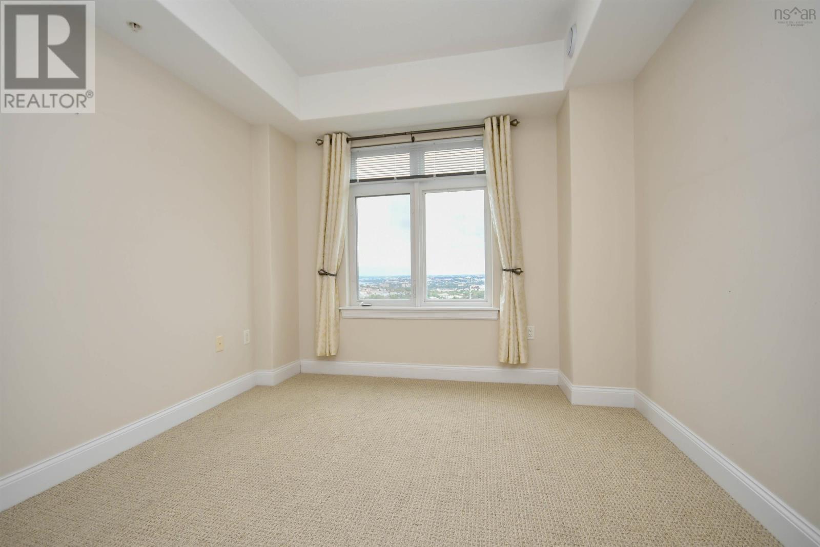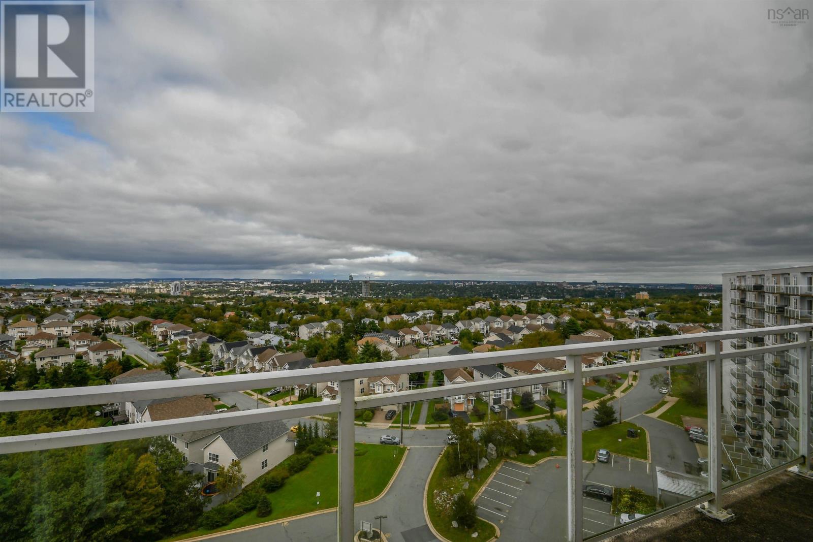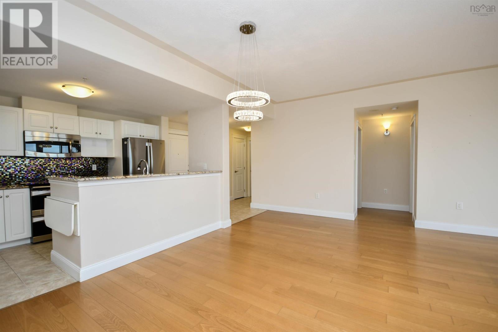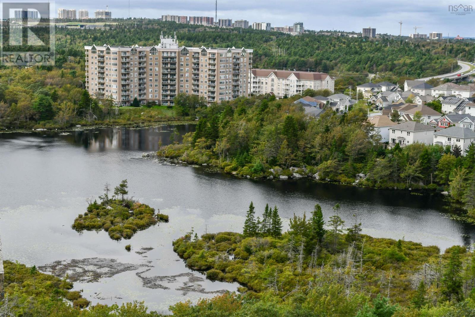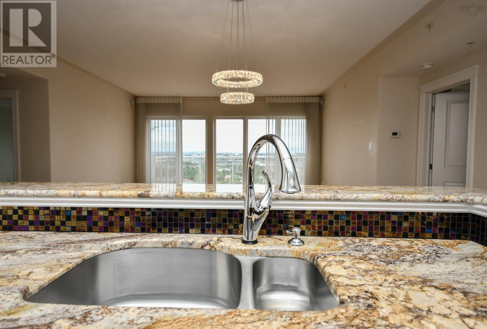Spectacular Top Floor Penthouse suite you will no doubt be impressed by the elegance and grandeur of the Halifax city views, North West Arm, Bedford Basin, and expansive balcony revealing sweeping vistas of the ocean and city lights/fireworks, quite side. Simple, soulful sophistication! This contemporary, open concept suite features a master bedroom with luxury walk-in closet, ensuite bath with double vanity, 5 piece bath and separate shower. PLUS: a 2nd luxury bathroom 4pc next to the 2nd bedroom with all new vanities, sinks and counter tops. Chef's Kitchen is fully equipped with high end, stainless steel appliances, mosaic back splash and exquisite granite counter top. Living room is light and bright with dramatic high ceilings, and an adjacent dining space; hardwood flooring throughout. Blinds with remote controls. Spacious storage/laundry/utility room. Geo thermal heat extra efficient and Air conditioned. Underground parking and storage (P2 Spot 42) unit directly behind parking spot included in purchase. Pet friendly. Plenty of walking trails around nearby Hail Pond and Long Lake. Exceptionally low condo fees. Live-in superintendent, main floor party room and fitness room. Only one owner of this unique condo, offering a $2000 allowance for painting/deck wash. (id:22211)