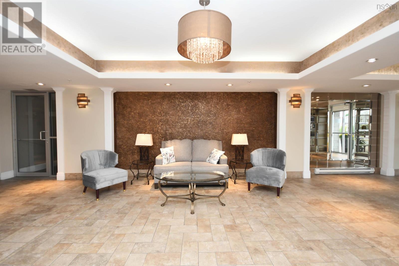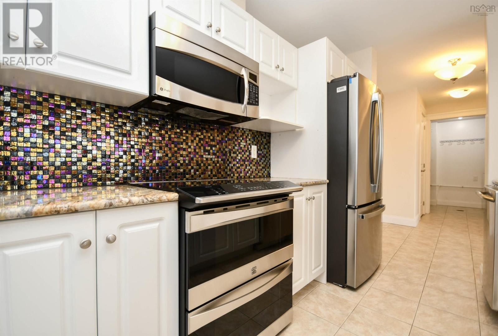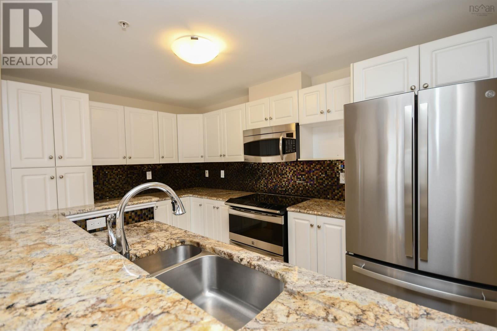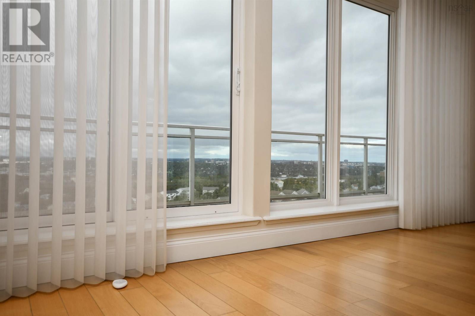 Spectacular Top Floor Penthouse suite you will no doubt be impressed by the elegance and grandeur of the Halifax city views, North West Arm, Bedford Basin, and expansive balcony revealing sweeping vistas of the ocean and city lights/fireworks, quite side. Simple, soulful sophistication! This contemporary, open concept suite features a master bedroom with luxury walk-in closet, ensuite bath with double vanity, 5 piece bath and separate shower. PLUS: a 2nd luxury bathroom 4pc next to the 2nd bedroom with all new vanities, sinks and counter tops. Chef's Kitchen is fully equipped with high end, stainless steel appliances, mosaic back splash and exquisite granite counter top. Living room is light and bright with dramatic high ceilings, and an adjacent dining space; hardwood flooring throughout. Blinds with remote controls. Spacious storage/laundry/utility room. Geo thermal heat extra efficient and Air conditioned. Underground parking and storage (P2 Spot 42) unit directly behind parking spot included in purchase. Pet friendly. Plenty of walking trails around nearby Hail Pond and Long Lake. Exceptionally low condo fees. Live-in superintendent, main floor party room and fitness room. Only one owner of this unique condo, offering a $2000 allowance for painting/deck wash. (id:22211)