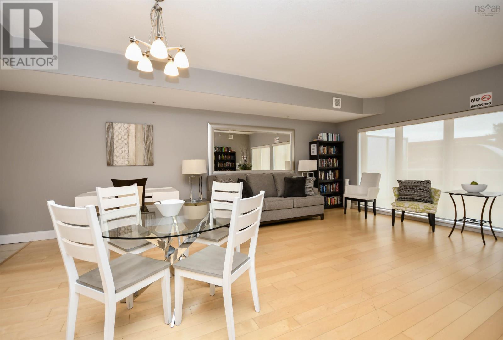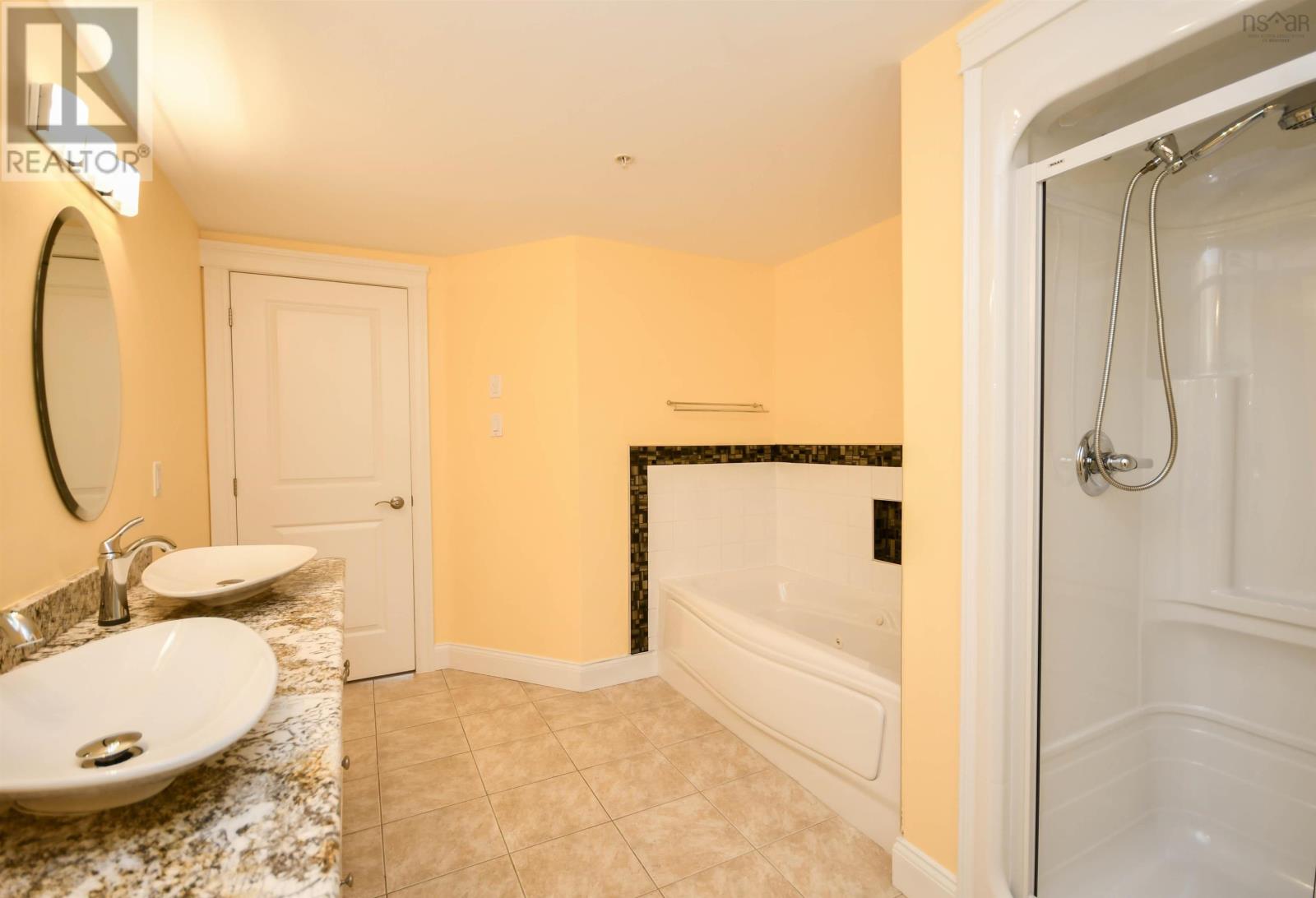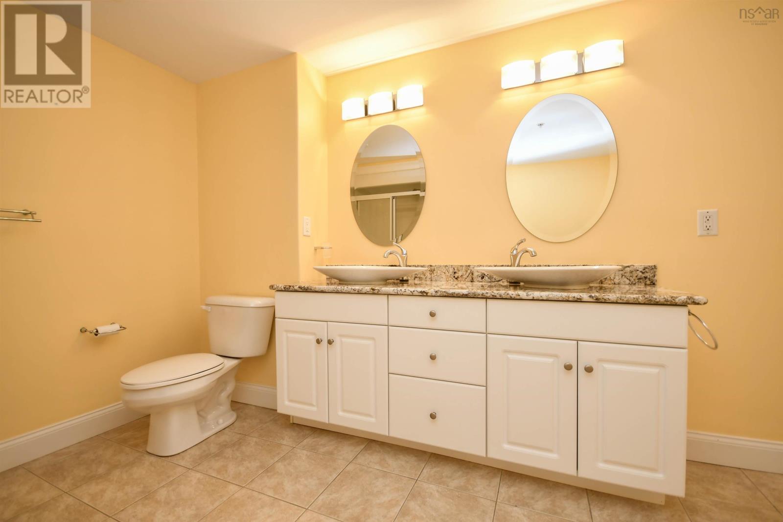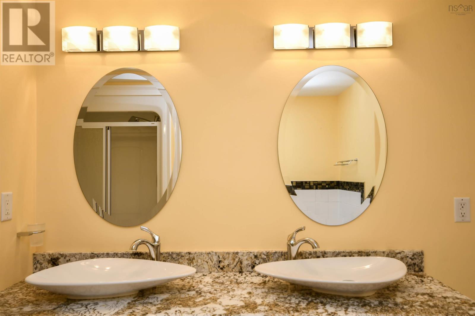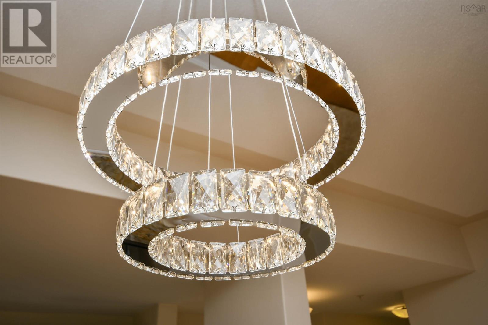 Spectacular Top Floor Penthouse suite you will no doubt be impressed by the elegance and grandeur of the Halifax city views, North West Arm, Bedford Basin, and expansive balcony revealing sweeping vistas of the ocean and city lights/fireworks, quite side. Simple, soulful sophistication! This contemporary, open concept suite features a master bedroom with luxury walk-in closet, ensuite bath with double vanity, 5 piece bath and separate shower. PLUS: a 2nd luxury bathroom 4pc next to the 2nd bedroom with all new vanities, sinks and counter tops. Chef's Kitchen is fully equipped with high end, stainless steel appliances, mosaic back splash and exquisite granite counter top. Living room is light and bright with dramatic high ceilings, and an adjacent dining space; hardwood flooring throughout. Blinds with remote controls. Spacious storage/laundry/utility room. Geo thermal heat extra efficient and Air conditioned. Underground parking and storage (P2 Spot 42) unit directly behind parking spot included in purchase. Pet friendly. Plenty of walking trails around nearby Hail Pond and Long Lake. Exceptionally low condo fees. Live-in superintendent, main floor party room and fitness room. Only one owner of this unique condo, offering a $2000 allowance for painting/deck wash. (id:22211)