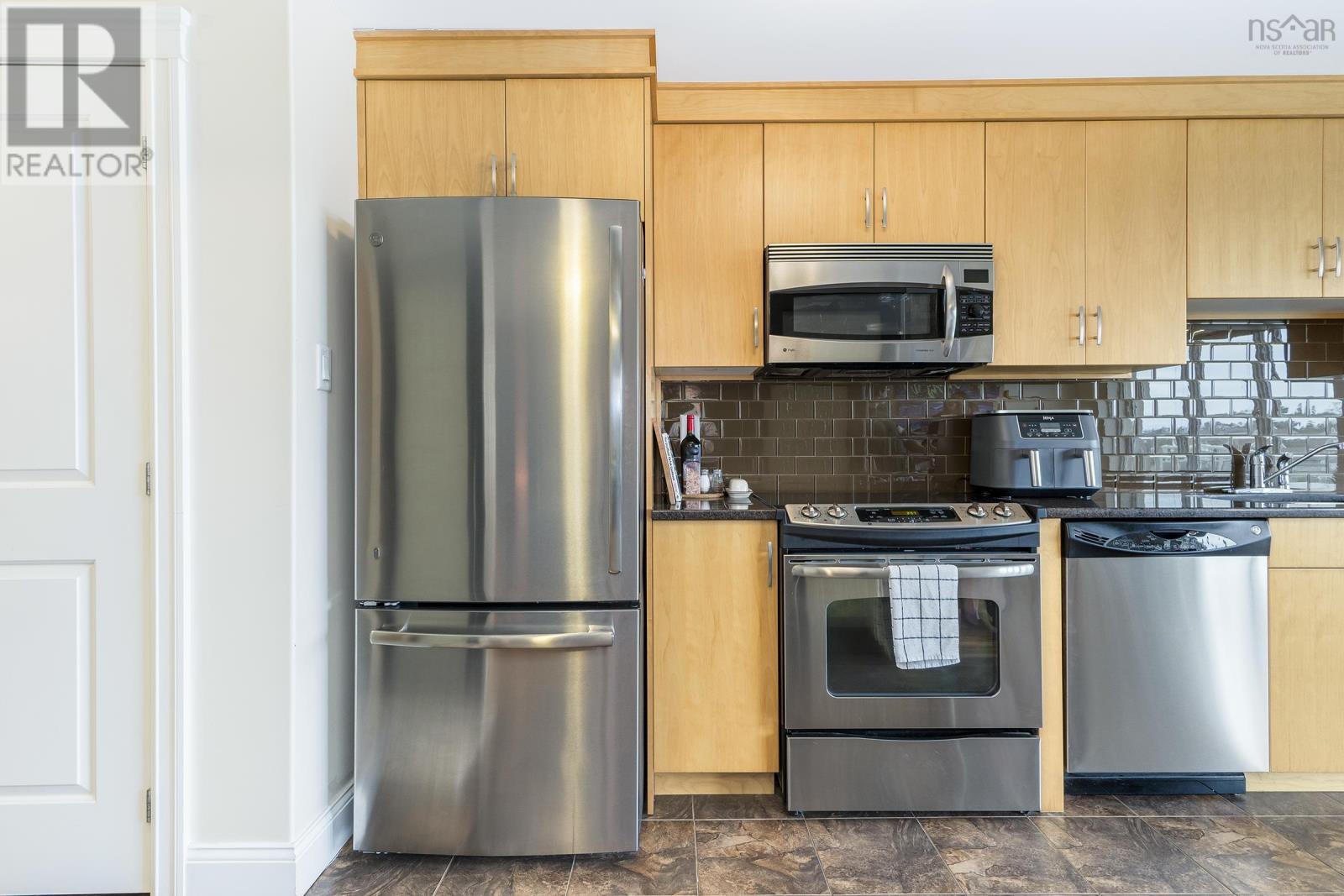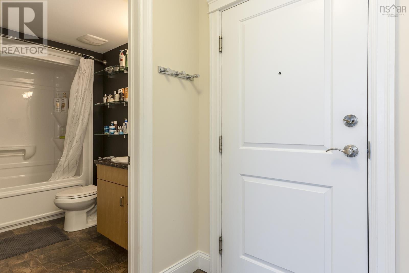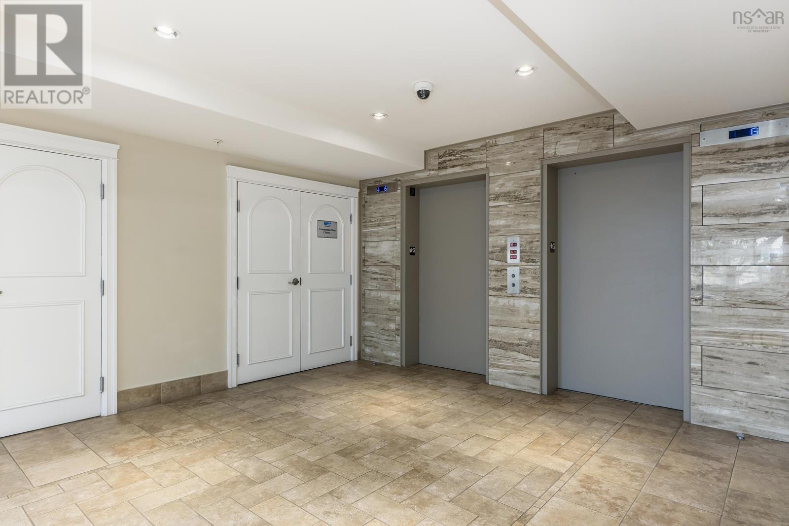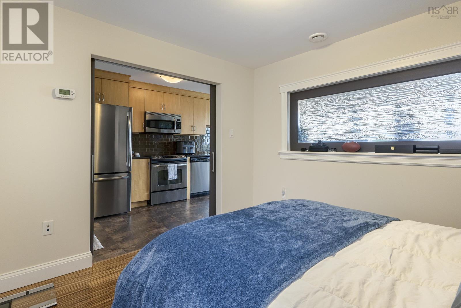 Feel like you are living in an upscale hotel suite in this 1 bedroom condo. Located only minutes to Downtown or to Bayers Lake. It was thoughtfully laid out with a stylish design. The open concept living space is flooded with light from the wall to ceiling windows going the whole width of the unit. The kitchen has lots of cabinets decked out with granite countertops. Stainless steel appliances including a microwave range and dishwasher. You can access the balcony from the patio doors off of the dining area. The living room has a fireplace as the main focal point and cozy hardwood floors. There is an obscured glass wall inlay that acts as an art piece while also bringing light into the bedroom. The bedroom doors have the same glass in the double barn style doors for the entrance. There is lots of storage space between the dual closets. A full bathroom with floating shelves. In suite laundry is tucked away. The condo fees include heat, water, and air conditioning. The current tenant is on a fixed lease until March but why not secure your investment now and take time to plan your move. (id:22211)