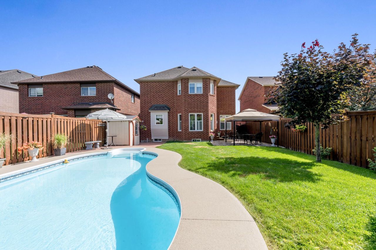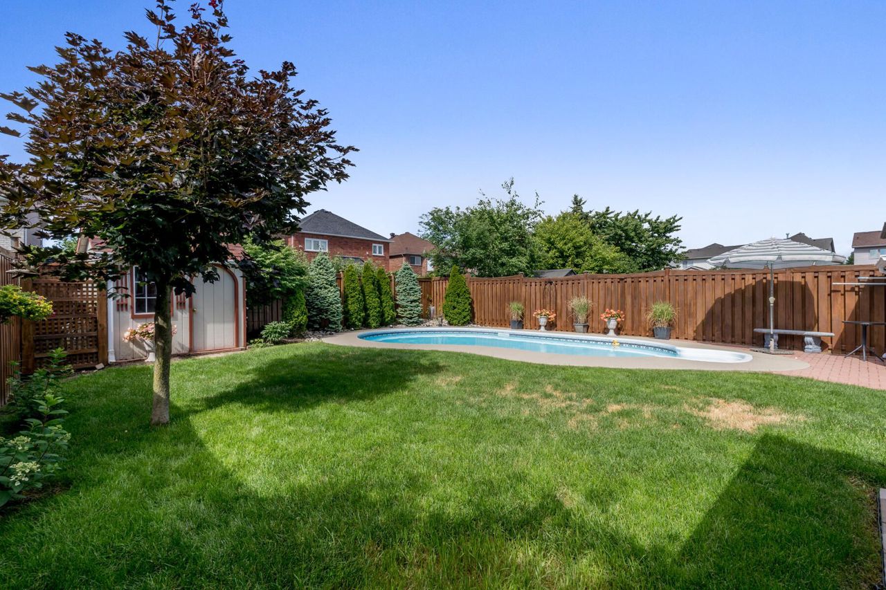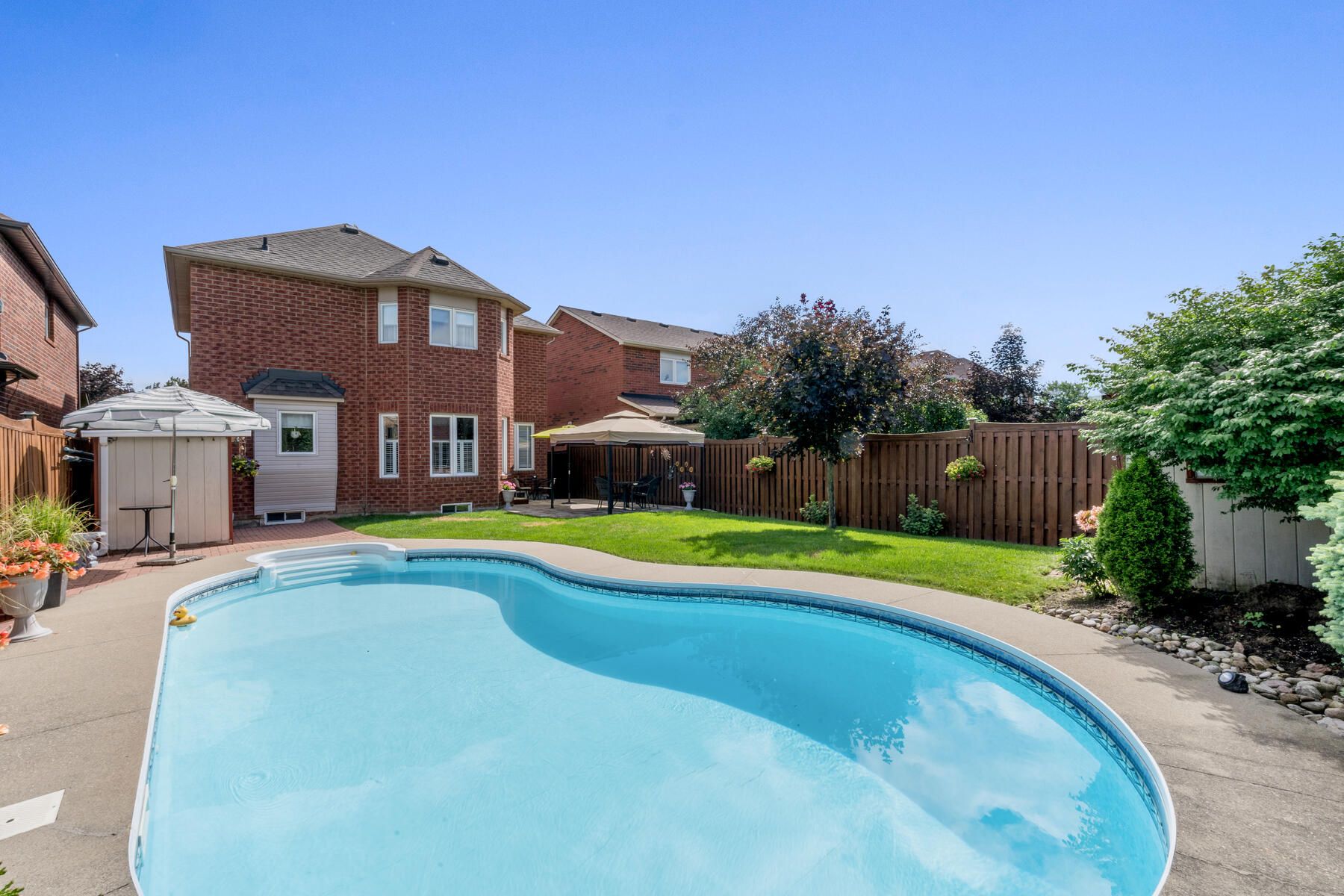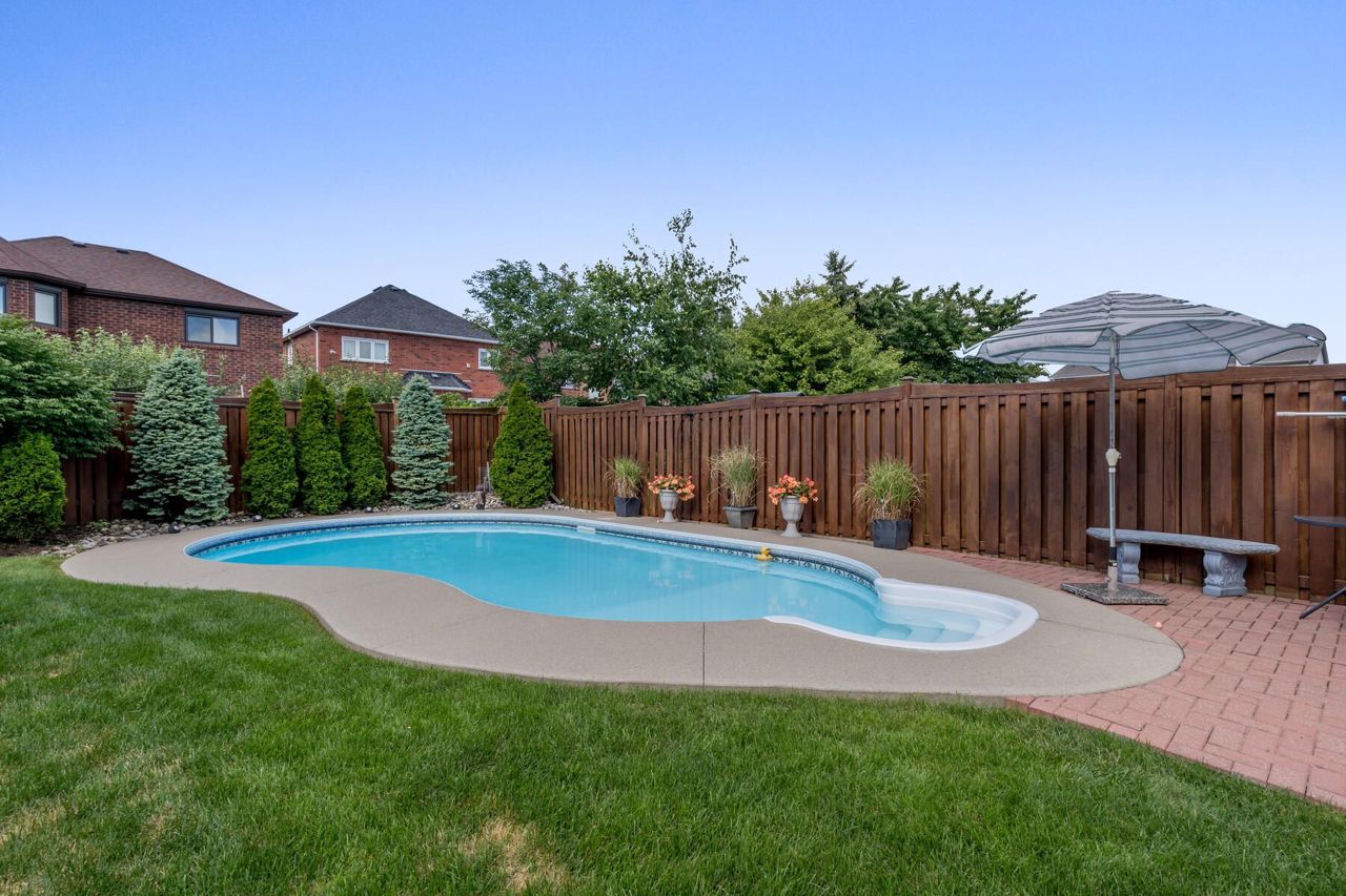 Picture Perfect Inside & Out. Welcome to this quality built Fernbrook Parklane model with its distinctive floor plan & 2038 sq. ft. of finished living space. Situated on a large lot (134 ft. deep) with I/G pool, patios, gazebo & play space - this 4-bdrm, 2.5-bthrm home is the perfect family home. A stone walk & large drive w/parking for 4 cars welcome you into this meticulous home that has been U/D & decorated with a designer flair & attention to detail from top to bottom! The sun-filled main level features adjoining living/dining rooms - perfect for entertaining & an O/C kitchen/family room O/L the gorgeous yard. The renovated kitchen offers soft close cabinetry, large pantry, brkfst bar, granite, stylish bcksplsh and W/O to superb yard. The family room enjoys a charming gas f/p. A powder room & laundry w/garage access completes the level. The upper level offers four spacious bdrms, the primary with two W/I closets & U/D 4-pc enste. Three additional bdrms share the U/D main bath.The lower level – suitable for in-laws, offers a rec room, kitchenette, office/games room, storage/utility space and rough-in for bathroom. Situated on a quiet street close to rec centre, schools, parks, trails, shops and more.