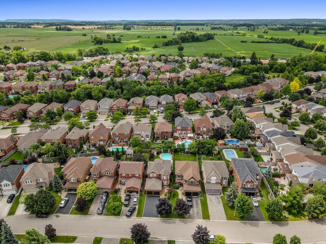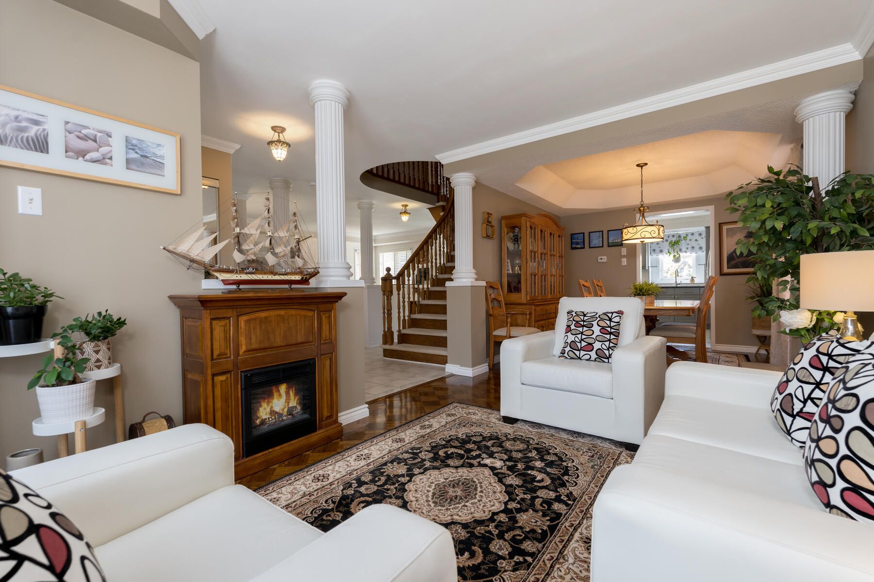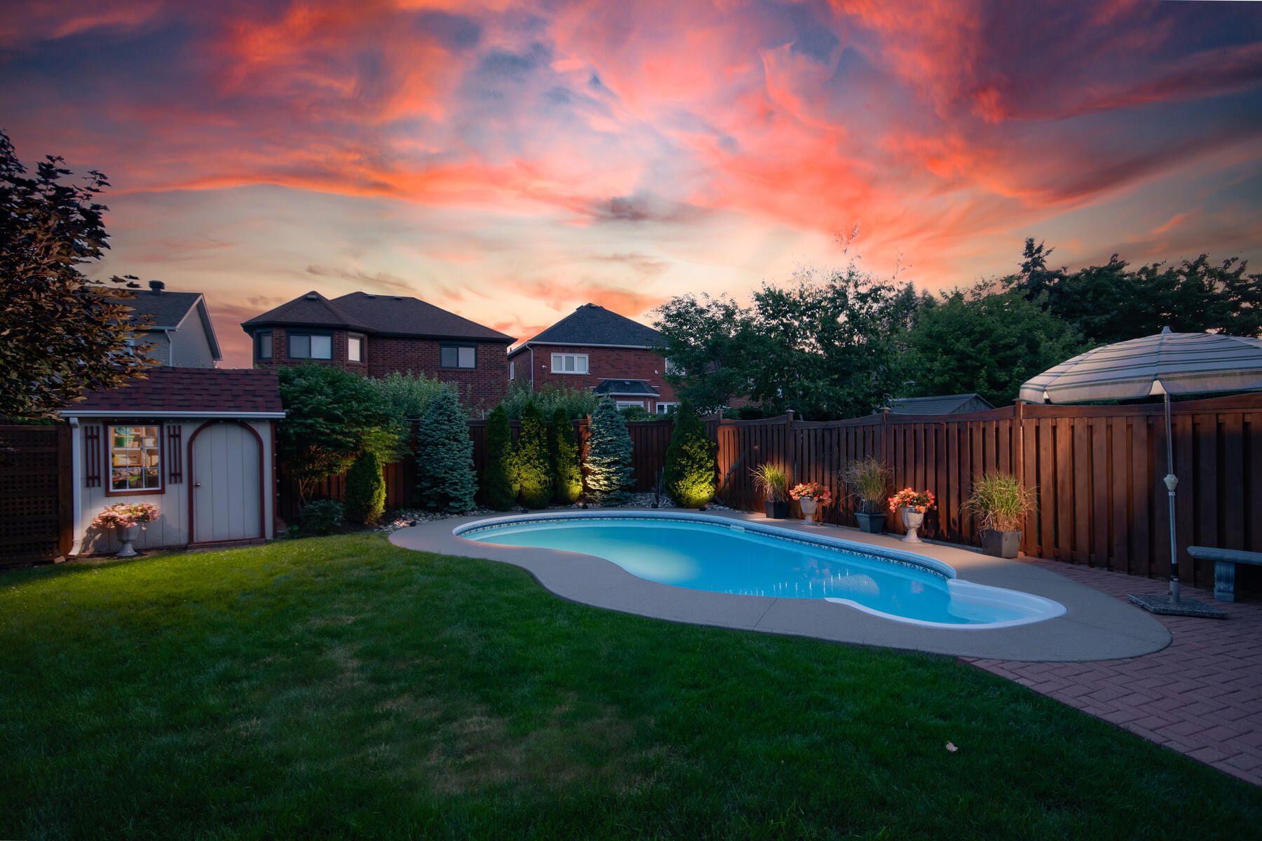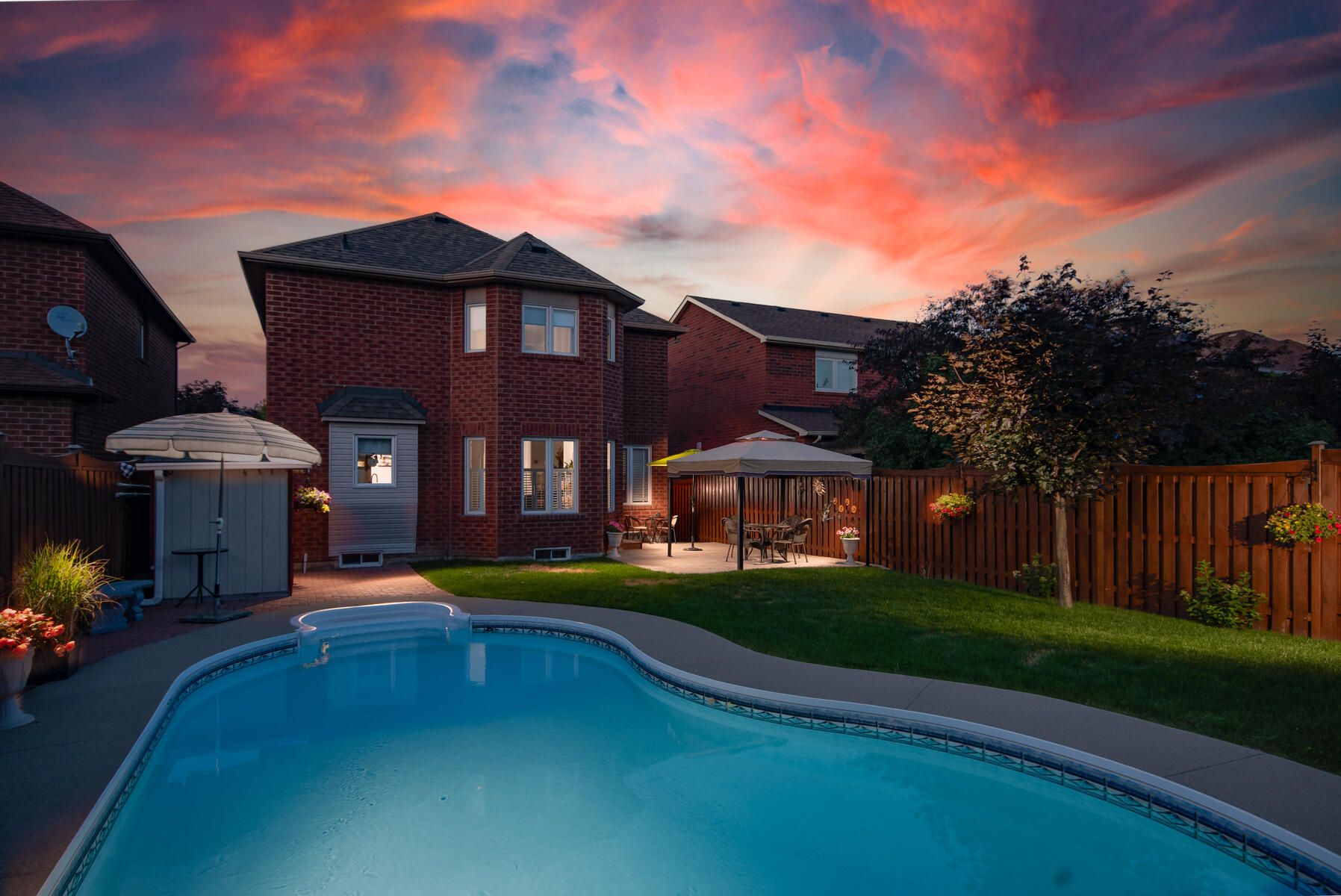Picture Perfect Inside & Out. Welcome to this quality built Fernbrook Parklane model with its distinctive floor plan & 2038 sq. ft. of finished living space. Situated on a large lot (134 ft. deep) with I/G pool, patios, gazebo & play space - this 4-bdrm, 2.5-bthrm home is the perfect family home. A stone walk & large drive w/parking for 4 cars welcome you into this meticulous home that has been U/D & decorated with a designer flair & attention to detail from top to bottom! The sun-filled main level features adjoining living/dining rooms - perfect for entertaining & an O/C kitchen/family room O/L the gorgeous yard. The renovated kitchen offers soft close cabinetry, large pantry, brkfst bar, granite, stylish bcksplsh and W/O to superb yard. The family room enjoys a charming gas f/p. A powder room & laundry w/garage access completes the level. The upper level offers four spacious bdrms, the primary with two W/I closets & U/D 4-pc enste. Three additional bdrms share the U/D main bath.The lower level – suitable for in-laws, offers a rec room, kitchenette, office/games room, storage/utility space and rough-in for bathroom. Situated on a quiet street close to rec centre, schools, parks, trails, shops and more.