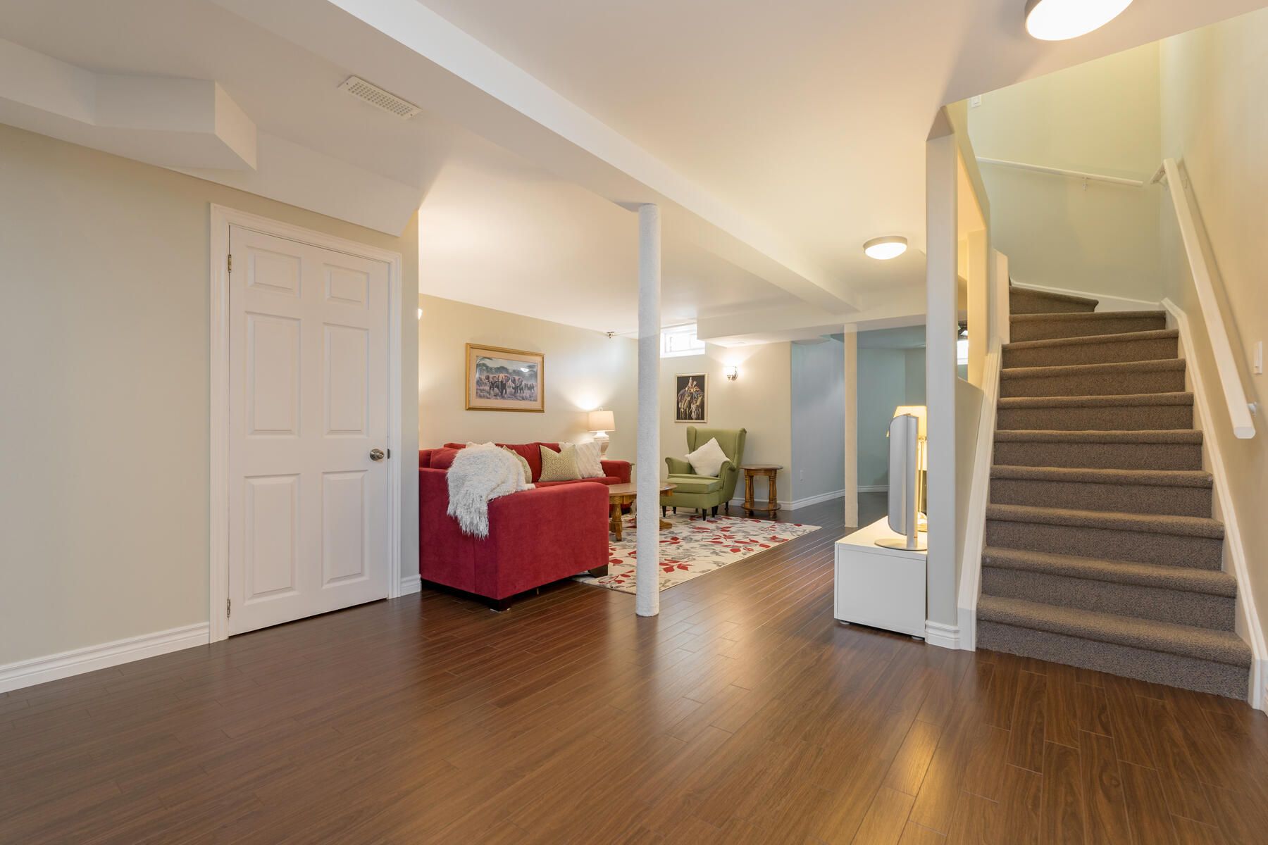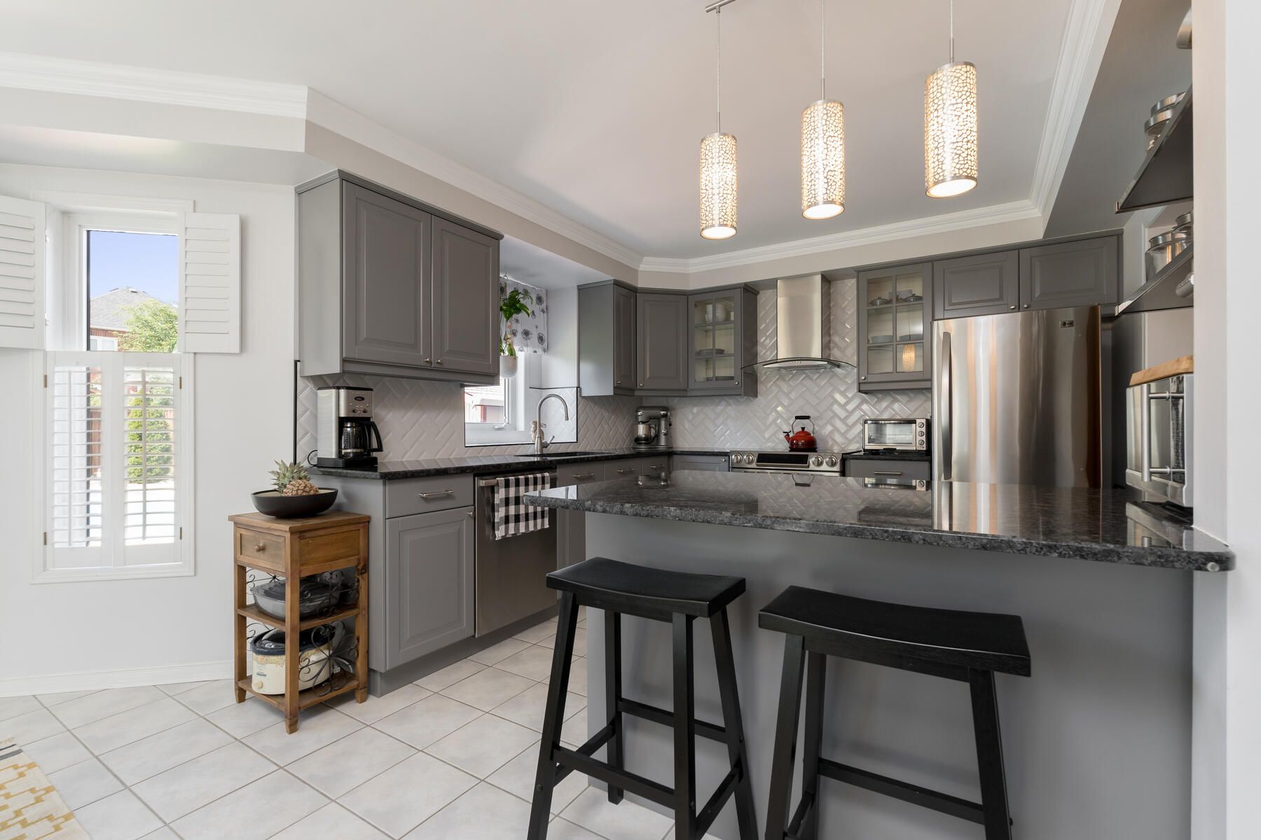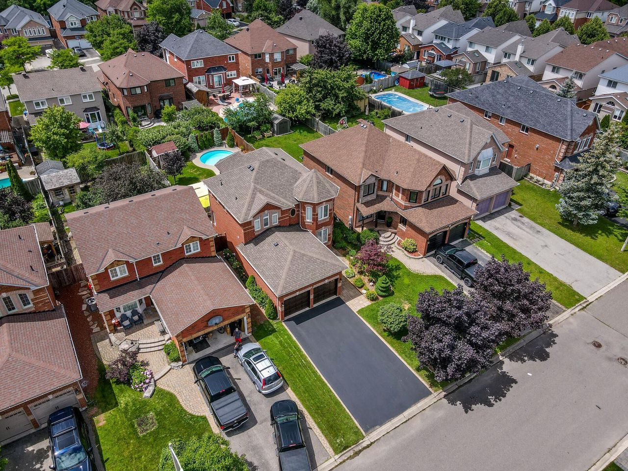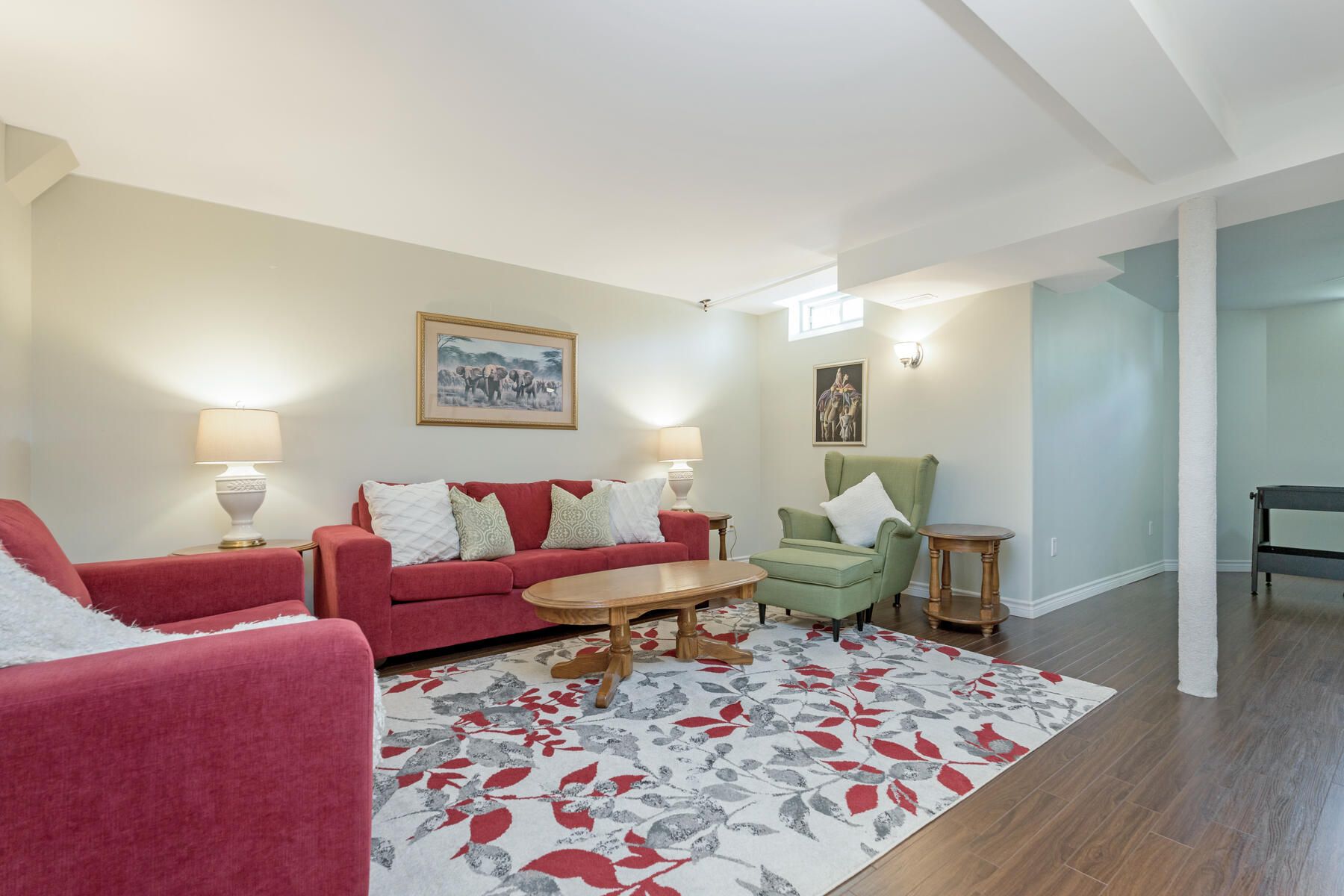 Picture Perfect Inside & Out. Welcome to this quality built Fernbrook Parklane model with its distinctive floor plan & 2038 sq. ft. of finished living space. Situated on a large lot (134 ft. deep) with I/G pool, patios, gazebo & play space - this 4-bdrm, 2.5-bthrm home is the perfect family home. A stone walk & large drive w/parking for 4 cars welcome you into this meticulous home that has been U/D & decorated with a designer flair & attention to detail from top to bottom! The sun-filled main level features adjoining living/dining rooms - perfect for entertaining & an O/C kitchen/family room O/L the gorgeous yard. The renovated kitchen offers soft close cabinetry, large pantry, brkfst bar, granite, stylish bcksplsh and W/O to superb yard. The family room enjoys a charming gas f/p. A powder room & laundry w/garage access completes the level. The upper level offers four spacious bdrms, the primary with two W/I closets & U/D 4-pc enste. Three additional bdrms share the U/D main bath.The lower level – suitable for in-laws, offers a rec room, kitchenette, office/games room, storage/utility space and rough-in for bathroom. Situated on a quiet street close to rec centre, schools, parks, trails, shops and more.
