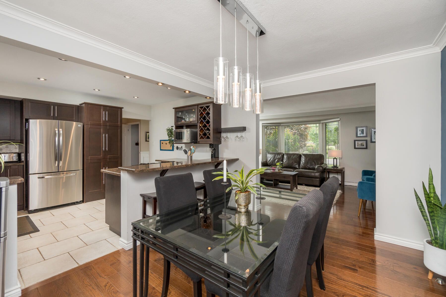 One of G'towns most desirable mature streets, gorgeous child safe tree lined crescent, upgraded home with roof re shingled 2021, furnace 2016 and air conditioner 2022. Large formal living room with beautiful picture window allowing tons of natural light, Dining room has an open concept design overlooking the updated kitchen, 4 generous sized bedrooms, finished basement for the sports minded family, features a phenomenal wet bar with custom built in shelves. Loads of storage room. To top it all off you have an outstanding private backyard, with gorgeous gardens, gazebo and natural gas outlet for your bbq.water softener (owned), and reverse osmosis water system.