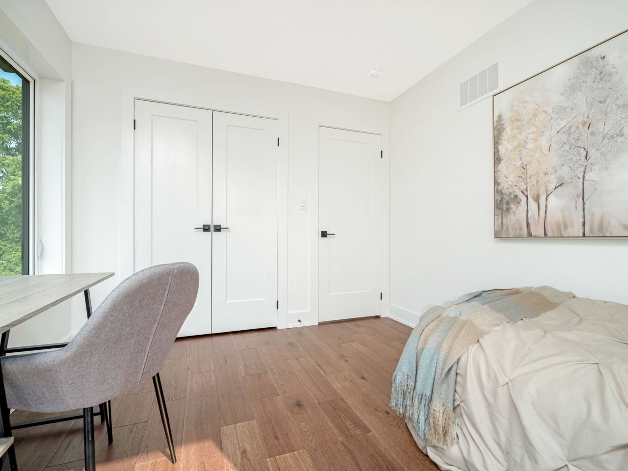 Hardwood Floor Double Closet Picture Window