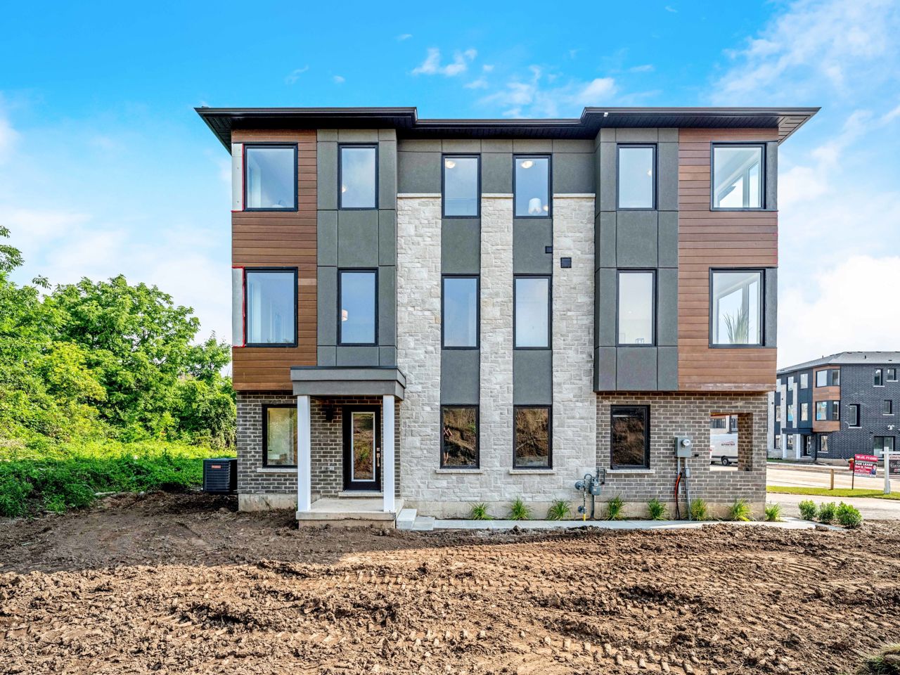 With over $100k spent in upgrades, this freehold end unit townhouse is sure to impress! From the extra full bath to the upgraded kitchen, interior doors, baseboards and staircase, the upgrades are too numerous to list! With no neighbors behind, sitting adjacent to open space and including a double car garage and double driveway with no sidewalks, this home is a rare find! Boasting 1956 sqft of contemporary design, experience a lifestyle of modern elegance and comfort in a prime location! Step inside to discover an abundance of natural light through the large casement windows. Spacious floorplan makes living easy! Enjoy cooking up a feast on your island with sit up breakfast bar, SS appliances, stone countertops, built-in lazy Suzan, plus pots and pans drawers—all with soft close! The cozy main floor den perfect for an office, or even an extra bedroom. Relish the fresh air from one of your two walkouts and explore the surrounding beauty on foot, bike, or car!Conveniently located with easy access to the 401, and walking distance to downtown, golf, trails, schools, shopping, and more, this property boasts a prime location that caters to all your lifestyle needs!