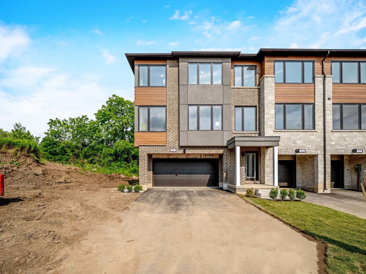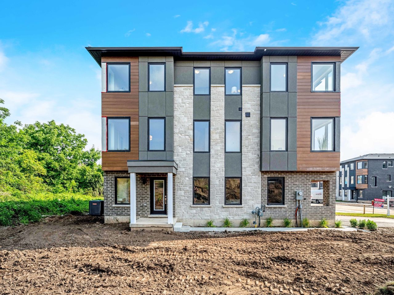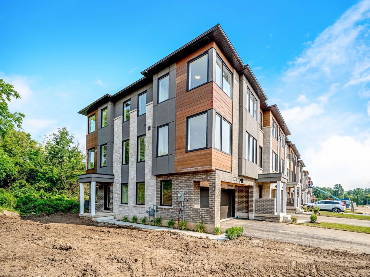With over $100k spent in upgrades, this freehold end unit townhouse is sure to impress! From the extra full bath to the upgraded kitchen, interior doors, baseboards and staircase, the upgrades are too numerous to list! With no neighbors behind, sitting adjacent to open space and including a double car garage and double driveway with no sidewalks, this home is a rare find! Boasting 1956 sqft of contemporary design, experience a lifestyle of modern elegance and comfort in a prime location! Step inside to discover an abundance of natural light through the large casement windows. Spacious floorplan makes living easy! Enjoy cooking up a feast on your island with sit up breakfast bar, SS appliances, stone countertops, built-in lazy Suzan, plus pots and pans drawers—all with soft close! The cozy main floor den perfect for an office, or even an extra bedroom. Relish the fresh air from one of your two walkouts and explore the surrounding beauty on foot, bike, or car!Conveniently located with easy access to the 401, and walking distance to downtown, golf, trails, schools, shopping, and more, this property boasts a prime location that caters to all your lifestyle needs!