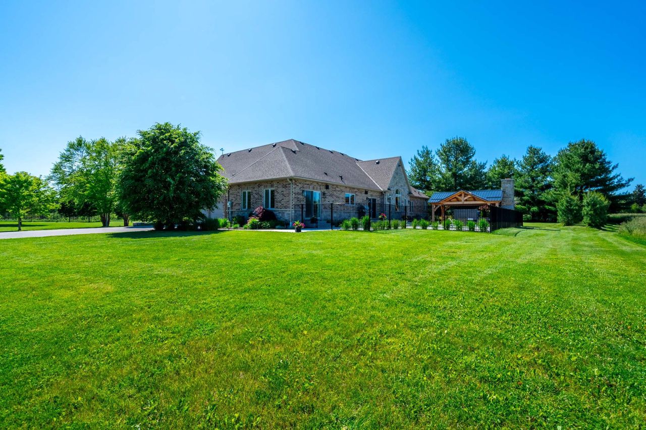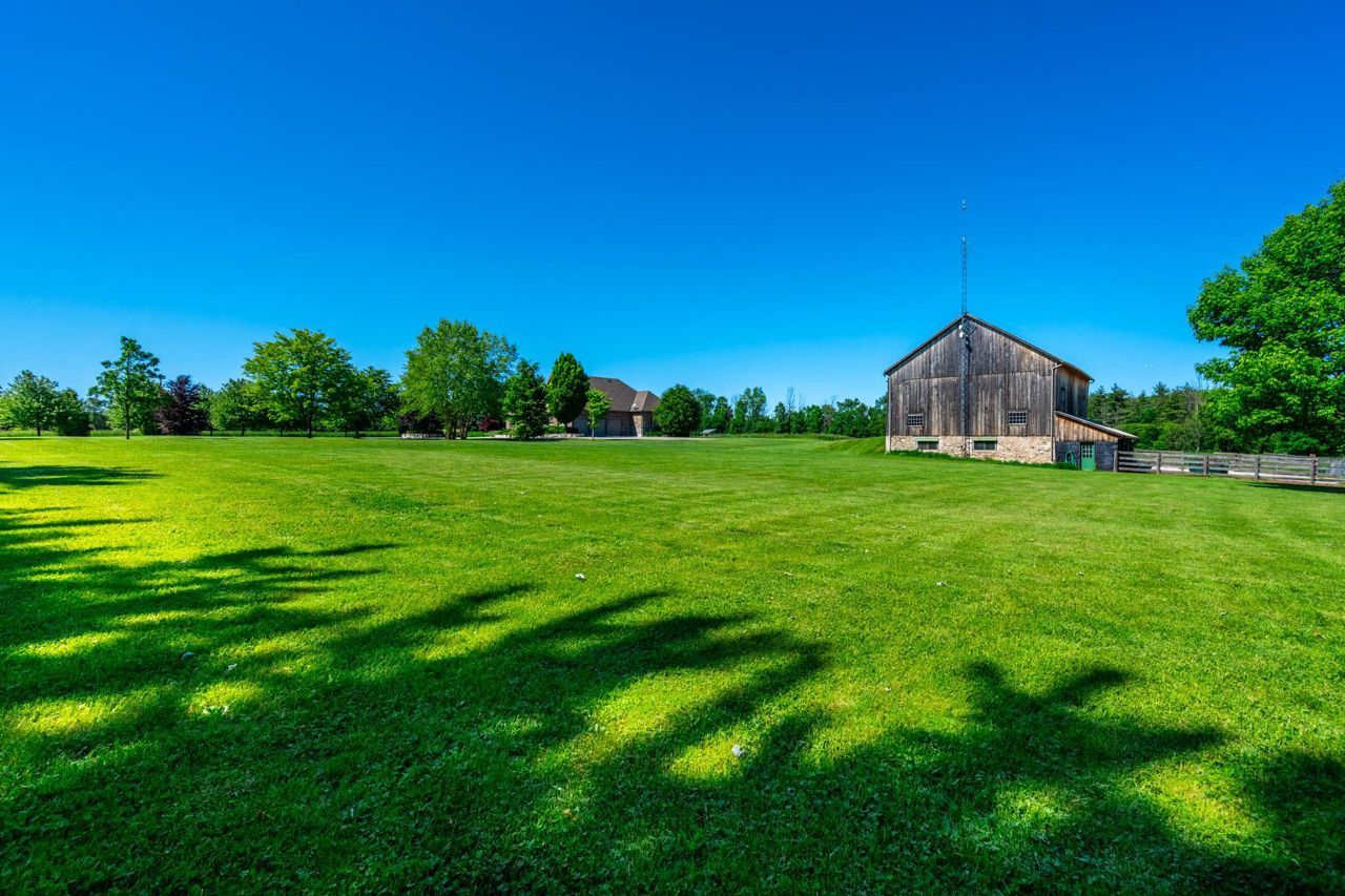 The perfect hobby farm does exist, and youll find it right at 1068 Wyatt Road in a prime east Flamborough locale. Here, you have the best of both worlds a postcard worthy setting on a quiet country road yet just minutes to town and close to major highways. This gorgeous 27-acre parcel offers a true rare package a custom executive bungalow, well-maintained barn, fenced paddocks, bush and a pond. Step inside the 2,800 square foot home, and youll immediately notice the private, stunning views from every side. The open concept floor plan offers large principal rooms with the details that luxury commands soaring 9 ceilings, in wall-sound system, crown molding, and engineered hardwood flooring. The kitchen is the hub of the home, with quartz counters, heated floors, a six burner Wolf gas stove and access to the study. The oversized primary bedroom has private views of the expansive property, and is complete with a walk in closet and large 5 piece bathroom with a soaker tub and heated floors! The two secondary bedrooms are generous-sized and share a jack and jill bathroom. The fully finished lower level has two additional bedrooms, a full bathroom with steam shower and a second full kitchen. It also has a separate entrance through garage. Looking for peace and privacy it has it all! RSA.
