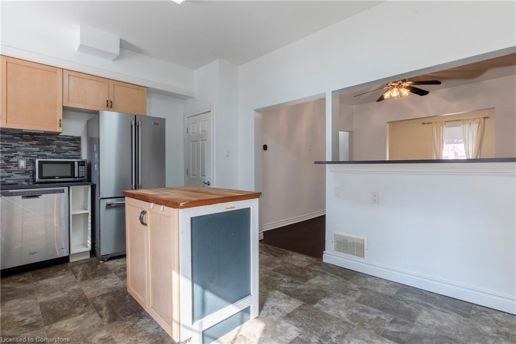 Proudly presenting a move-in ready downtown Hamilton detached brick row house with spacious main floor living, a large kitchen with center island, brunch bar & stainless-steel appliances, three bright bedrooms and a private fenced backyard w/deck. Live in the heart of Hamilton with the West Harbour GO and bike corridors on your doorstep and permit street parking available. Enjoy easy access to downtown, nearby schools, Bayfront Park & the Hamilton Waterfront Trail, the QEW, and a short walk to Dundurn Castle and the vibrant James Street North district of restaurants, bars and cafes. Find your footing for downtown living from Greig Street.