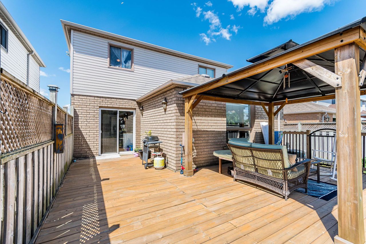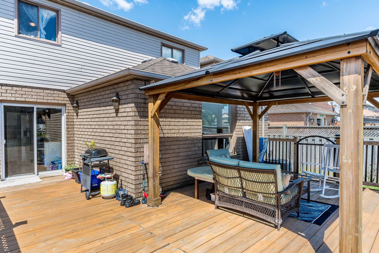 Beautiful family home located in a highly sought after Hamilton Mountain neighbourhood. Inviting foyer upon entry, hardwood floors throughout main living area, cozy gas fireplace, open concept eat in kitchen, with walk out to the rear yard deck, gazebo and stamped concrete. Finished basement with rec room, 3-piece bath and den that is ideal for a home office or study room, Located just minutes from highway access, schools, parks, shopping and amenities.